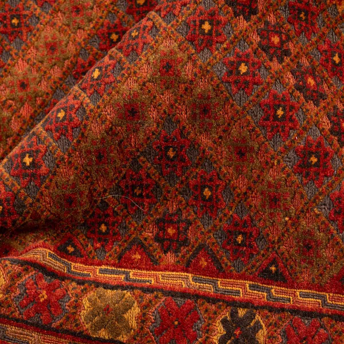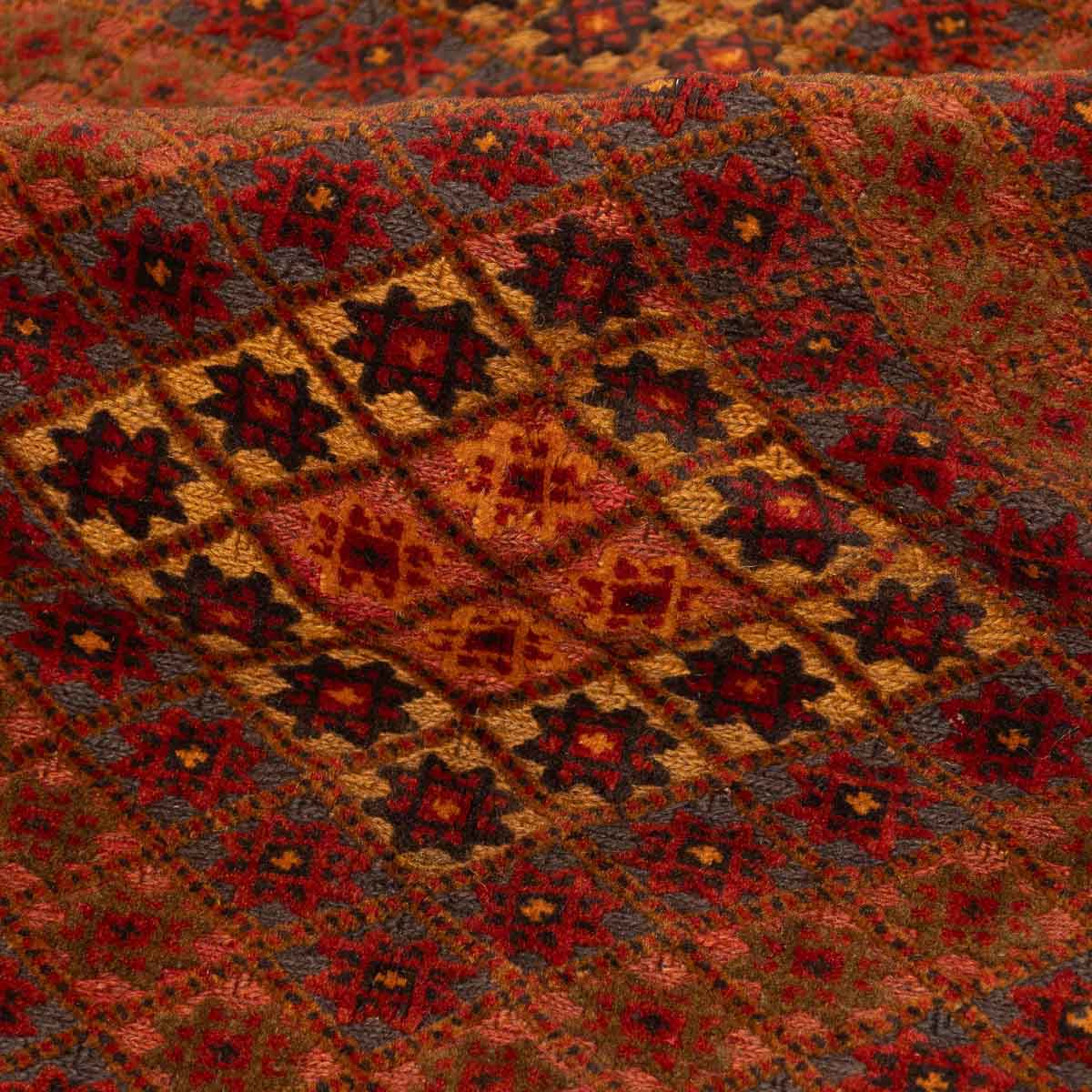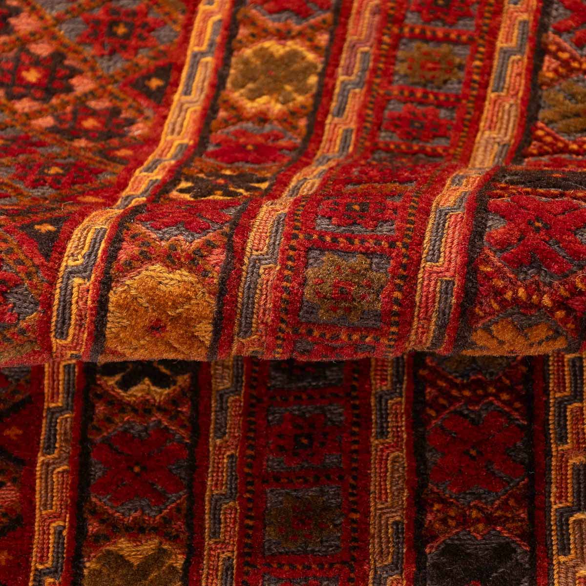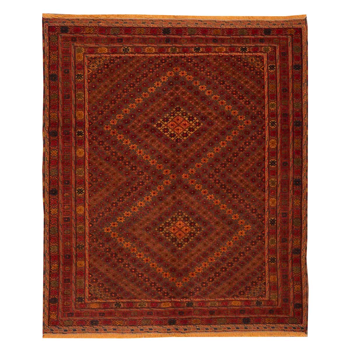 שטיח אוזבקי ייחודי בעבודת יד בגווני אדום עמוק, וכחול – משלב עיצוב גיאומטרי מסורתי עם נוכחות עוצמתית ואלגנטית בחלל. דוגמת היהלומים הקלאסית מעניקה תחושת תנועה ועומק, והופכת אותו לבחירה מושלמת לחללים המעוצבים בקו אתני או אקלקטי.