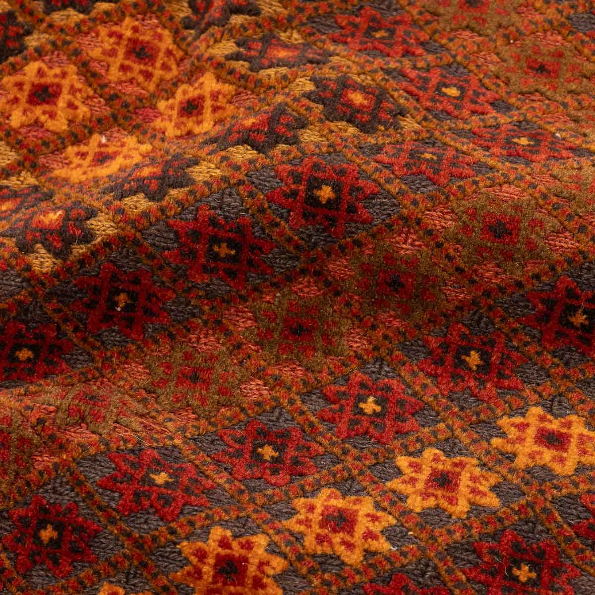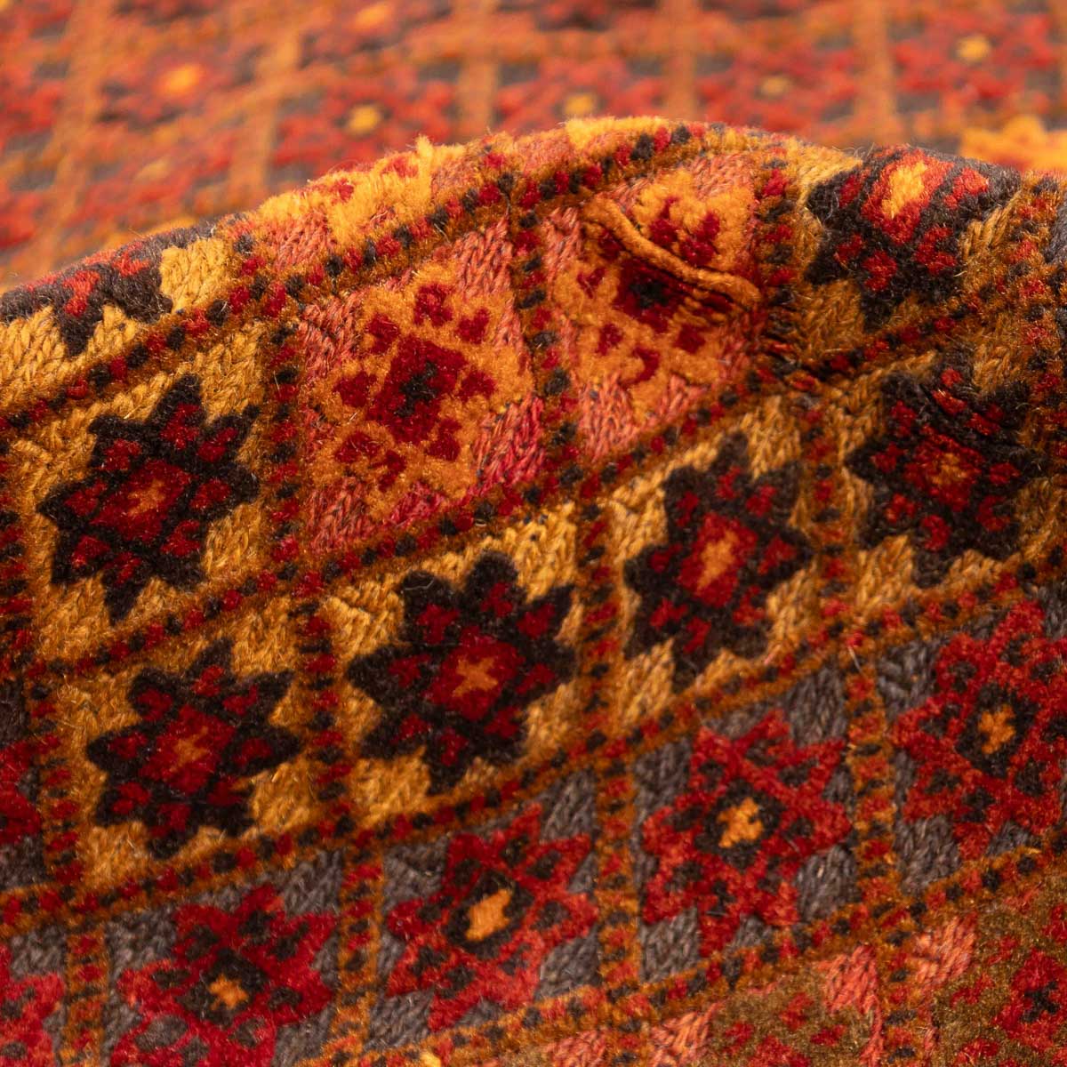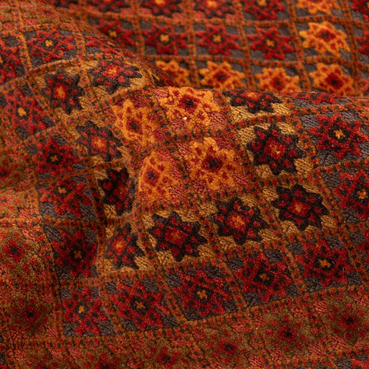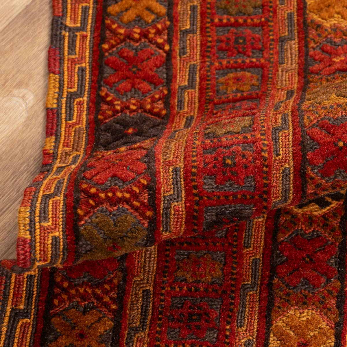 שטיח אוזבקי ייחודי בעבודת יד בגווני אדום עמוק, וכחול – משלב עיצוב גיאומטרי מסורתי עם נוכחות עוצמתית ואלגנטית בחלל. דוגמת היהלומים הקלאסית מעניקה תחושת תנועה ועומק, והופכת אותו לבחירה מושלמת לחללים המעוצבים בקו אתני או אקלקטי.