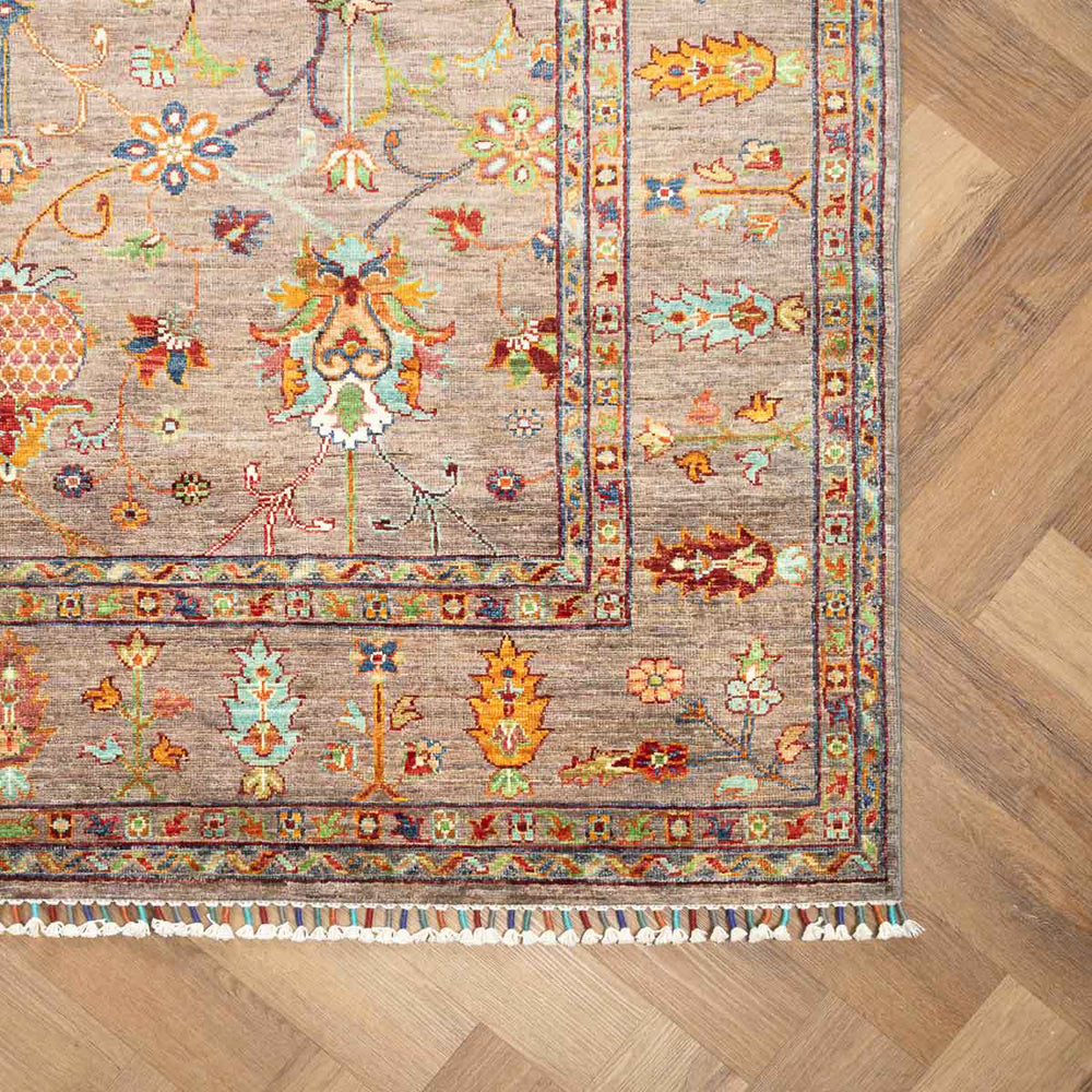 שטיח אריאנה בעבודת יד, פריט אותנטי מרהיב המשלב מסורת עתיקה עם עיצוב צבעוני ועשיר. דוגמאות פרחוניות עדינות בשילוב צבעי אדמה טבעיים, עם נגיעות של ירוק, כתום, תכלת וזהב, מעניקים לשטיח עומק עיצובי וחמימות יוצאת דופן. זהו שטיח שיכול להפוך לכלי מרכזי המוסיף יוקרה וייחודיות בכל חלל.