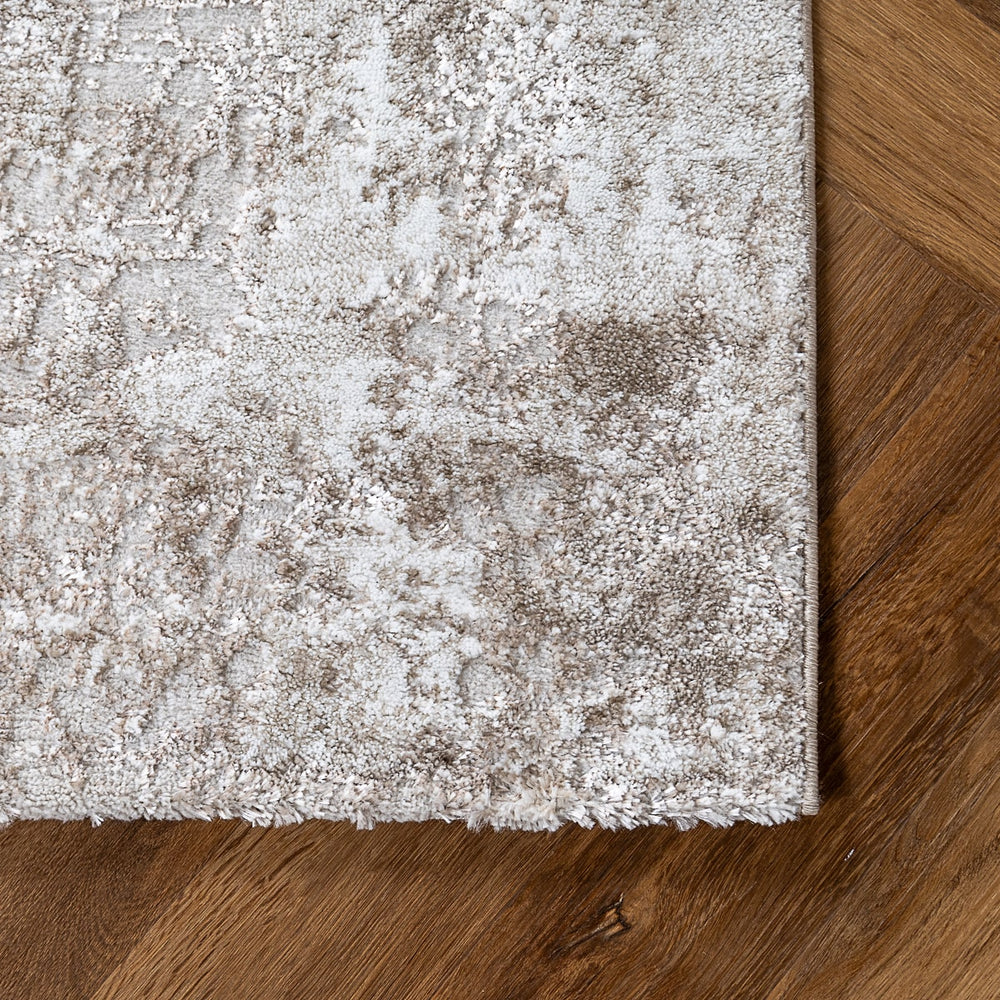 שטיח "ג'אברי 01" בגווני קרם ובז' מביא אלגנטיות ותחכום לכל חלל עם עיצוב אבסטרקטי מרהיב. דוגמת השטיח מוסיפה של עומק וממד, מה שהופך אותו למרכיב מרכזי בכל חדר.