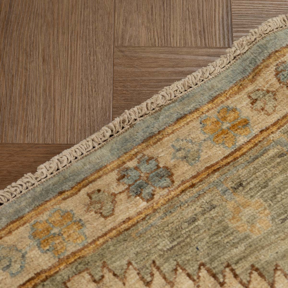 100% צמר טהור: נארג מהצמר האיכותי ביותר, המעניק לשטיח רכות קטיפתית ומראה מט יוקרתי.