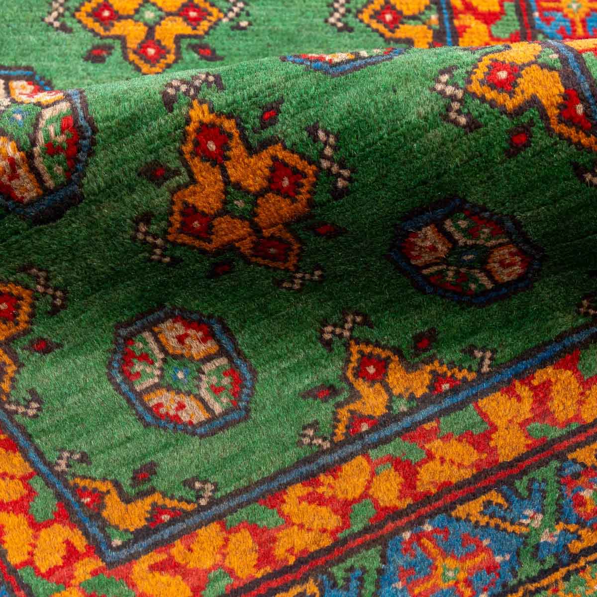 שטיח בוכרה אפגני ירוק מוסיף אופי ומסורת לכל חלל, מתאים לעיצוב קלאסי, אתני או אקלקטי ויכול להשתלב גם בעיצוב מודרני כפריט דומיננטי בעל נוכחות ייחודית