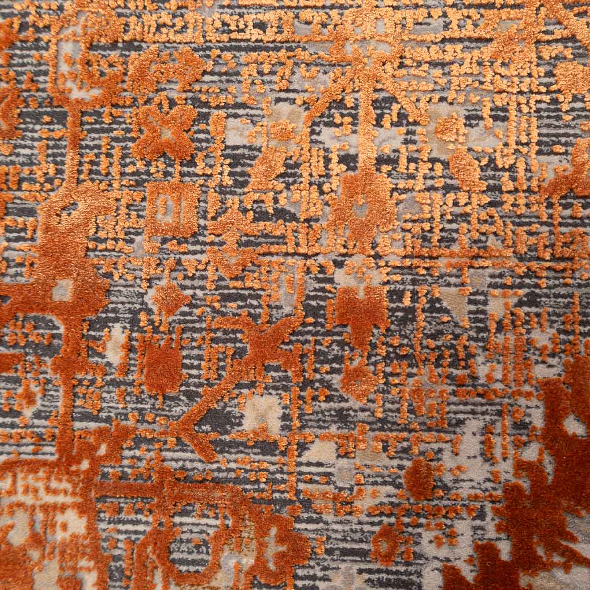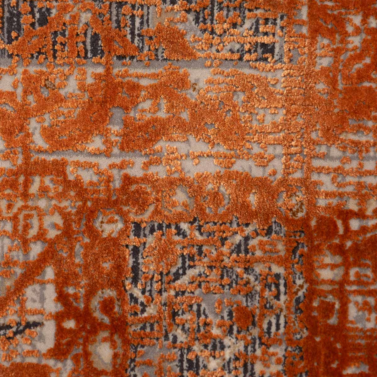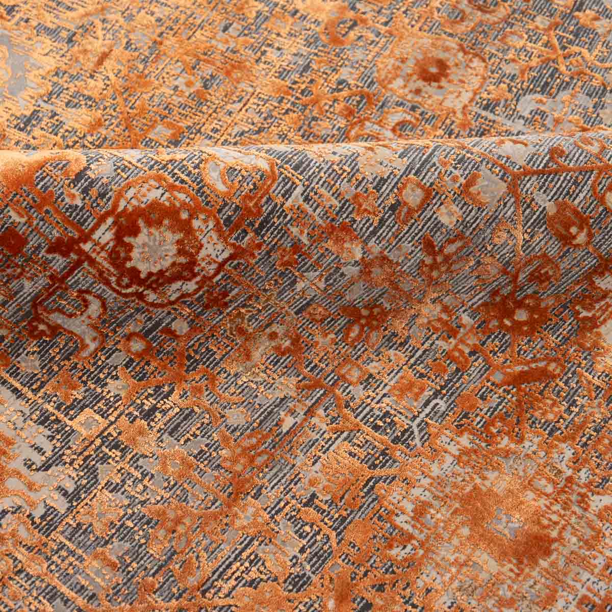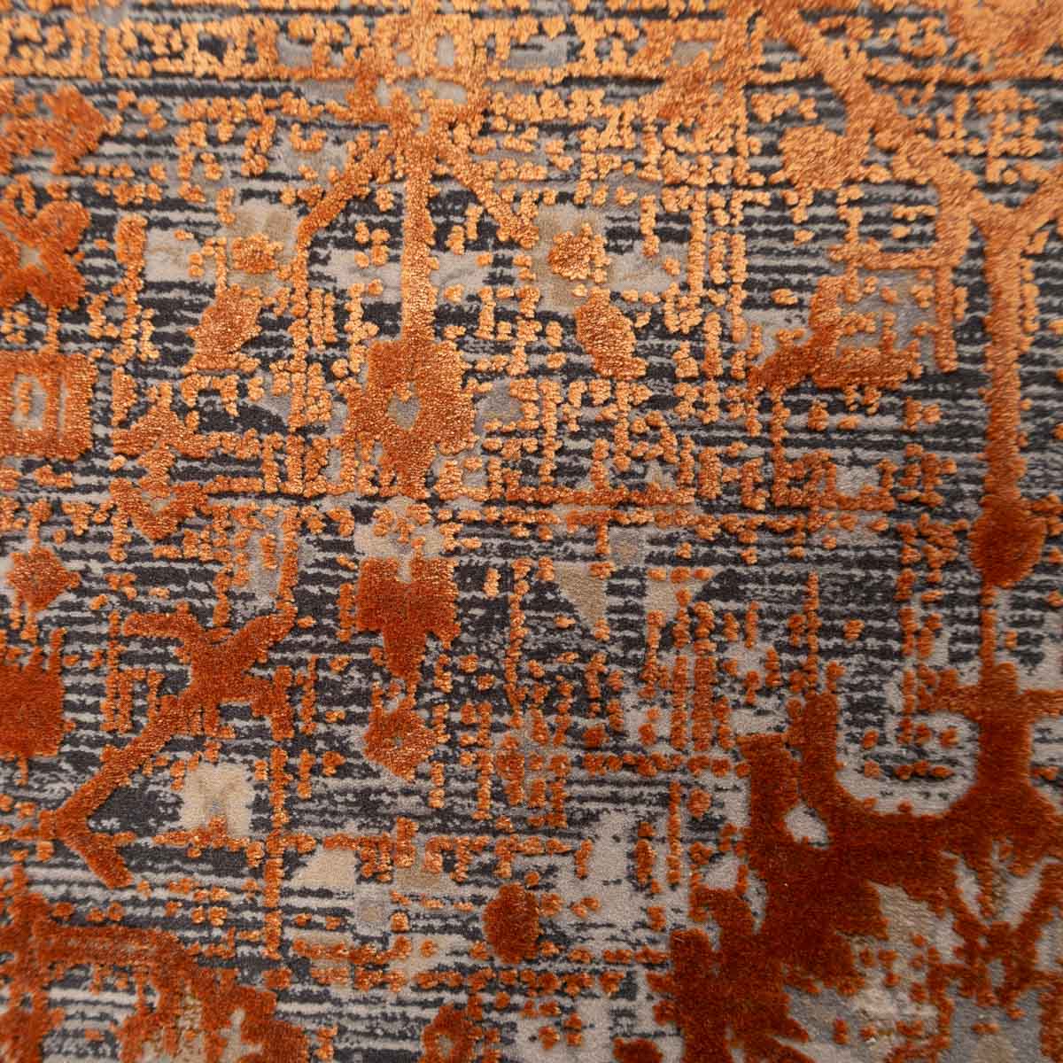 שטיח מסדרת היסטוריה, בעיצוב עוצמתי המשלב בין גווני אפור רגועים לכתום עז ודומיננטי. הדוגמה המיוחדת מעניקה לשטיח אופי ייחודי של וינטג' מודרני. השטיח נארג בצפיפות גבוהה במיוחד של 2 מיליון קשר, ועבר תהליך עישון סטון וואש שמעניק לו מראה עתיק ותחושת יוקרה אמיתית.