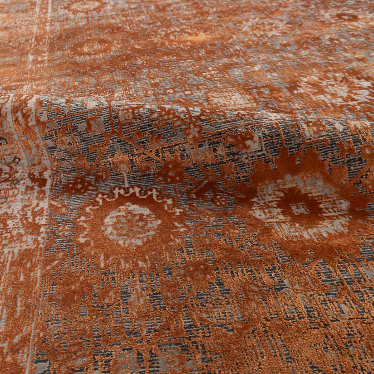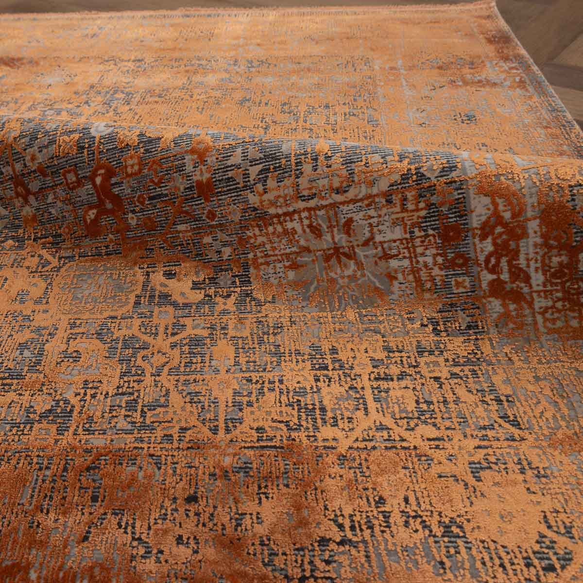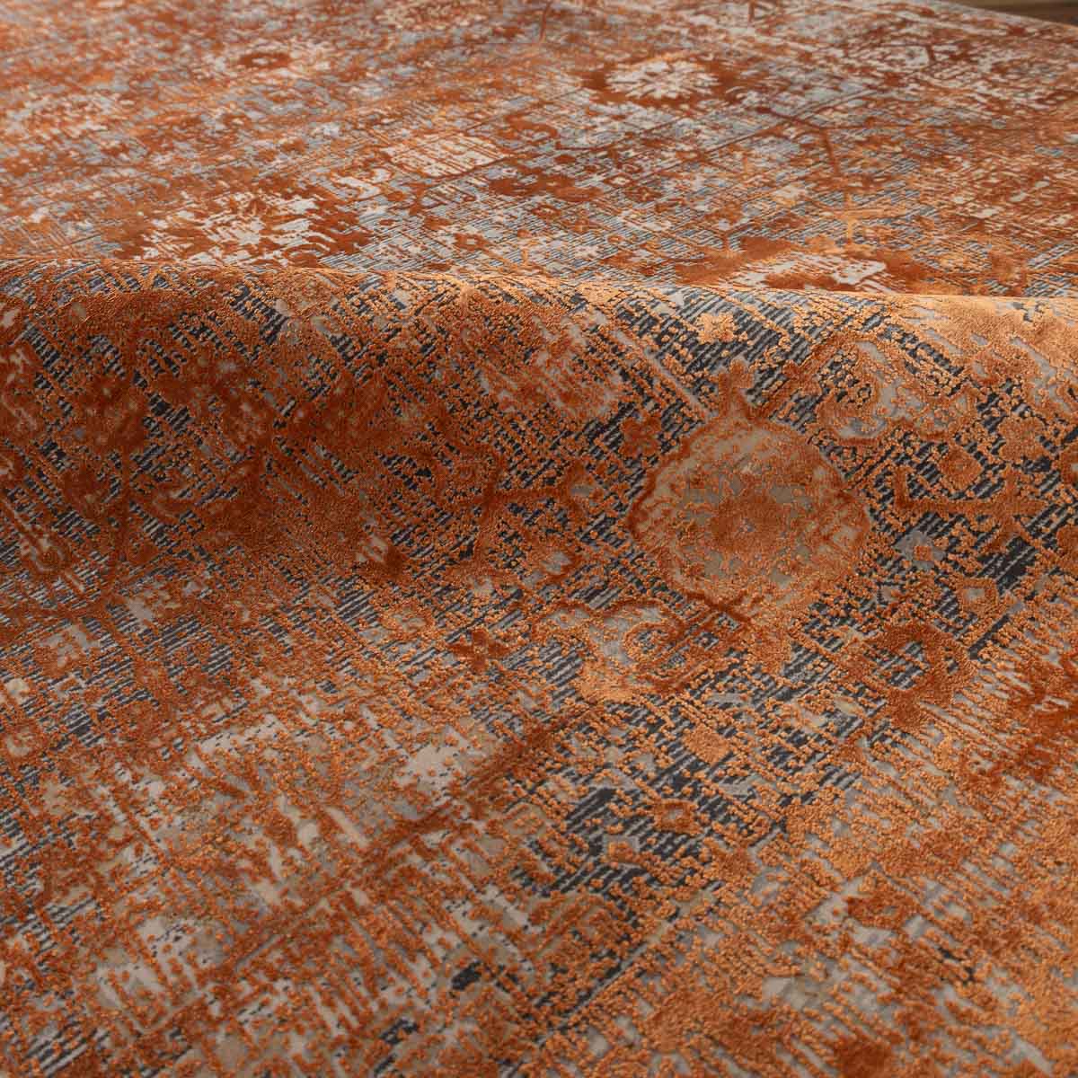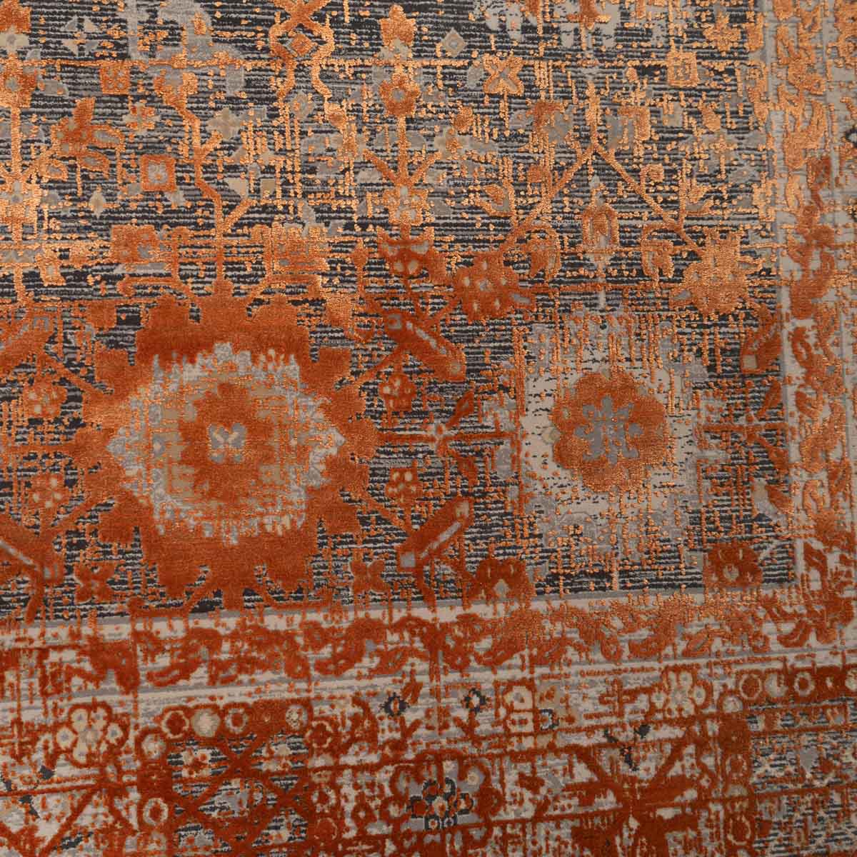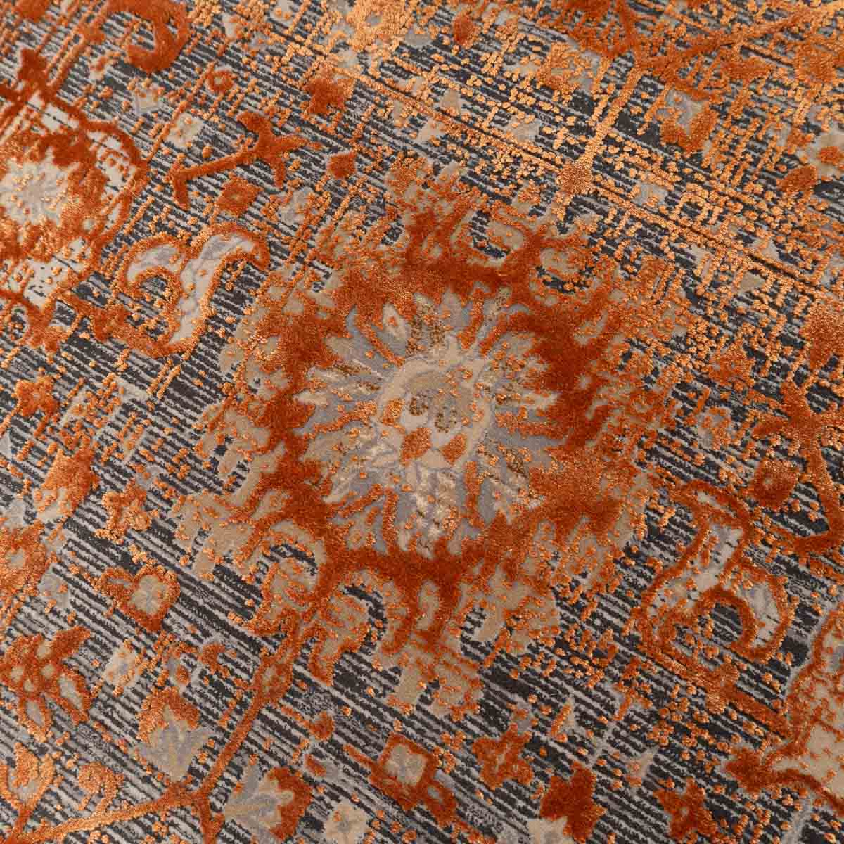 שטיח מסדרת היסטוריה, בעיצוב עוצמתי המשלב בין גווני אפור רגועים לכתום עז ודומיננטי. הדוגמה המיוחדת מעניקה לשטיח אופי ייחודי של וינטג' מודרני. השטיח נארג בצפיפות גבוהה במיוחד של 2 מיליון קשר, ועבר תהליך עישון סטון וואש שמעניק לו מראה עתיק ותחושת יוקרה אמיתית.