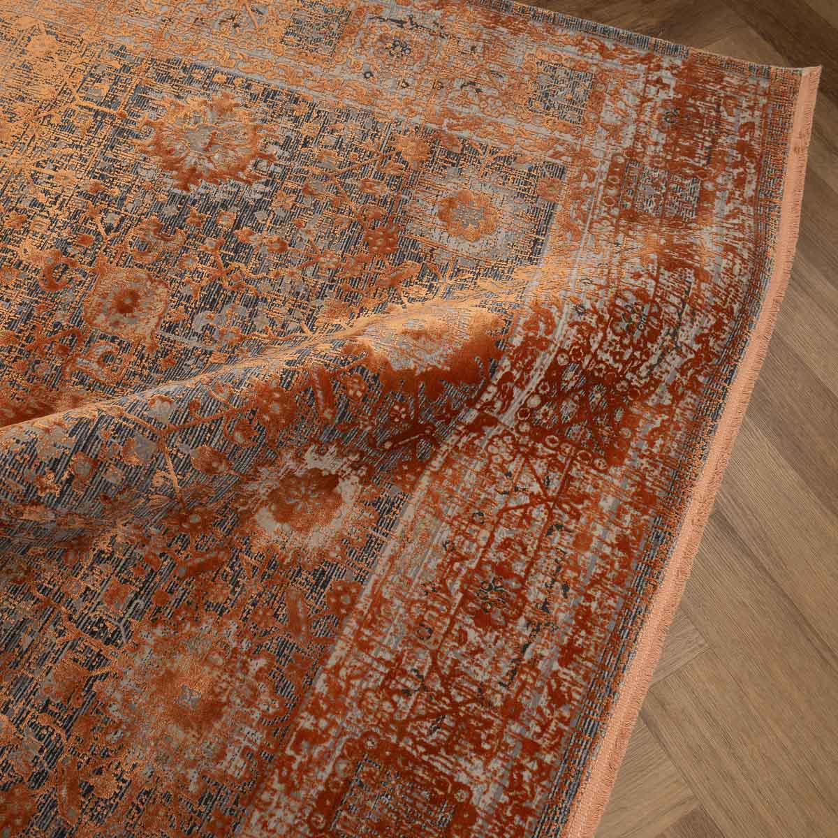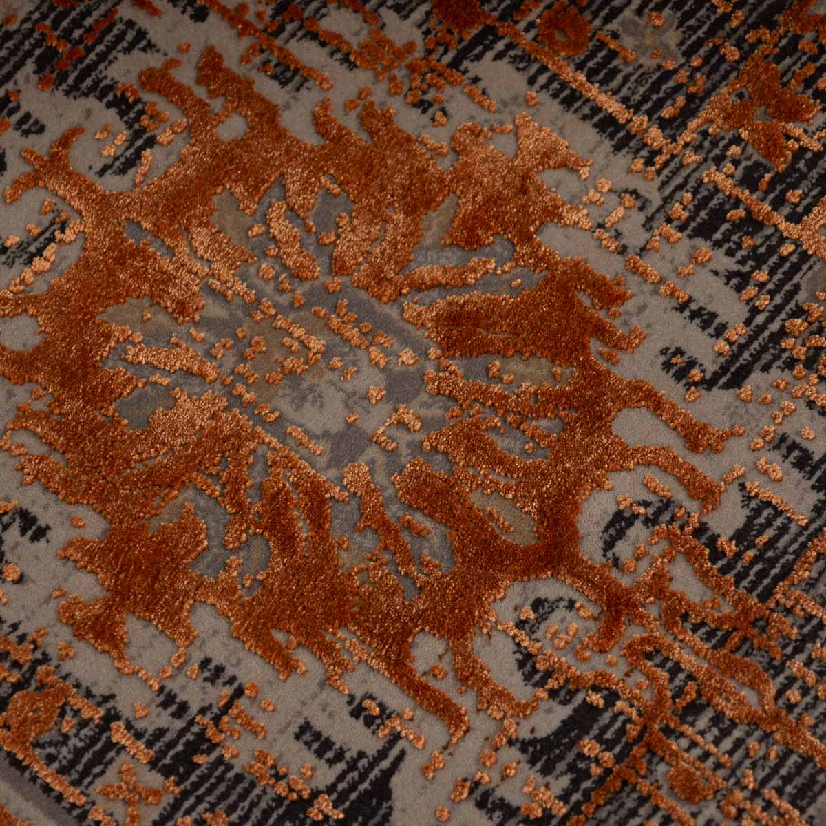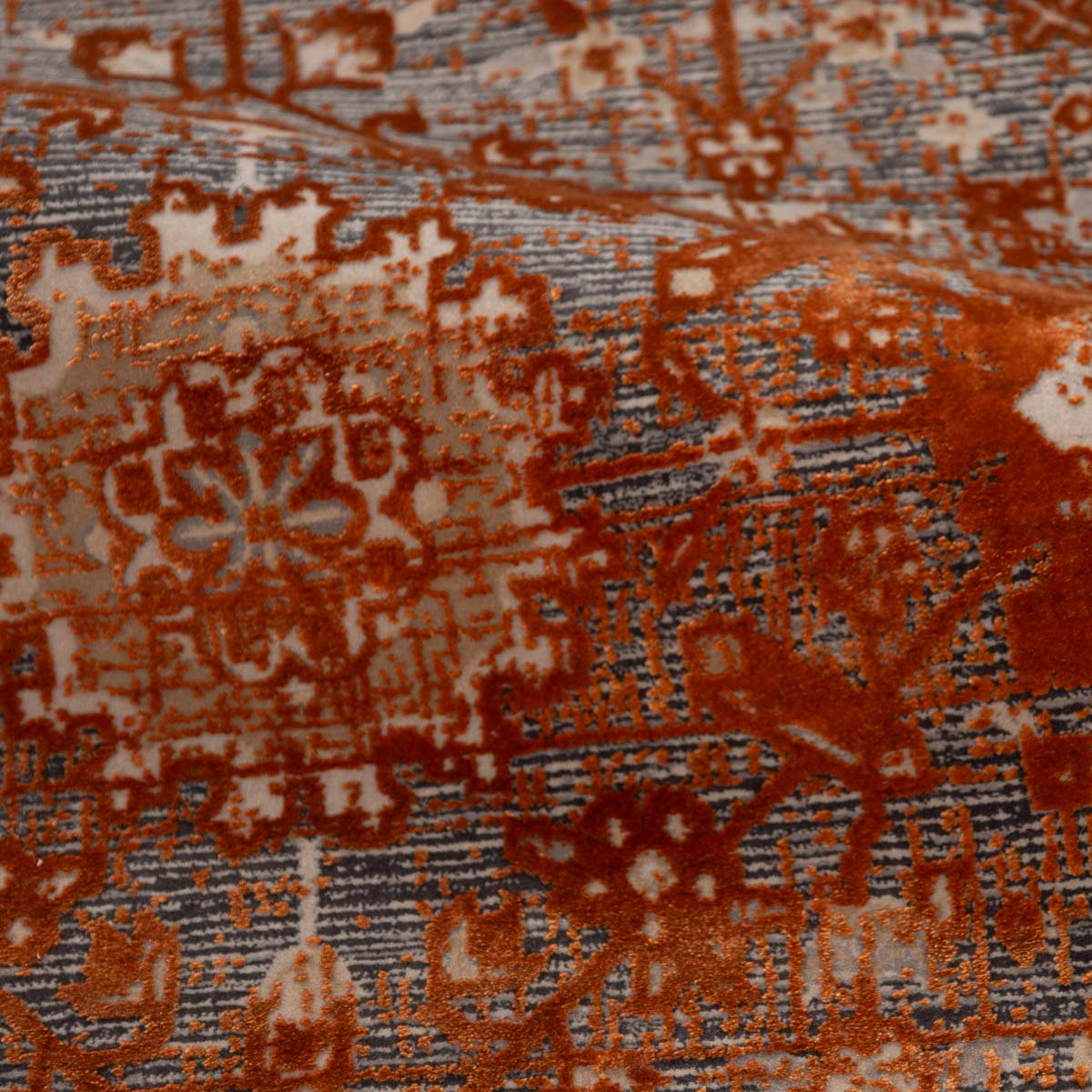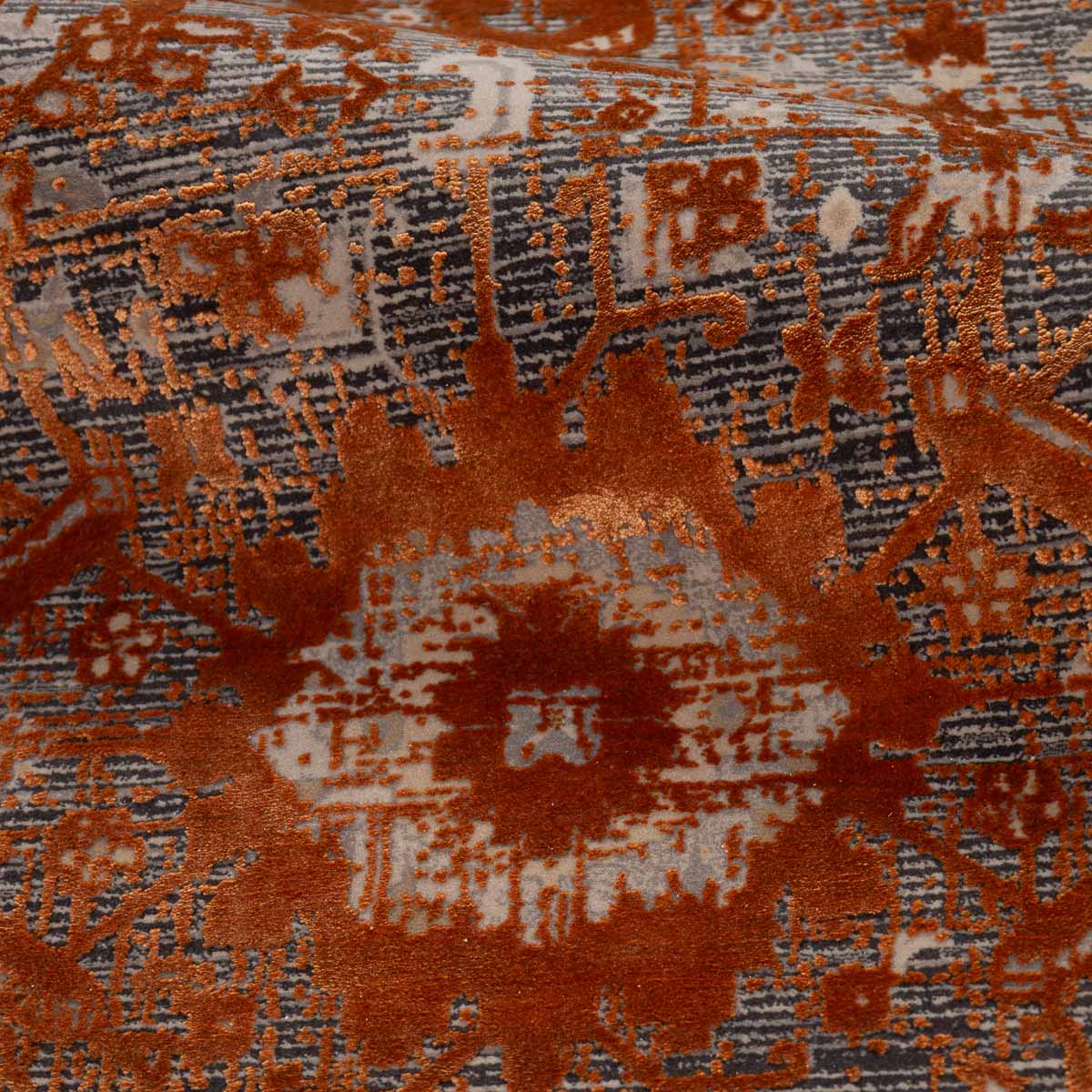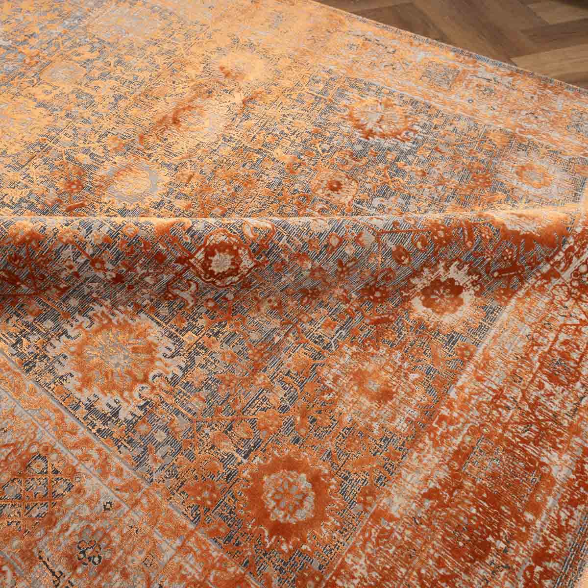 שטיח מסדרת היסטוריה, בעיצוב עוצמתי המשלב בין גווני אפור רגועים לכתום עז ודומיננטי. הדוגמה המיוחדת מעניקה לשטיח אופי ייחודי של וינטג' מודרני. השטיח נארג בצפיפות גבוהה במיוחד של 2 מיליון קשר, ועבר תהליך עישון סטון וואש שמעניק לו מראה עתיק ותחושת יוקרה אמיתית.