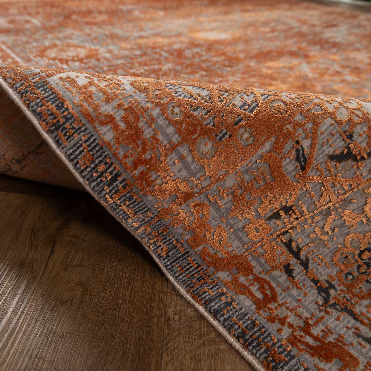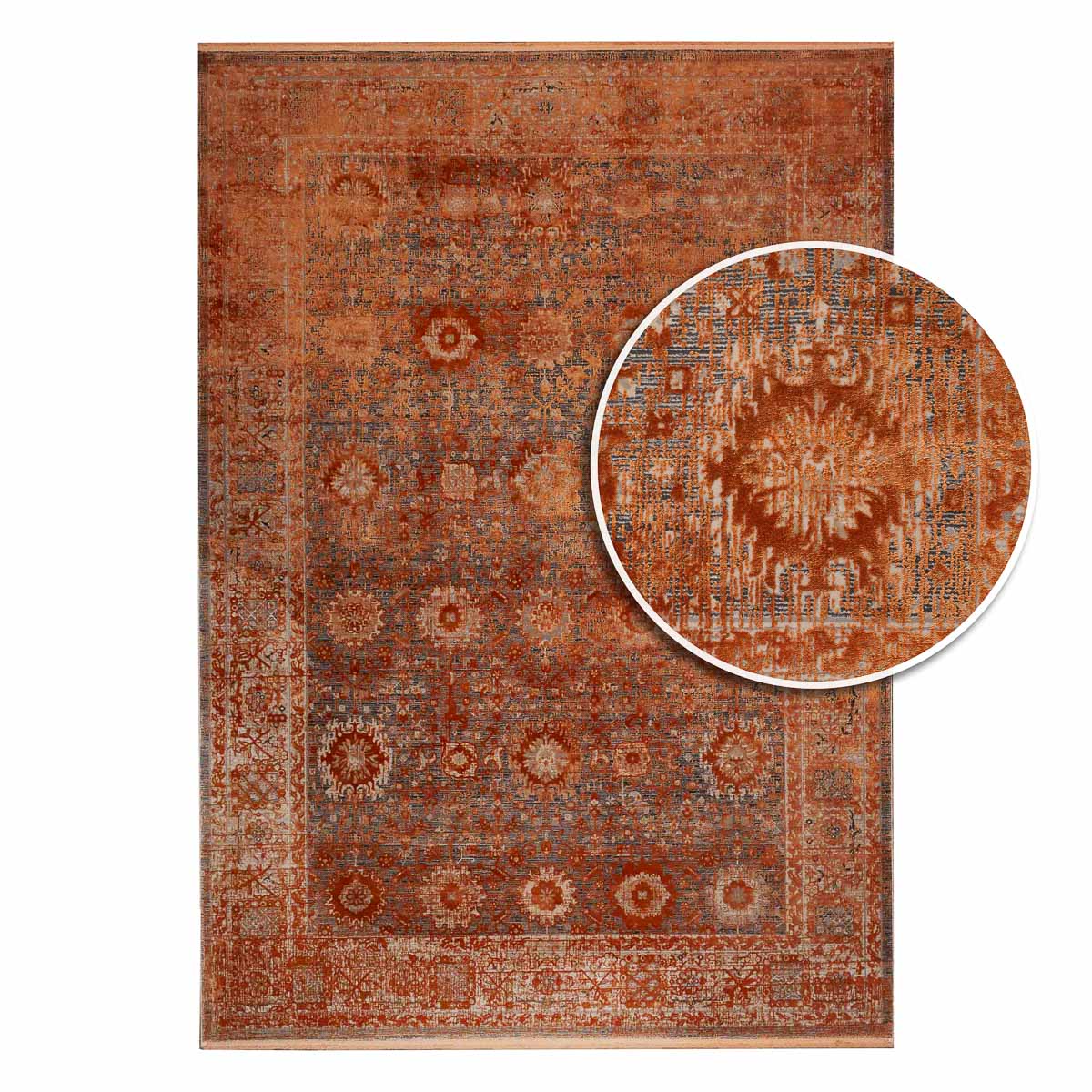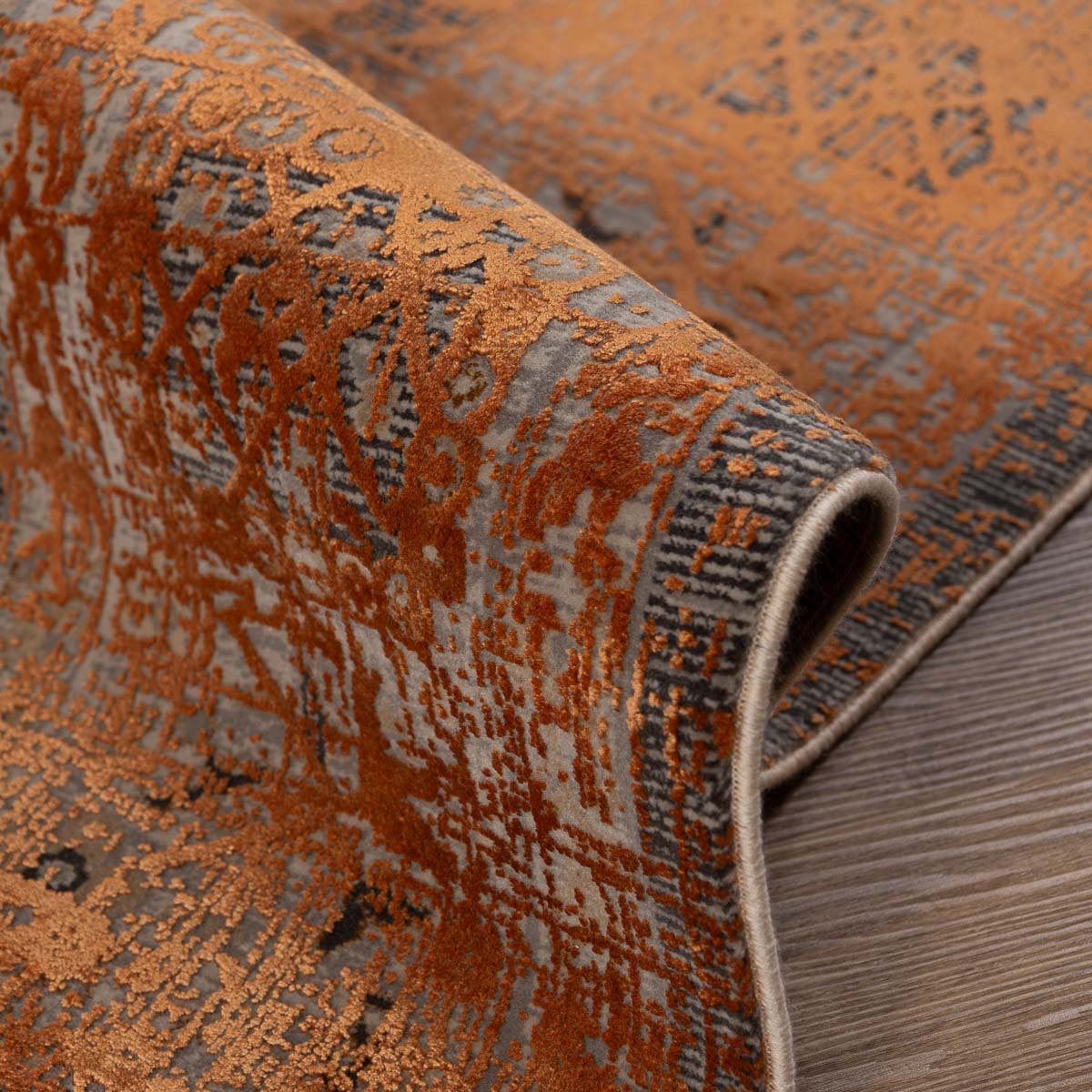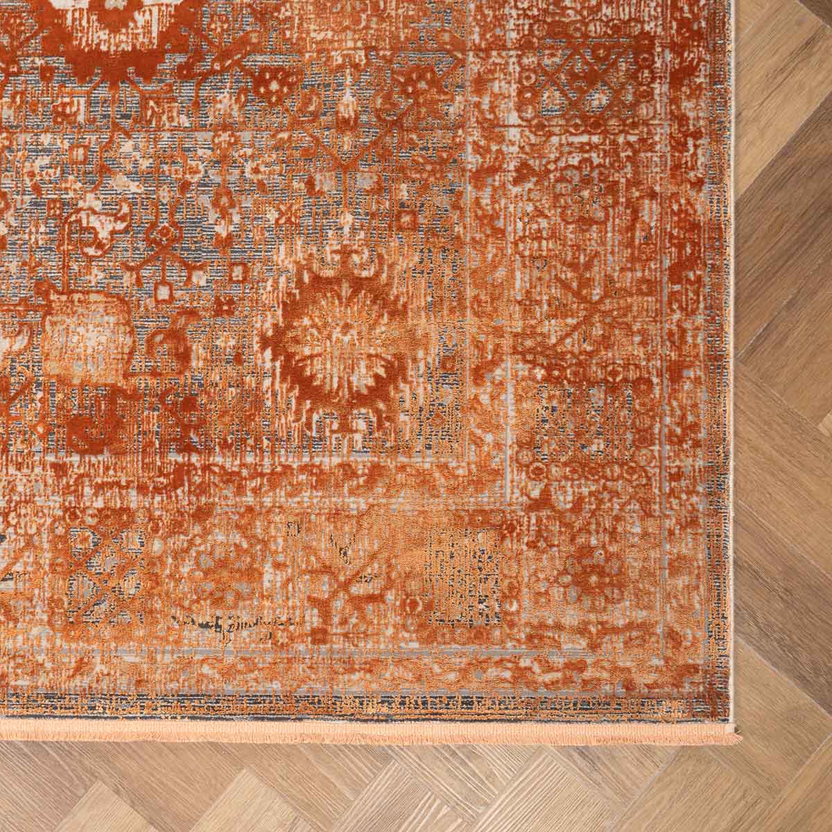 שטיח מסדרת היסטוריה, בעיצוב עוצמתי המשלב בין גווני אפור רגועים לכתום עז ודומיננטי. הדוגמה המיוחדת מעניקה לשטיח אופי ייחודי של וינטג' מודרני. השטיח נארג בצפיפות גבוהה במיוחד של 2 מיליון קשר, ועבר תהליך עישון סטון וואש שמעניק לו מראה עתיק ותחושת יוקרה אמיתית.