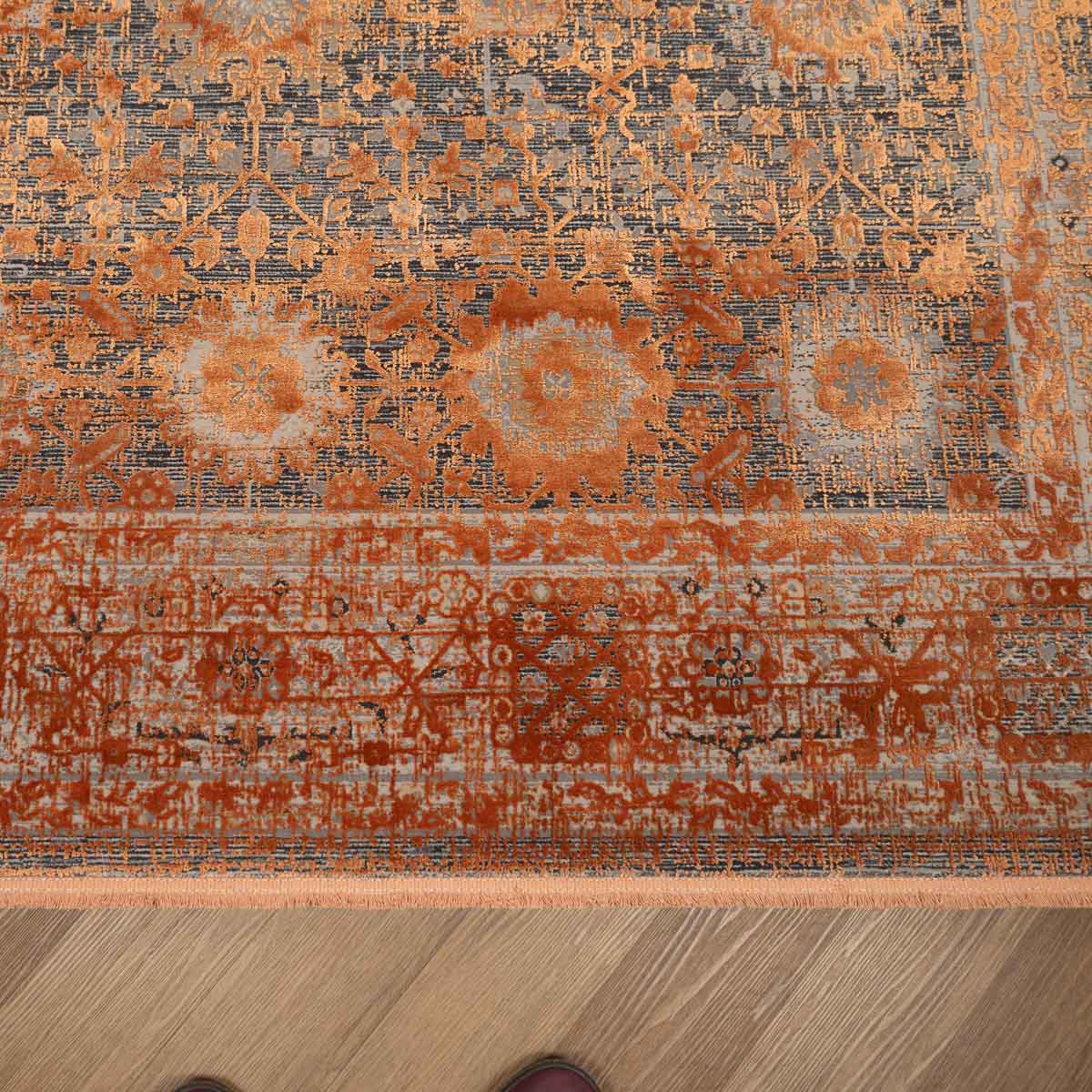 שטיח היסטוריה 05 אפור כתום מעניק לחלל תחושת עומק ואופי חם. השילוב בין הצבעוניות הדינמית למראה המעושן הופך אותו לפריט מרכזי שמושך את העין ומשדרג כל עיצוב – קלאסי או מודרני.