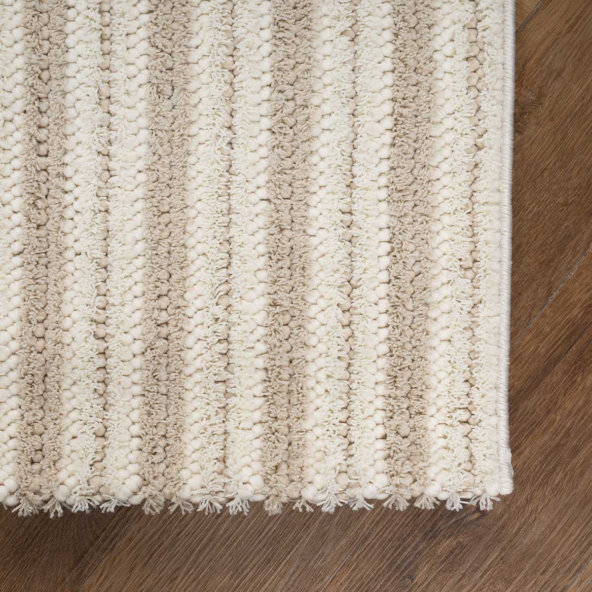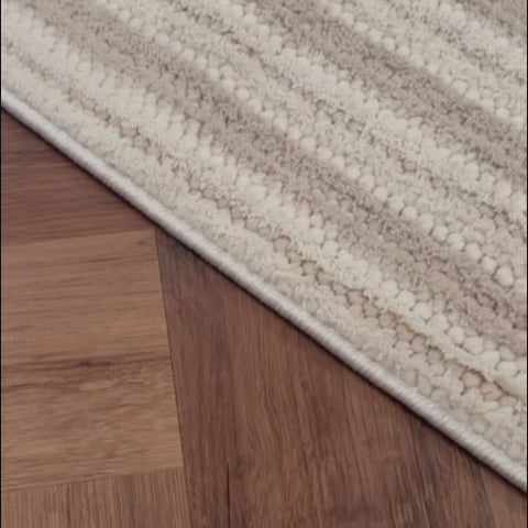 טיפ עיצובי: שטיח הטאץ' בז'-קרם נראה נפלא לצד וילונות פשתן בהירים, ספות בגוון אבן או אפור בהיר, ואלמנטים של עץ אלון טבעי.
