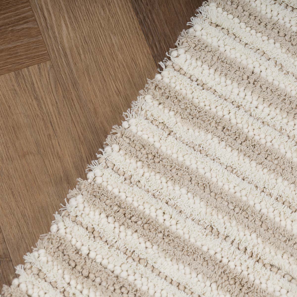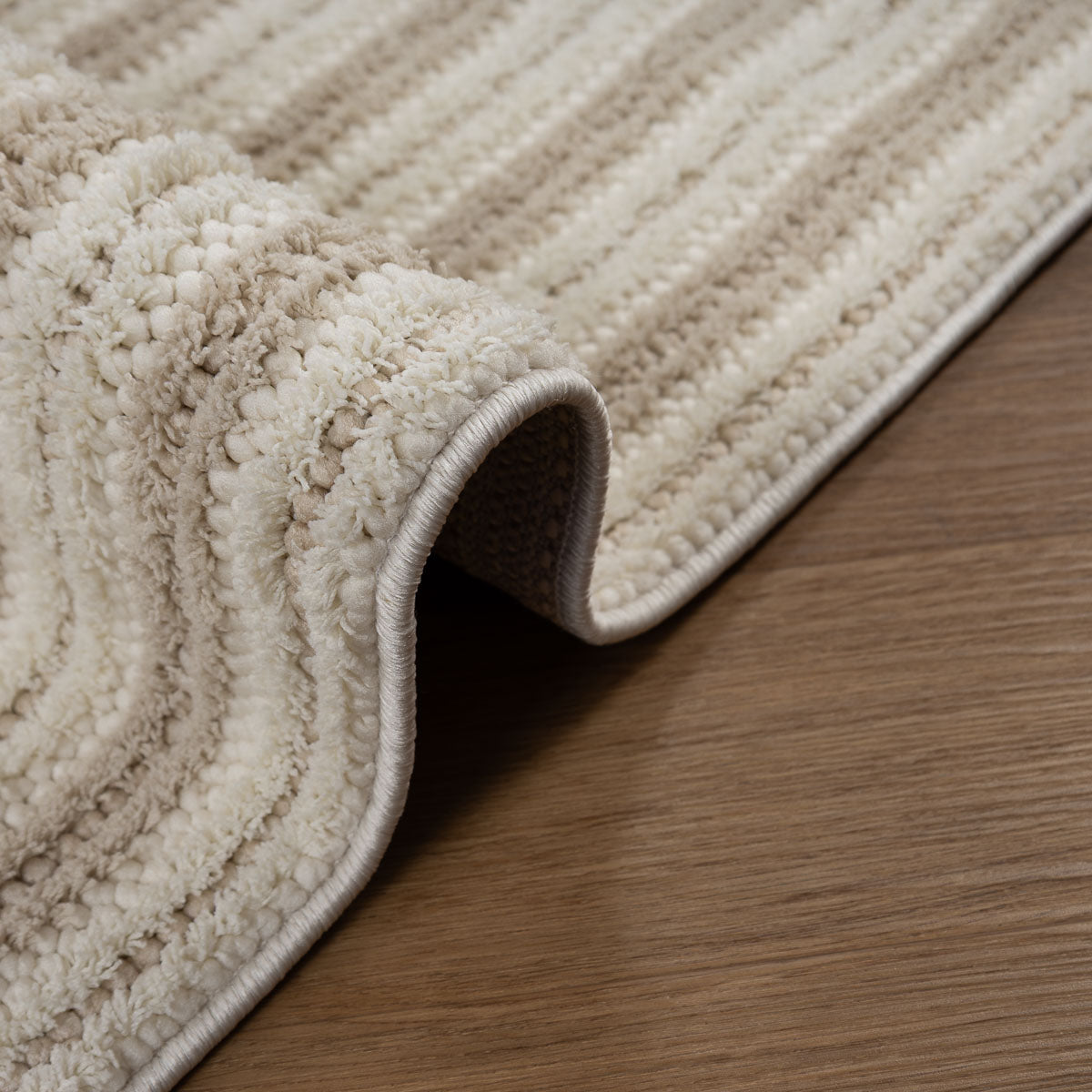 שורת מחץ: המראה המואר של הקרם פוגש את העמידות של הלולאות – שטיח הרמוני שמוסיף אור, מרחב ותחושת רוגע לכל חדר.