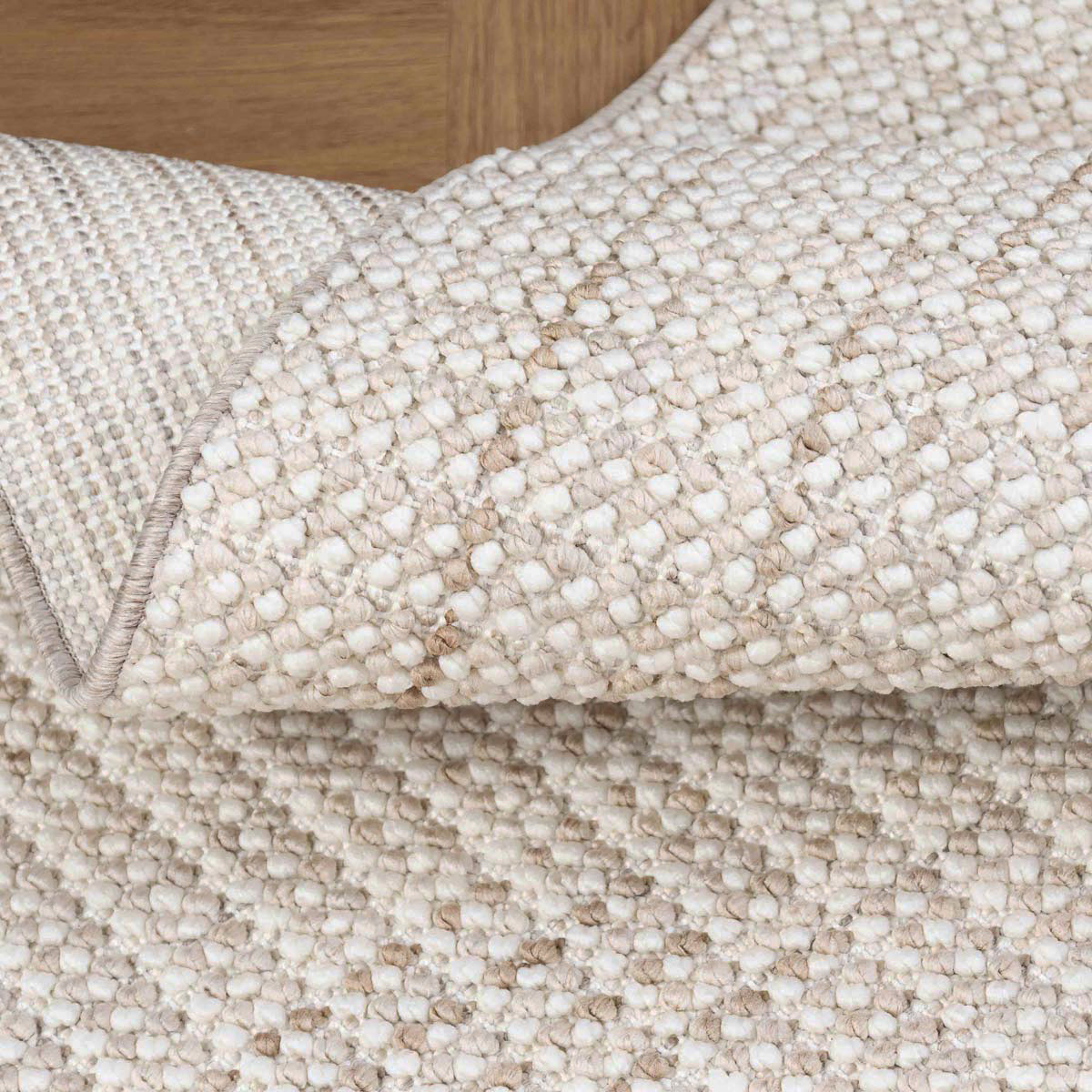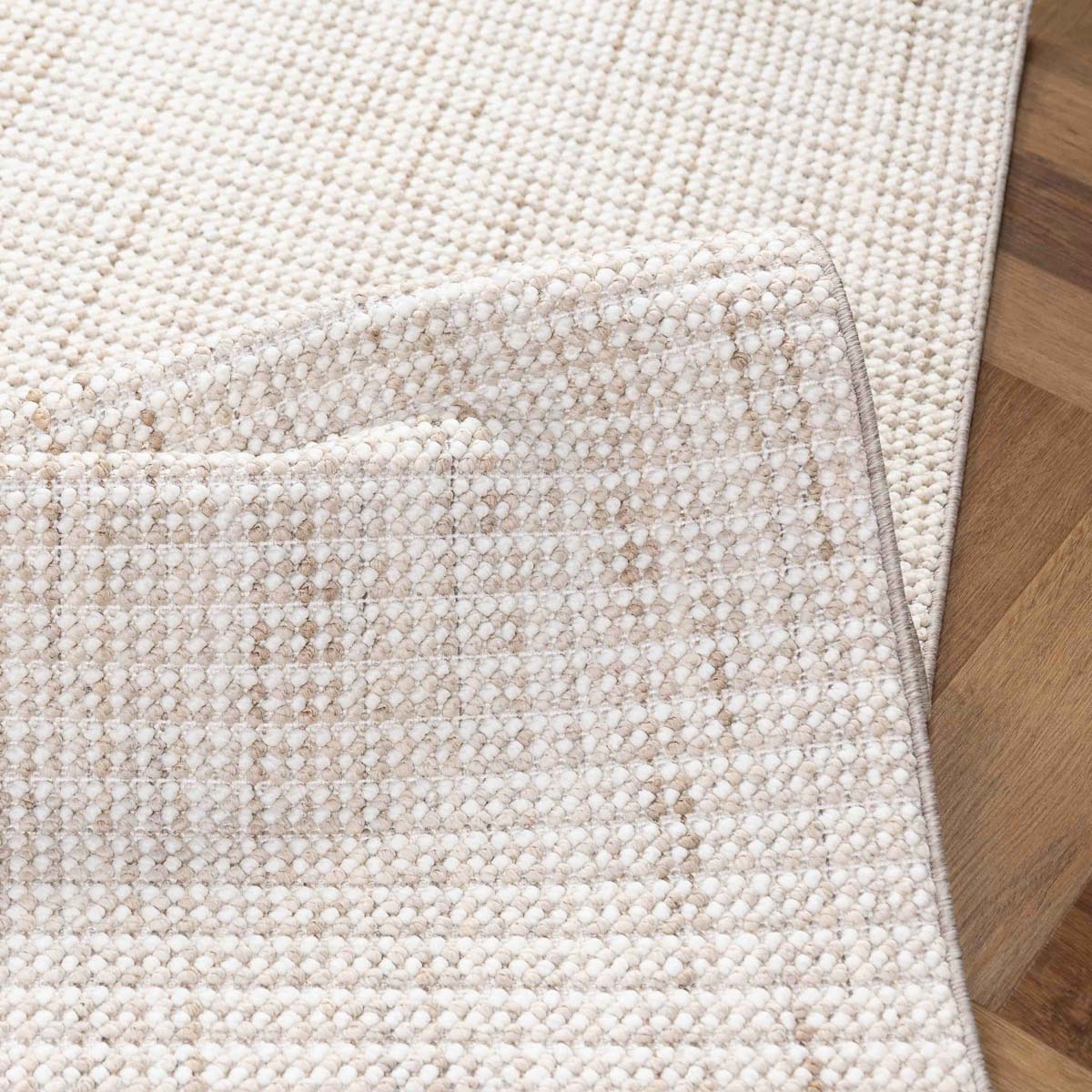 השטיח מאופיין בטקסטורה עדינה במראה שזור, המדמה עבודת יד ויוצרת עומק טבעי וחם. גווני הבז' הרכים משתלבים בהרמוניה עם עץ טבעי, גווני אפור ובהירים, ומתאימים במיוחד לסלון, פינת אוכל או חדר שינה.