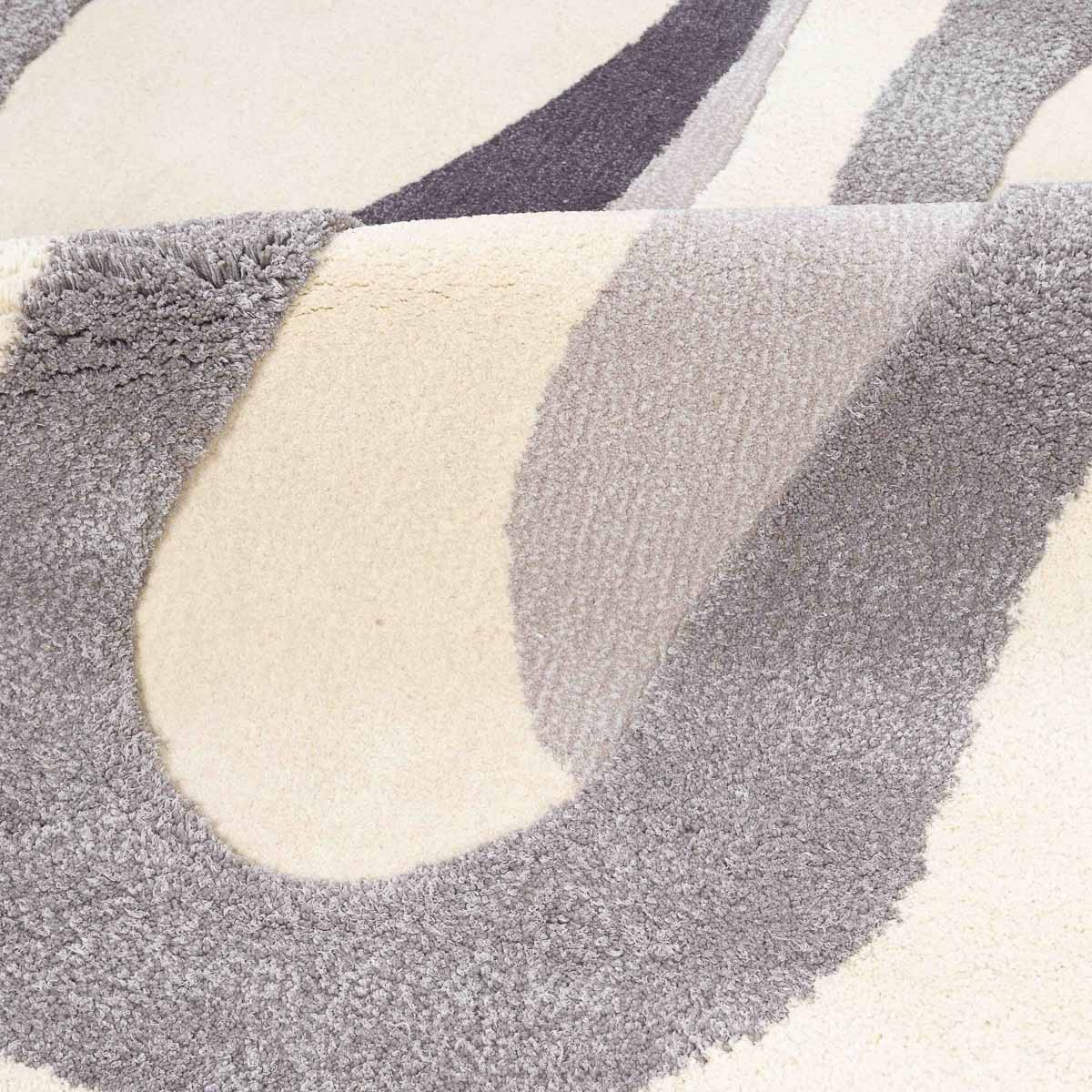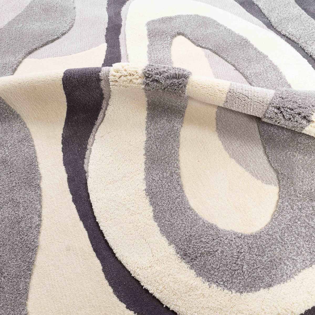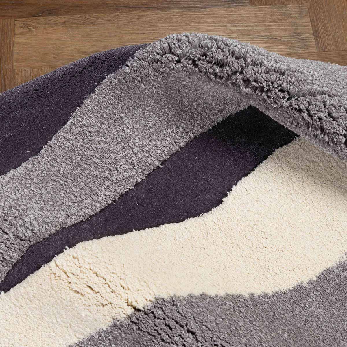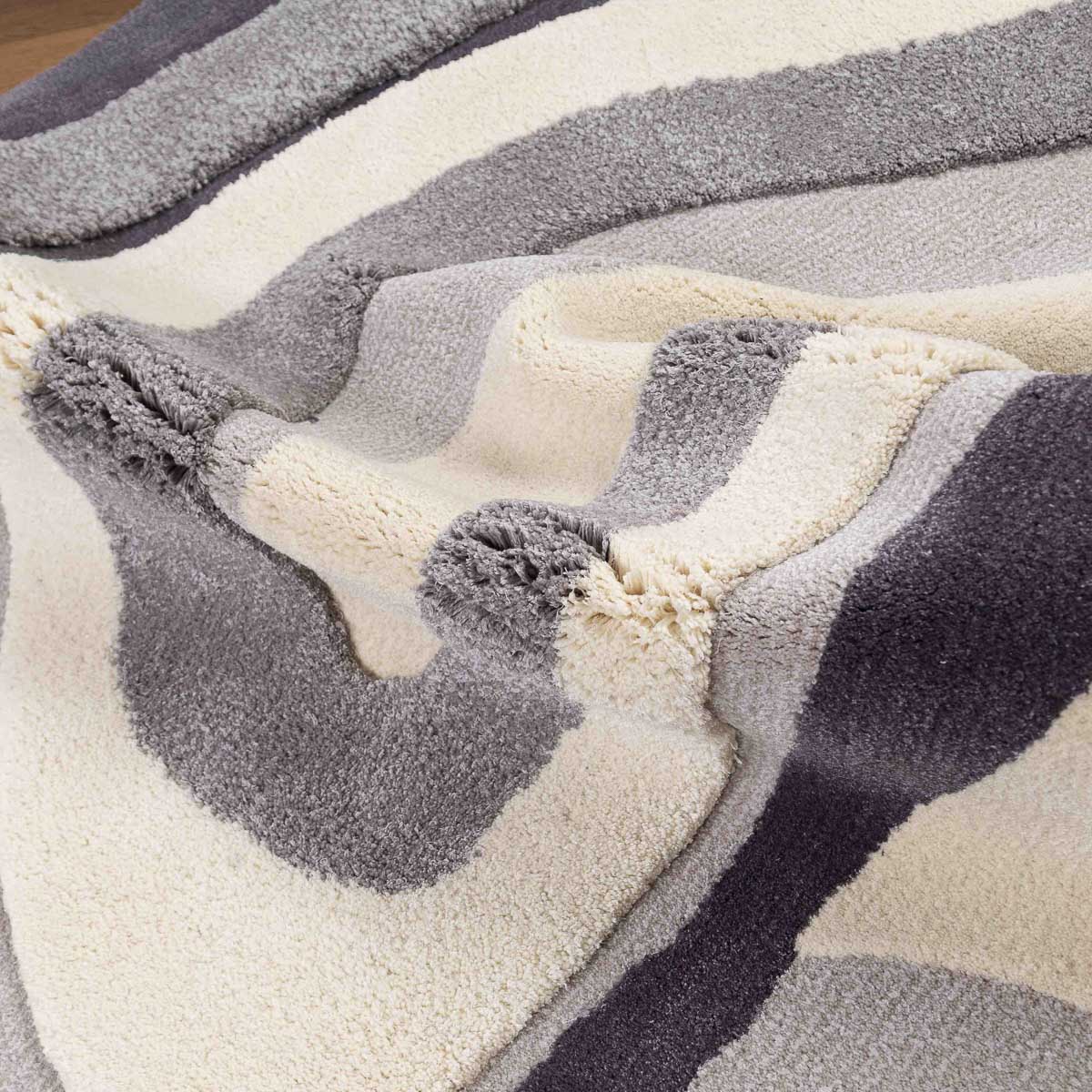 שטיח בגוונים של אפור, פחם ולבן המשתלבים בהרמוניה עכשווית ואלגנטית. הצורה הלא סימטרית מעניקה אופי ייחודי לכל חלל – מושלם לסלונים מודרניים, חללי עבודה מעוצבים או חדרי שינה יוקרתיים. המשחק בין עומקי האריגה יוצר תחושת תלת־ממד מרהיבה ונעימה לעין.