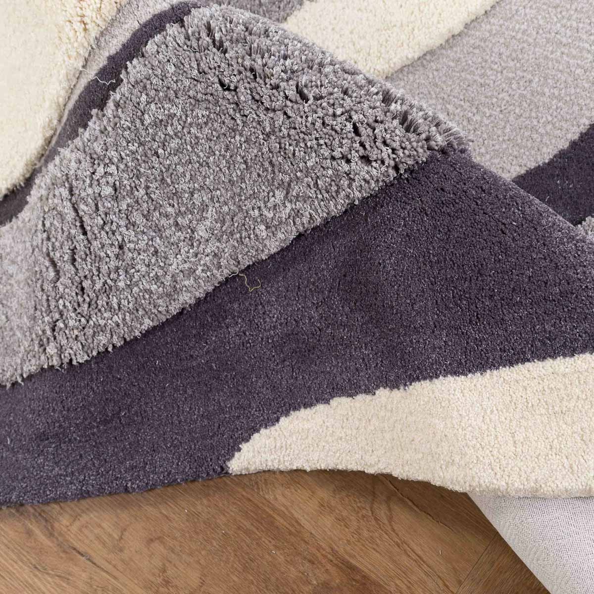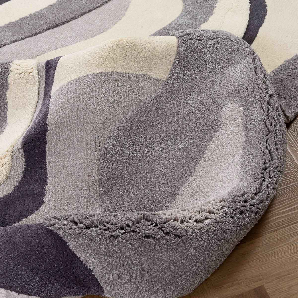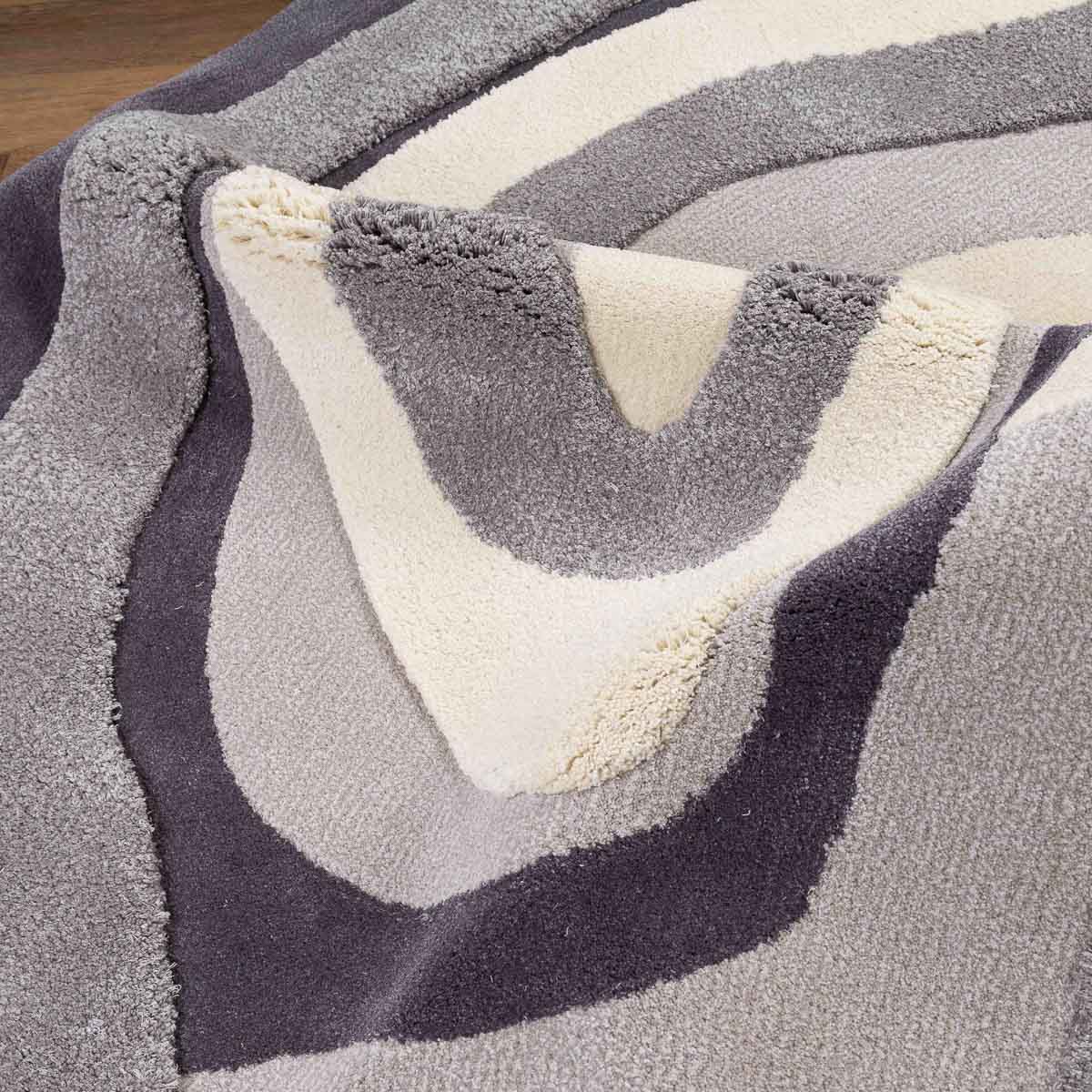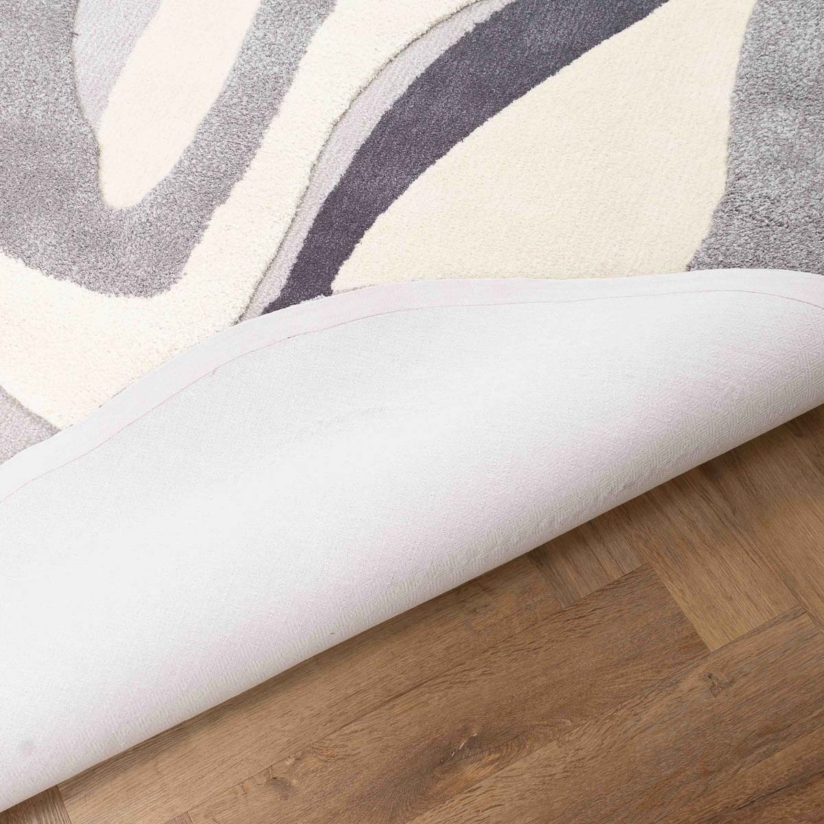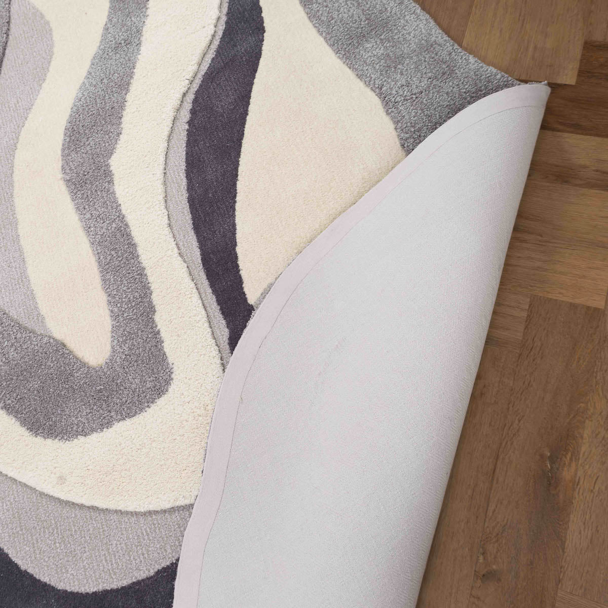 שטיח בגוונים של אפור, פחם ולבן המשתלבים בהרמוניה עכשווית ואלגנטית. הצורה הלא סימטרית מעניקה אופי ייחודי לכל חלל – מושלם לסלונים מודרניים, חללי עבודה מעוצבים או חדרי שינה יוקרתיים. המשחק בין עומקי האריגה יוצר תחושת תלת־ממד מרהיבה ונעימה לעין.