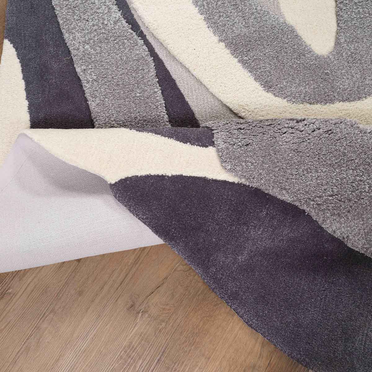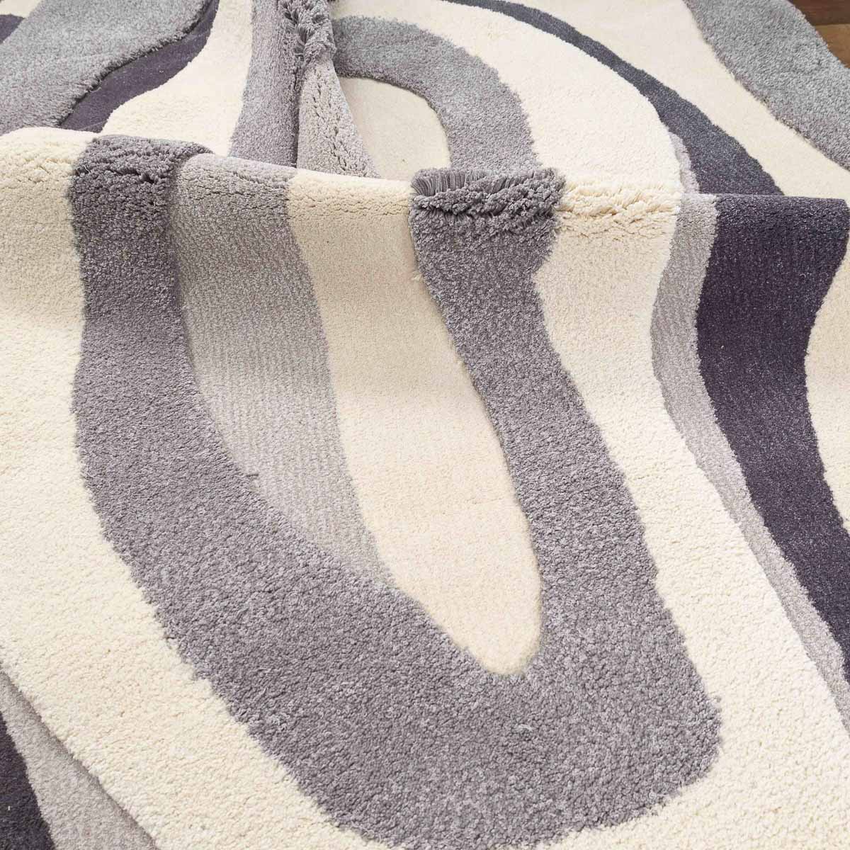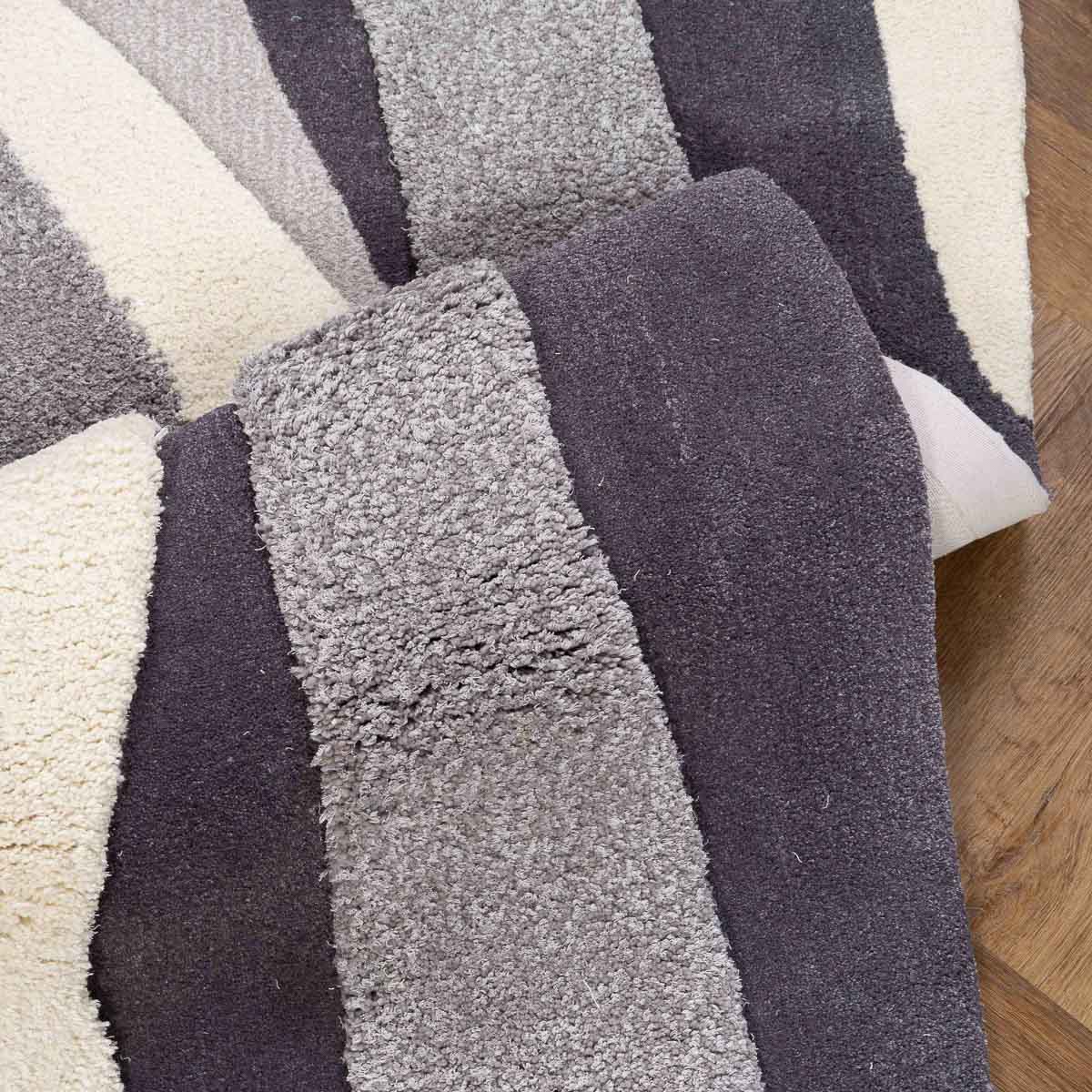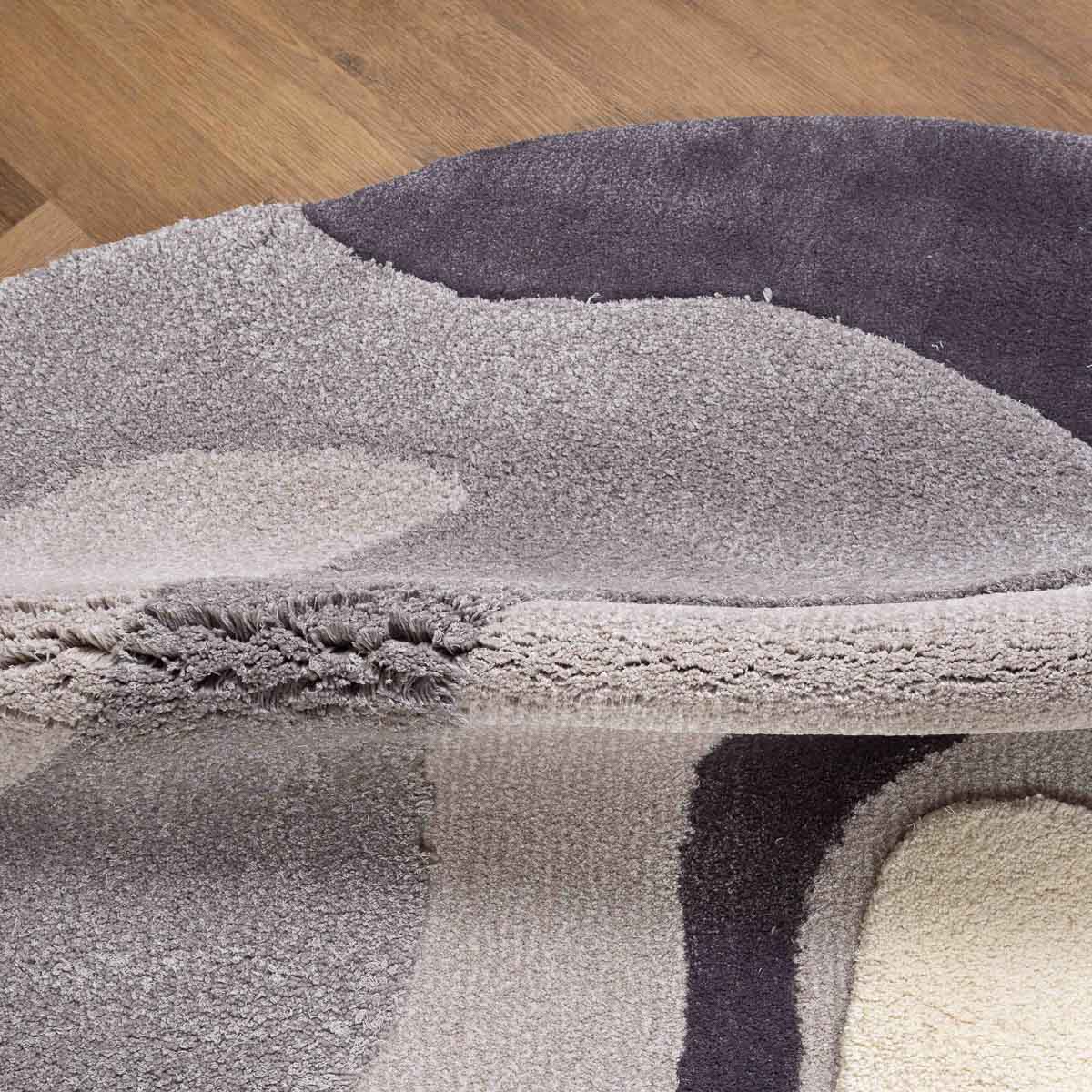שטיח בגוונים של אפור, פחם ולבן המשתלבים בהרמוניה עכשווית ואלגנטית. הצורה הלא סימטרית מעניקה אופי ייחודי לכל חלל – מושלם לסלונים מודרניים, חללי עבודה מעוצבים או חדרי שינה יוקרתיים. המשחק בין עומקי האריגה יוצר תחושת תלת־ממד מרהיבה ונעימה לעין.