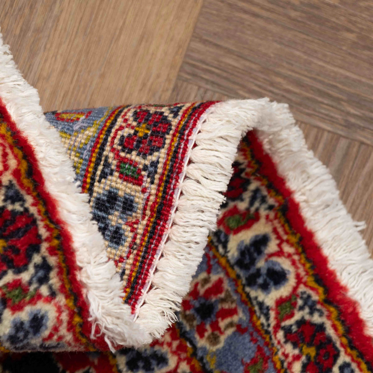 אריגת יד צפופה (Hand-Knotted): איכות אריגה עילאית המאפשרת יצירת פרטים זעירים ומורכבים בדיוק של מעשה אמנות.