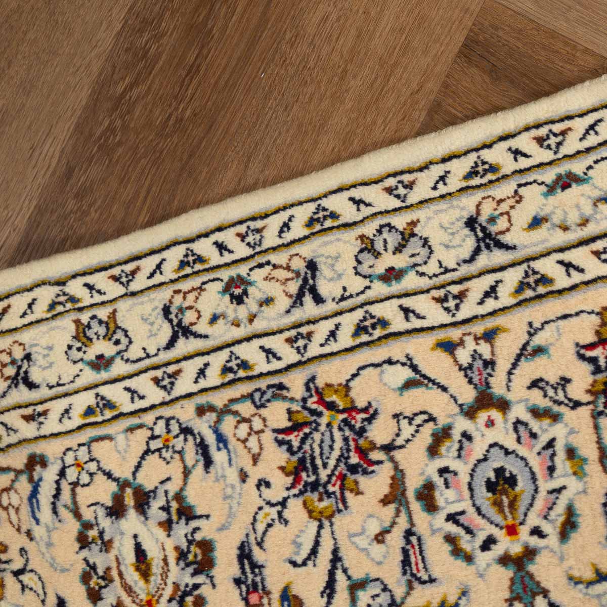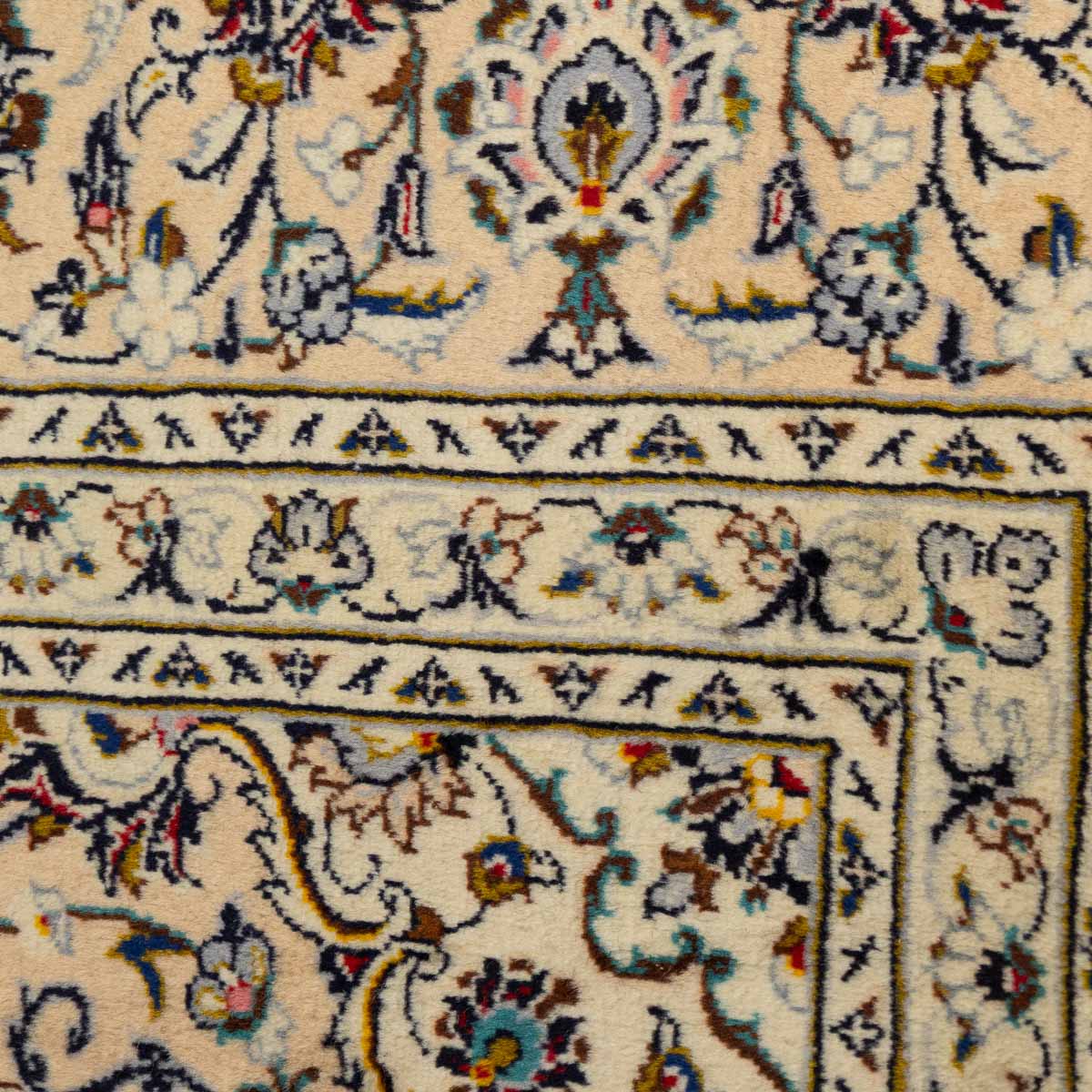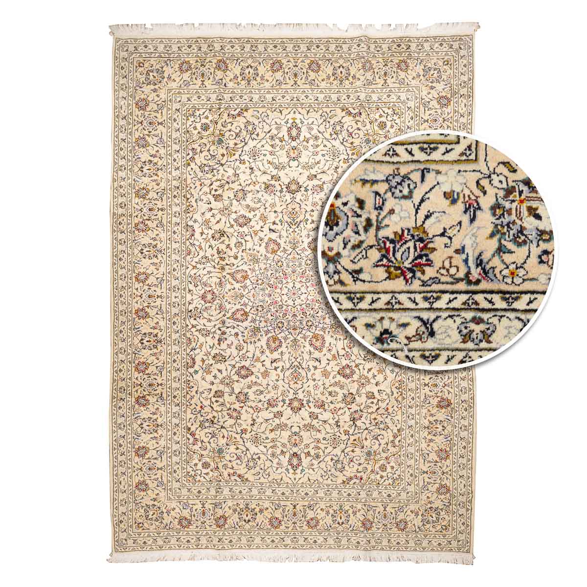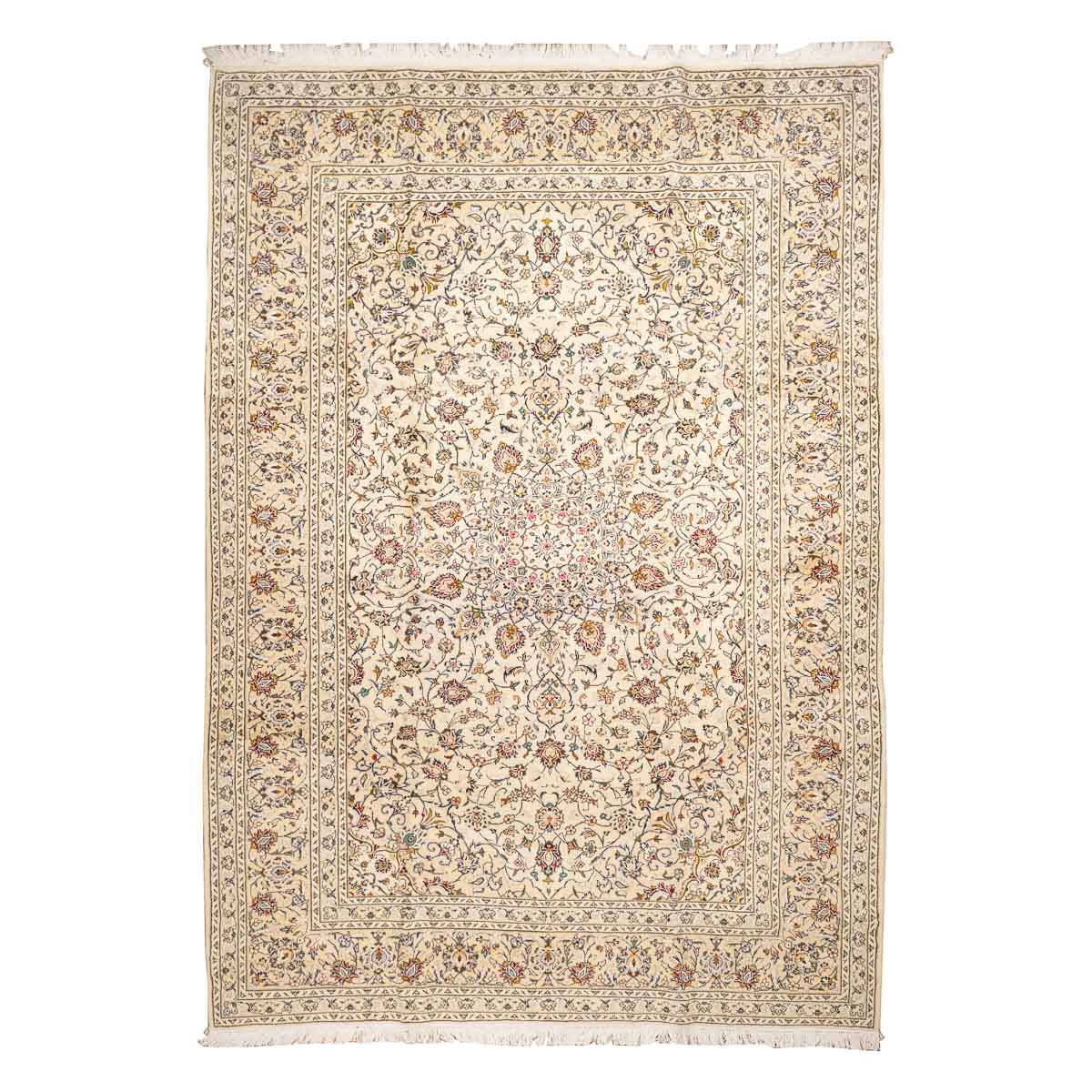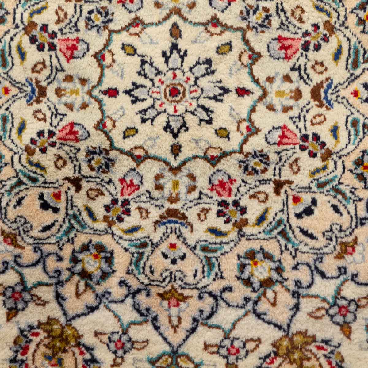 תיאור המוצר: שטיח הקשאן 00 הוא יצירת אמנות המבוססת על דגמים היסטוריים מאחת מערי האריגה המפורסמות בעולם. השטיח מתאפיין במדליון מרכזי עשיר ובשדה מלא בעיטורי פרחים וערבסקות עדינות. הבחירה ברקע בז' שמנת יוצרת ניגודיות מרהיבה עם העיטורים הצבעוניים, ומעניקה לשטיח מראה "נקי" ומודרני יותר מאשר הדגמים האדומים הקלאסיים, תוך שמירה על כל פרטי האומנות המסורתית.