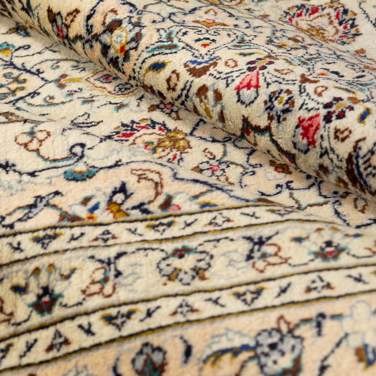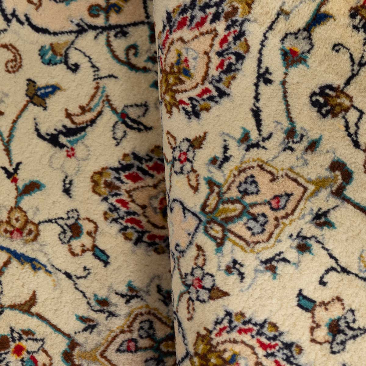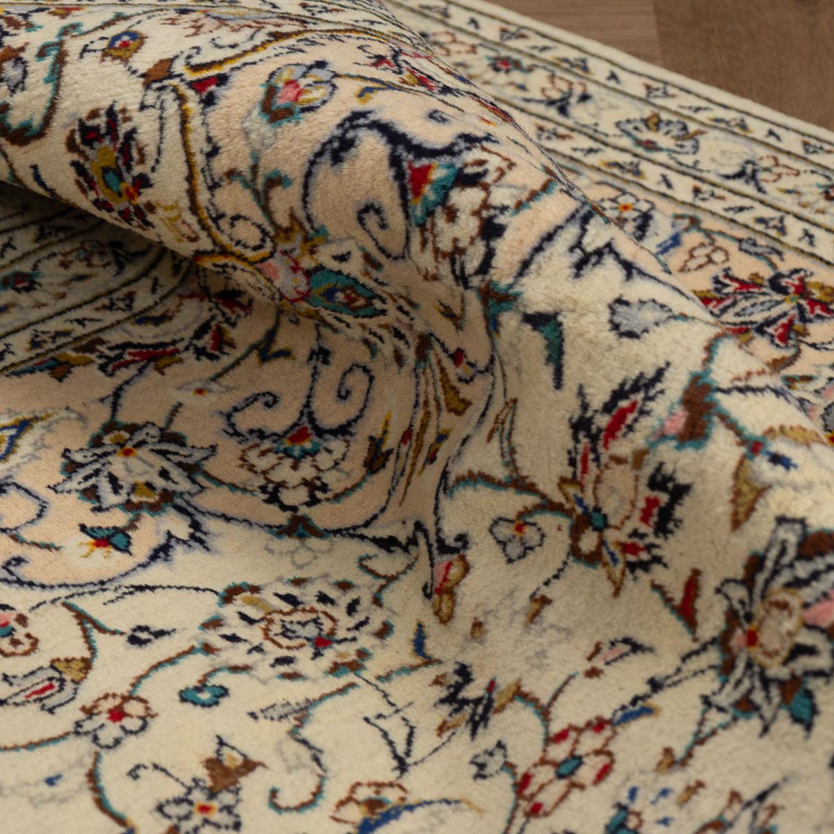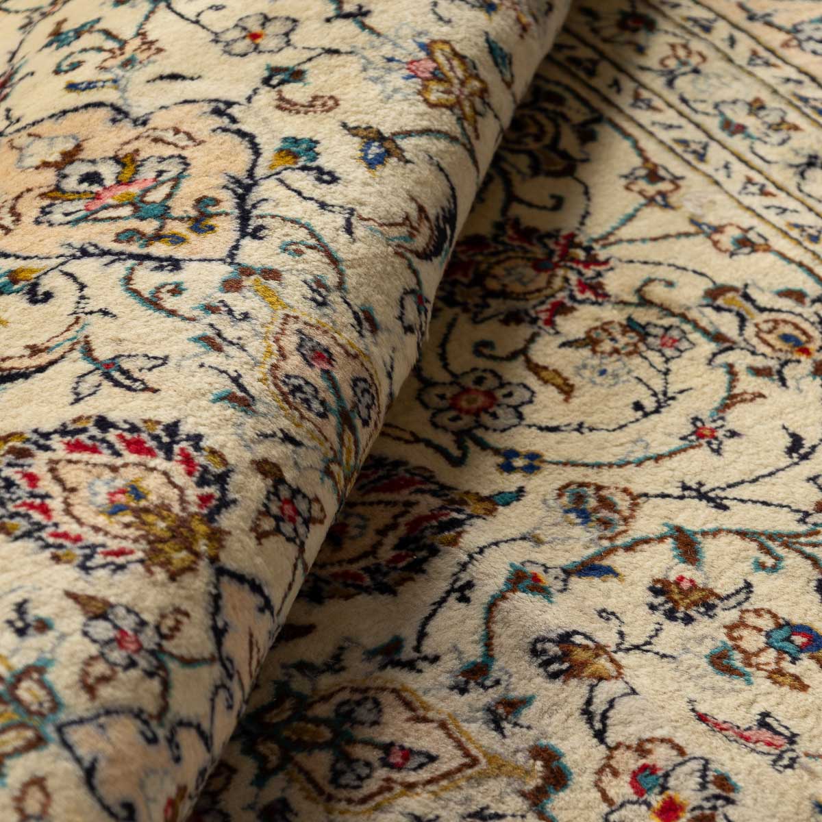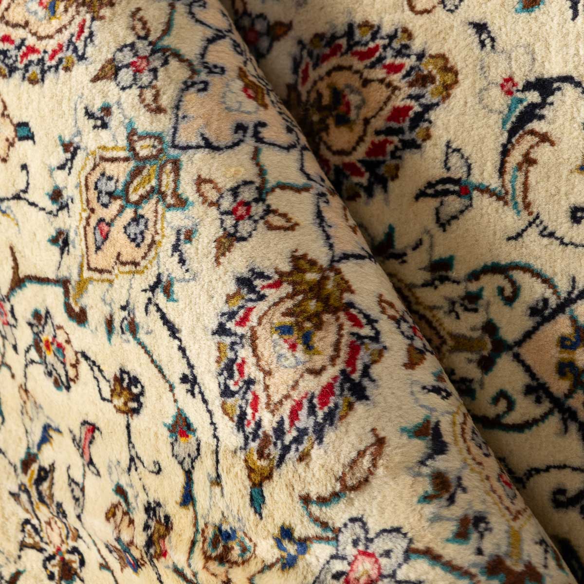 תיאור המוצר: שטיח הקשאן 00 הוא יצירת אמנות המבוססת על דגמים היסטוריים מאחת מערי האריגה המפורסמות בעולם. השטיח מתאפיין במדליון מרכזי עשיר ובשדה מלא בעיטורי פרחים וערבסקות עדינות. הבחירה ברקע בז' שמנת יוצרת ניגודיות מרהיבה עם העיטורים הצבעוניים, ומעניקה לשטיח מראה "נקי" ומודרני יותר מאשר הדגמים האדומים הקלאסיים, תוך שמירה על כל פרטי האומנות המסורתית.