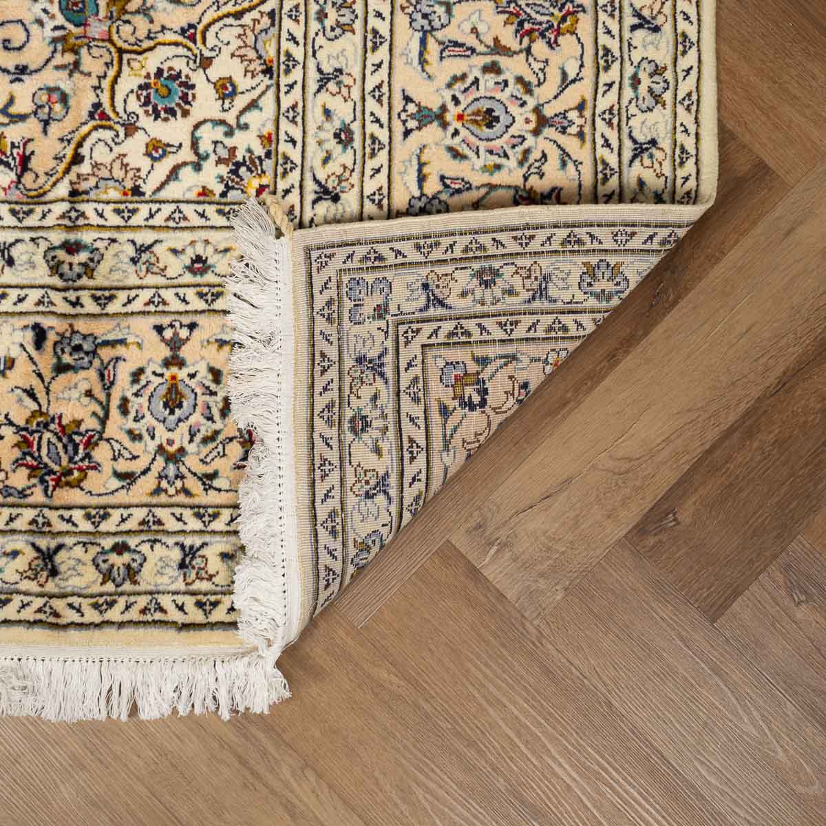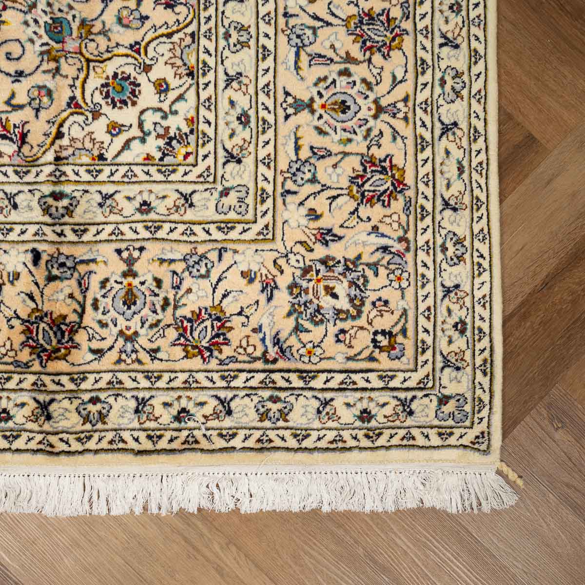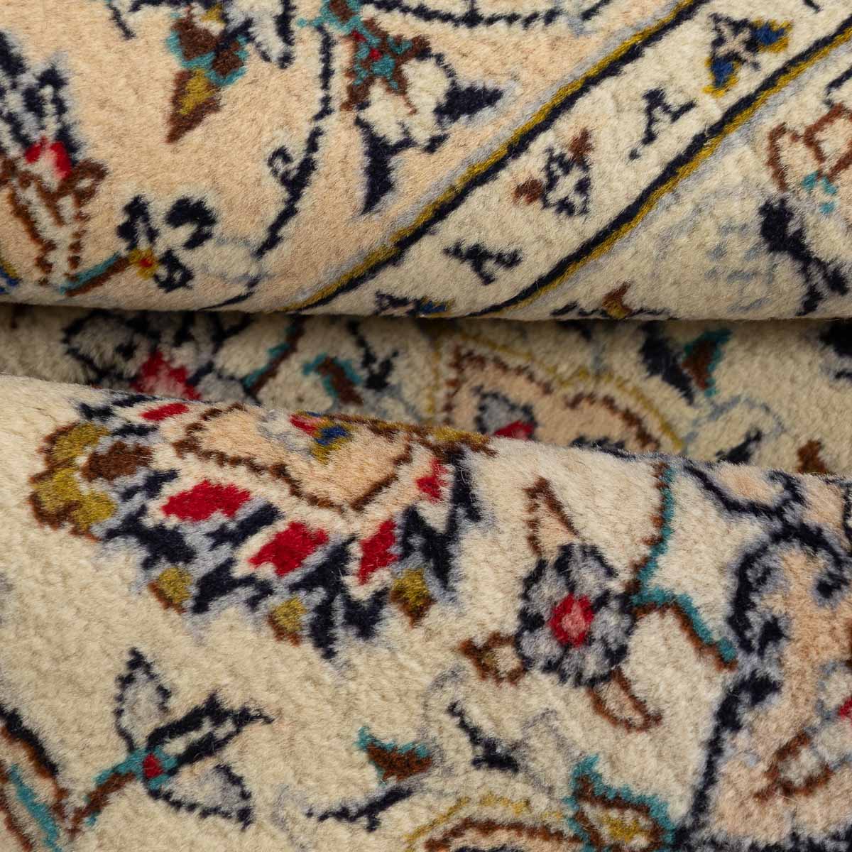שטיח הקשאן (Kashan) הפרסי במידות אלו הוא פריט יוקרה קלאסי המייצג את פסגת האריגה המסורתית. גוון הבז' הבהיר שלו מעניק לשטיח מראה אוורירי ואצילי, ההופך אותו לפתרון מושלם עבור חללים שזקוקים למגע של הדר מבלי להחשיך את החדר.