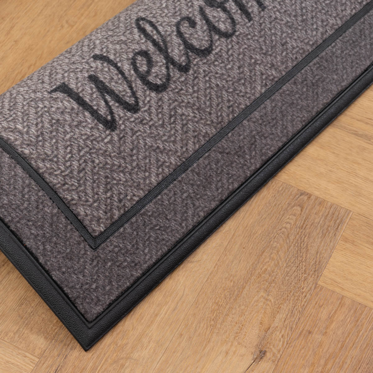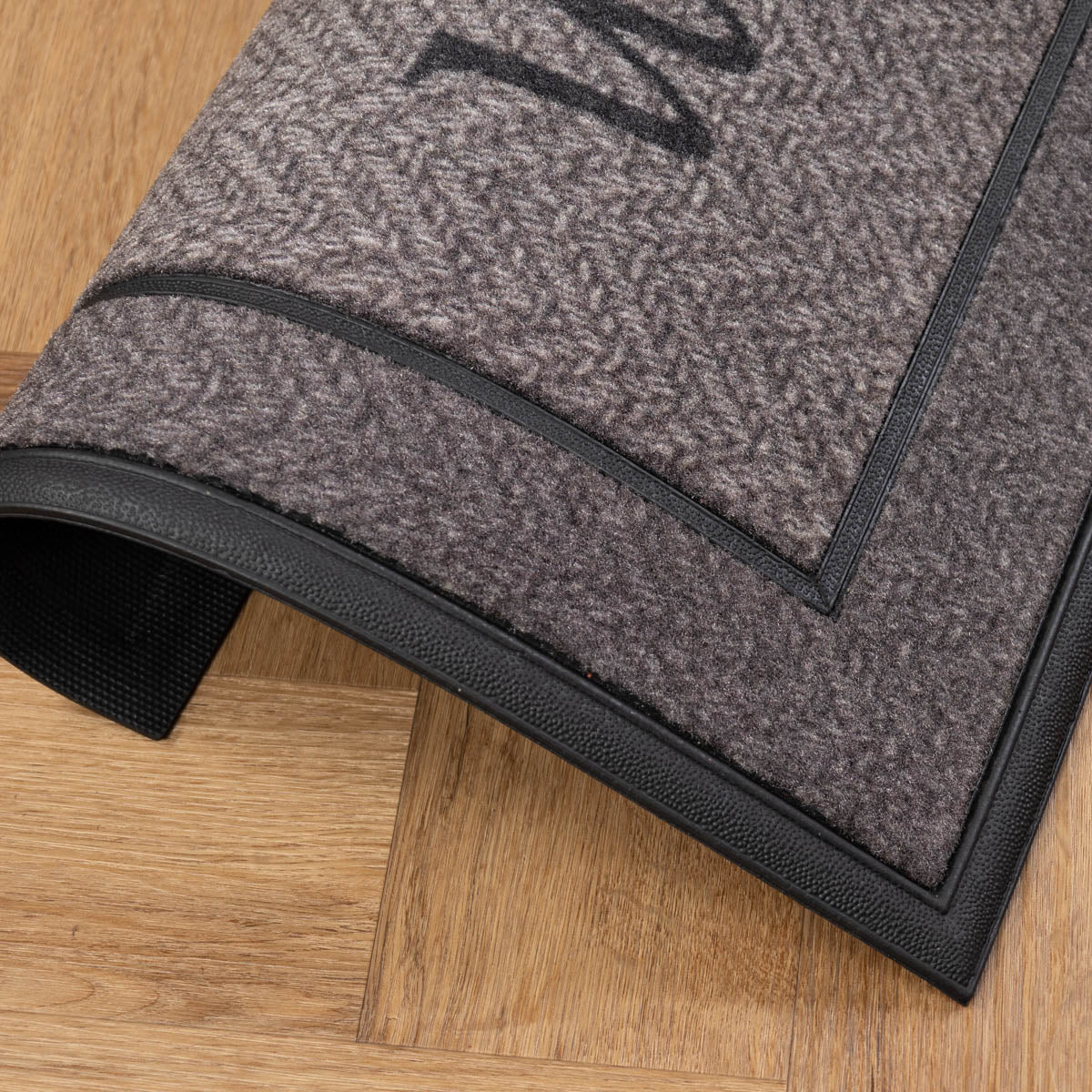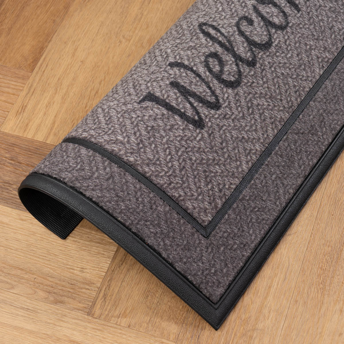 גוון אפור ניטרלי עם מסגרת כהה וכתובת Welcome עדינה. מראה מסודר שמתאים לבתים מודרניים וגם למשרדים. סיבים צפופים הלוכדים אבק ולכלוך כבר בכניסה.