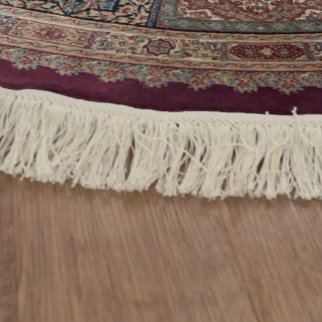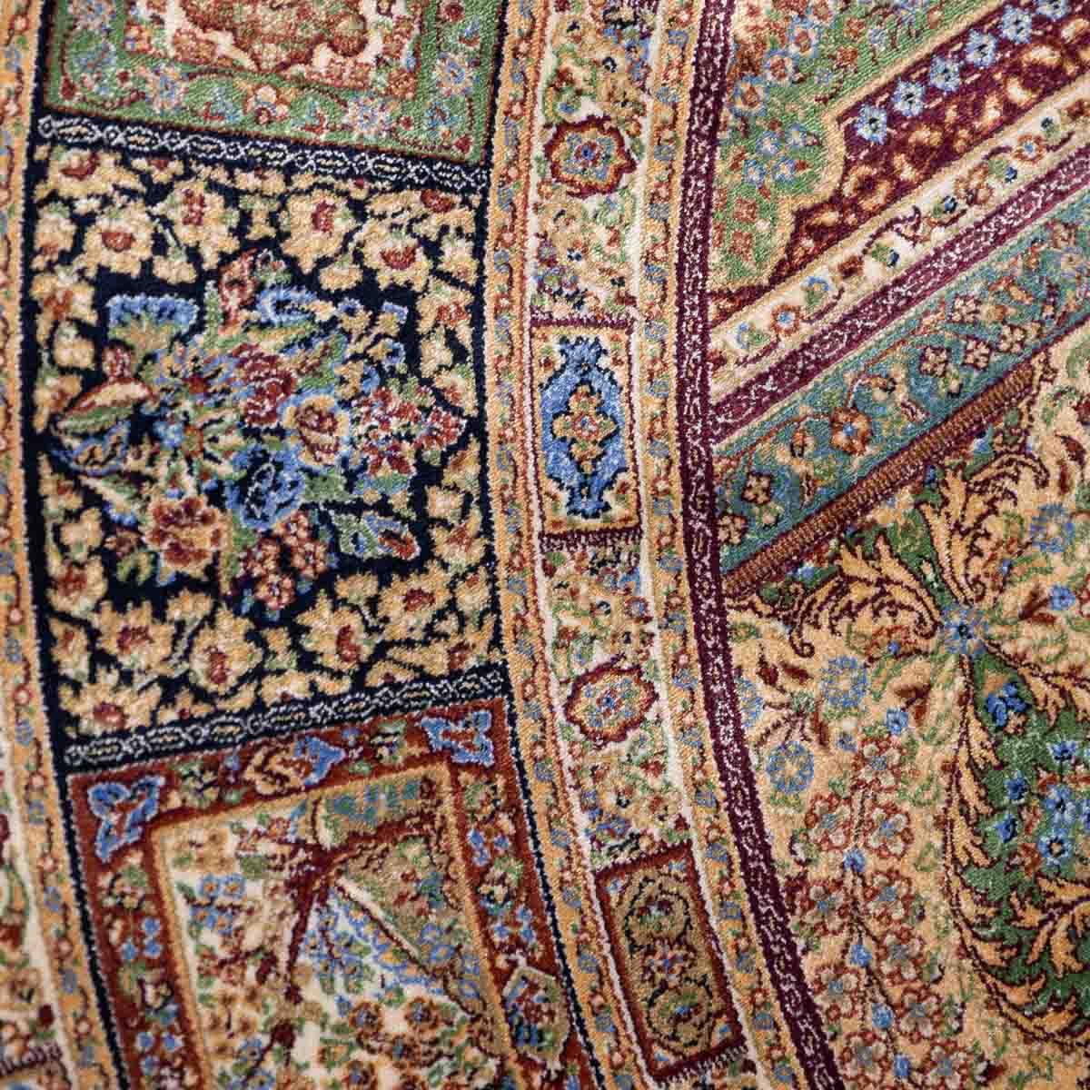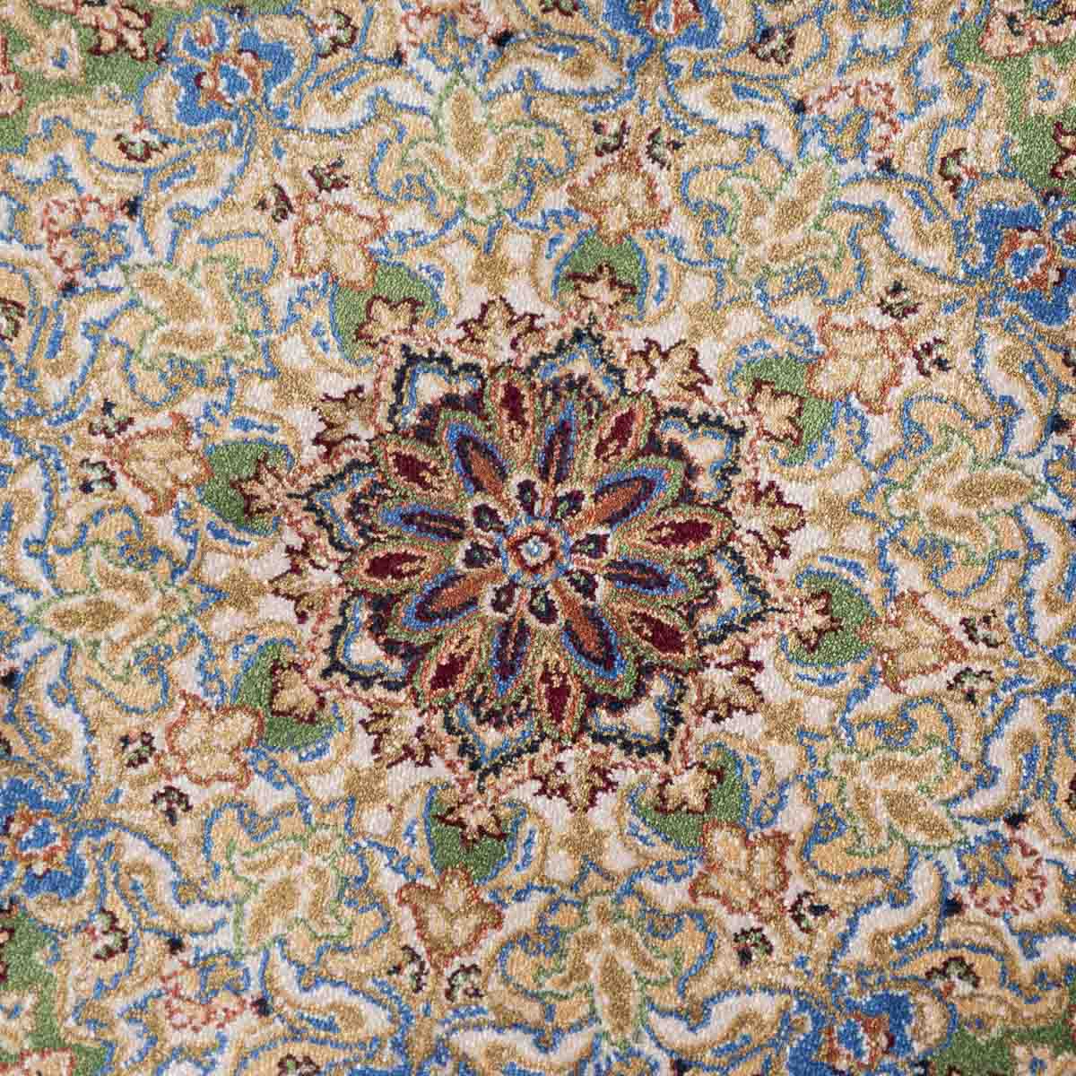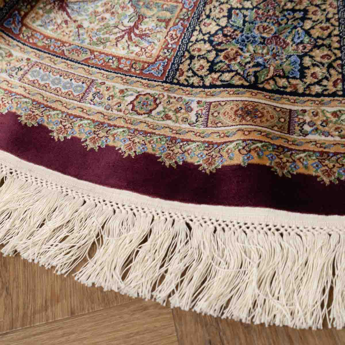 שטיח קום עגול ומרשים בסגנון קלאסי עשיר, המשלב צבעוניות מעודנת עם עבודת דוגמה מורכבת ומדויקת. פריט יוקרתי שמעניק לחלל נוכחות, עומק ותחושת פאר על-זמנית.