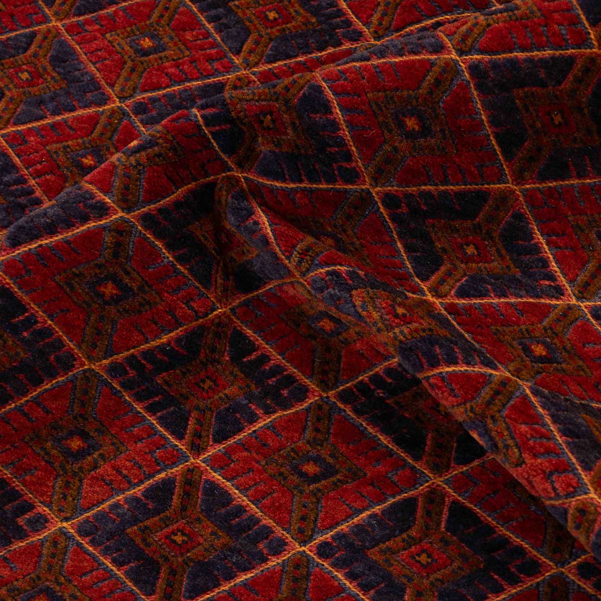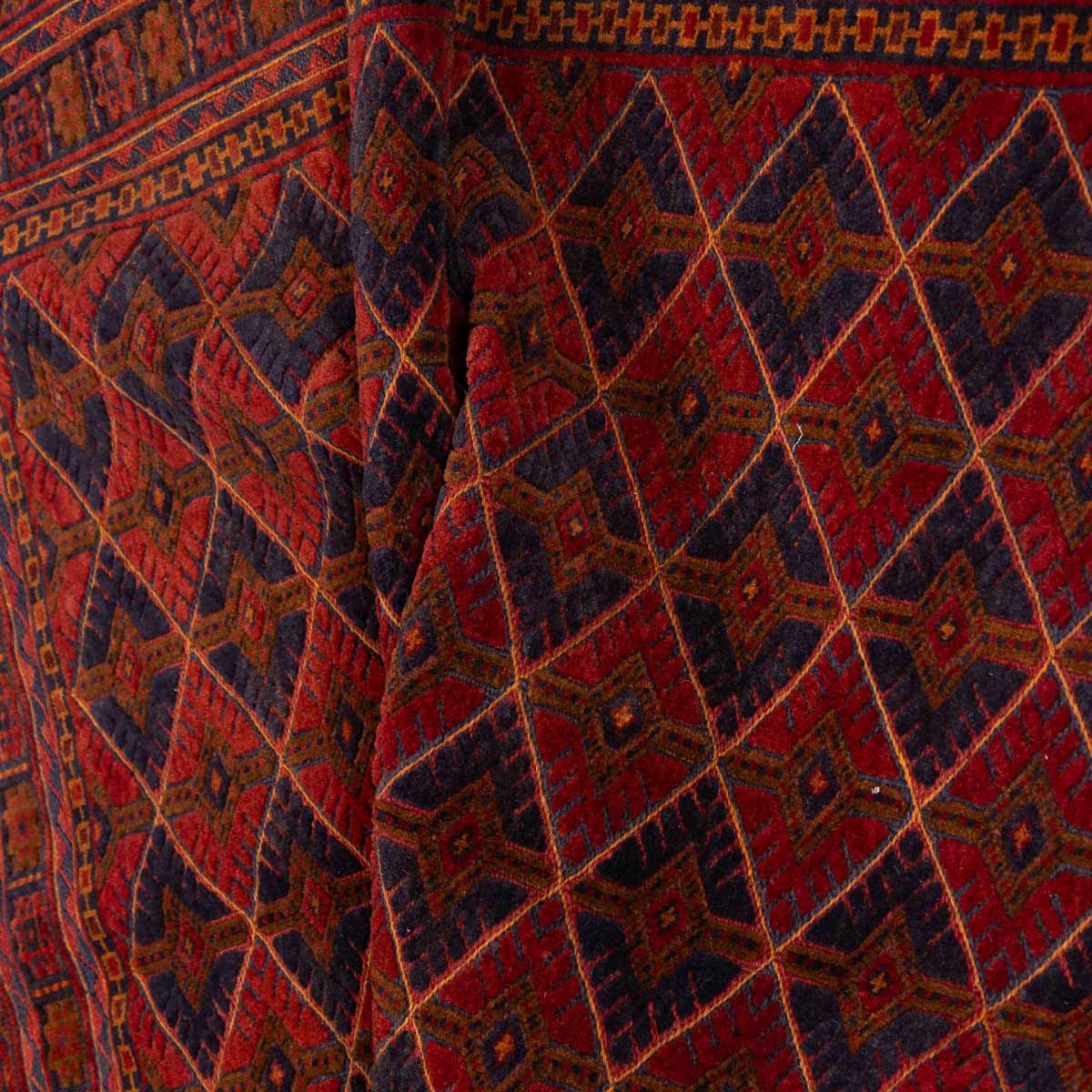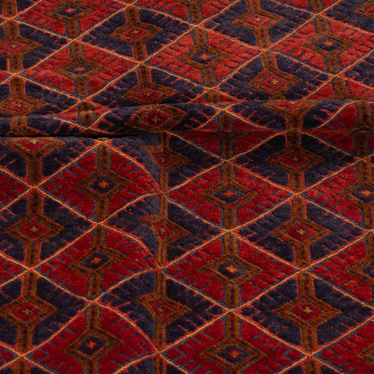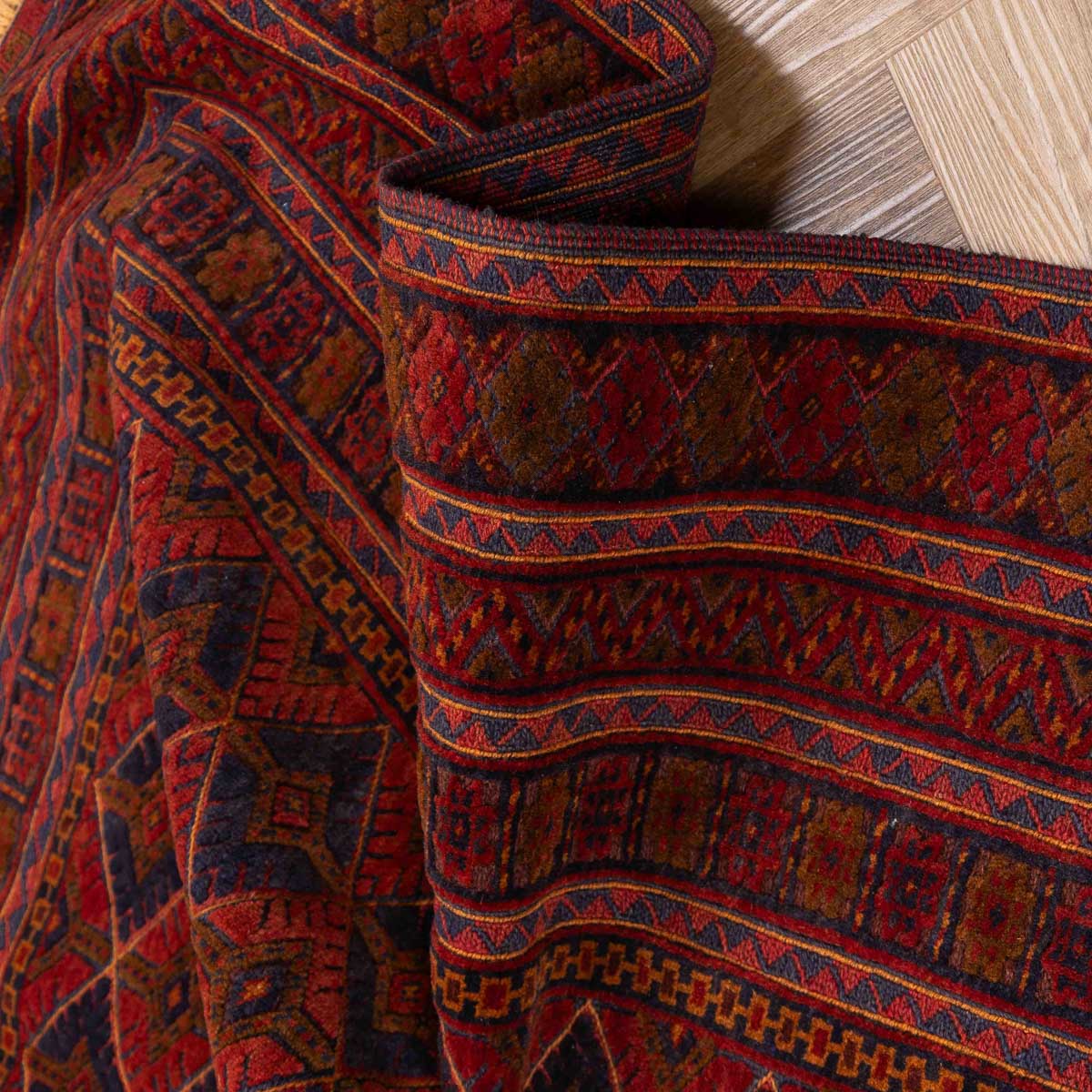שטיח אוזבקי ייחודי בעבודת יד בגווני אדום עמוק, וכחול – משלב עיצוב גיאומטרי מסורתי עם נוכחות עוצמתית ואלגנטית בחלל. דוגמת היהלומים הקלאסית מעניקה תחושת תנועה ועומק, והופכת אותו לבחירה מושלמת לחללים המעוצבים בקו אתני או אקלקטי.