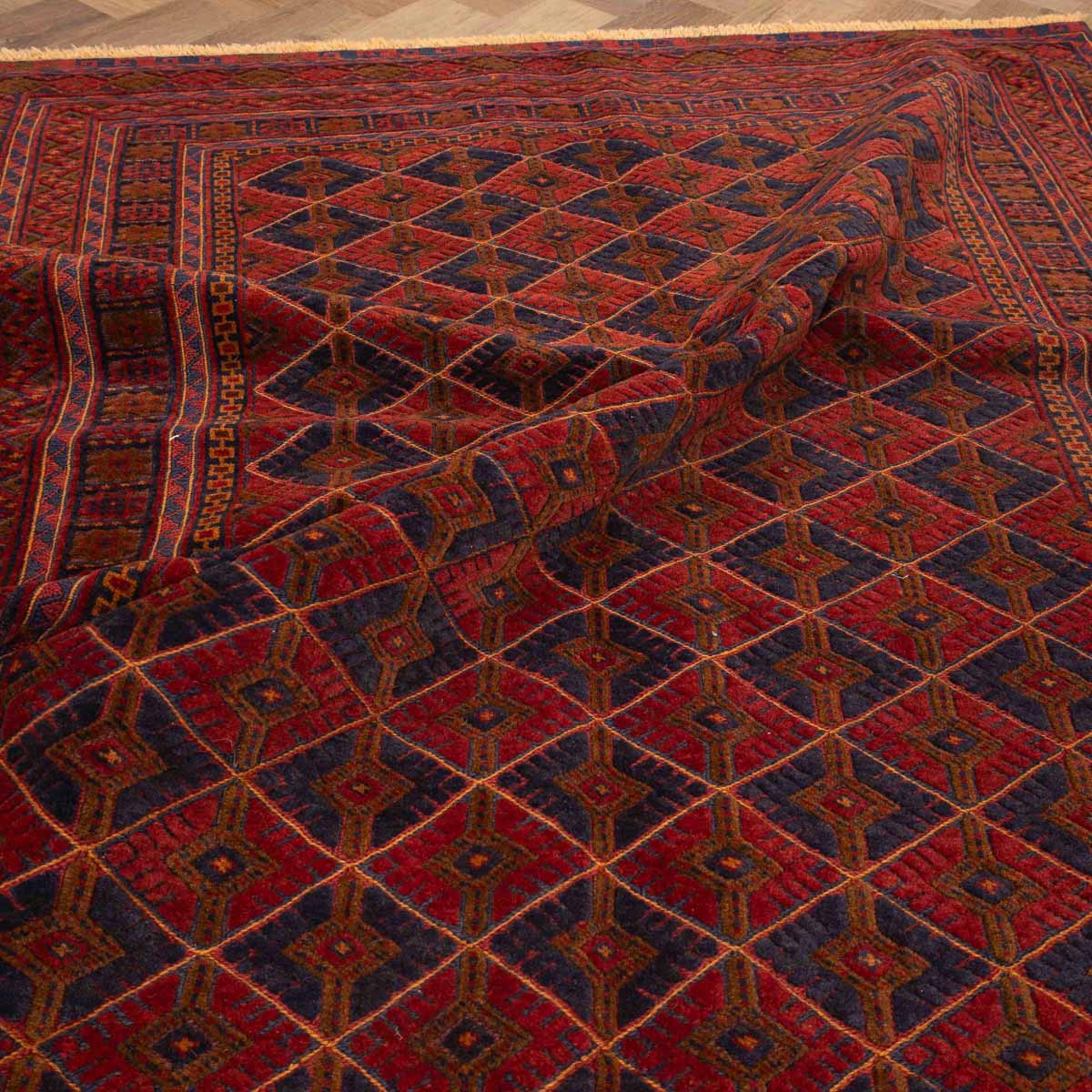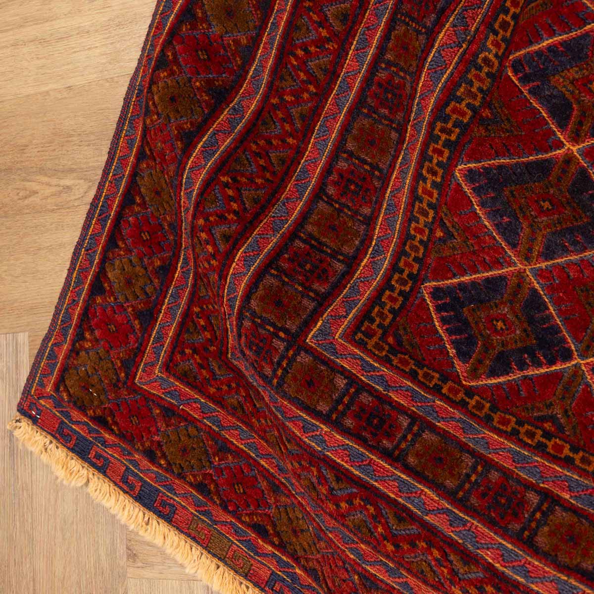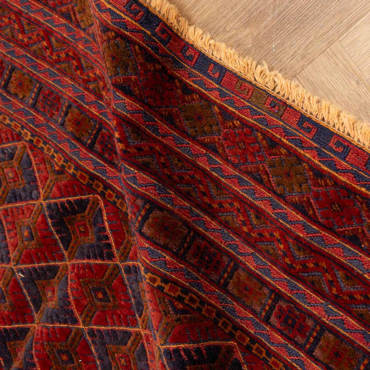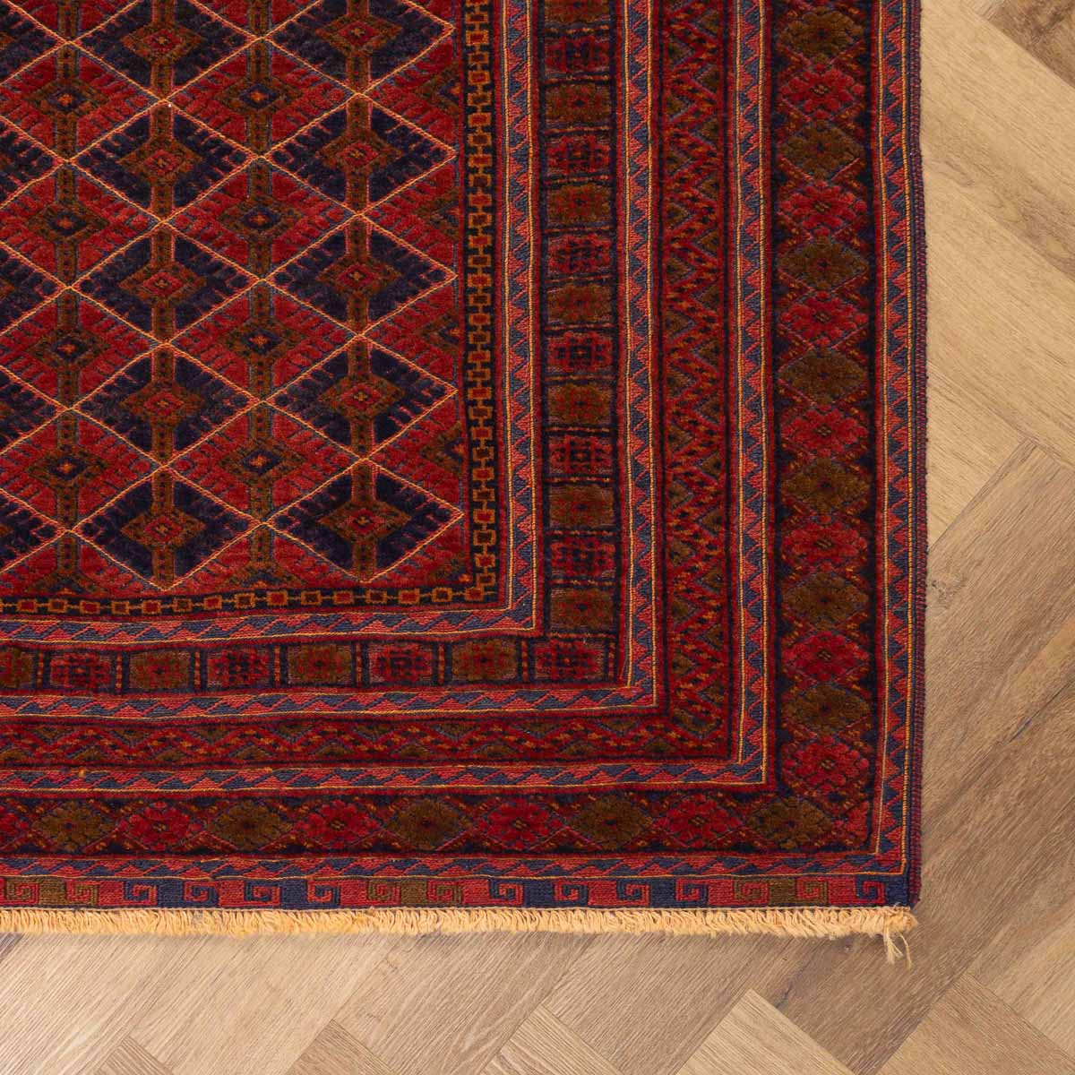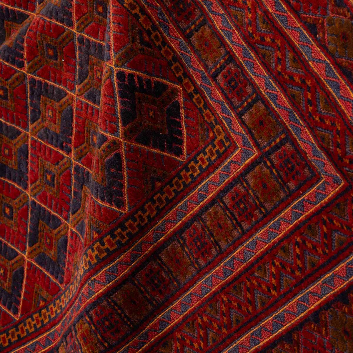 שטיח אוזבקי ייחודי בעבודת יד בגווני אדום עמוק, וכחול – משלב עיצוב גיאומטרי מסורתי עם נוכחות עוצמתית ואלגנטית בחלל. דוגמת היהלומים הקלאסית מעניקה תחושת תנועה ועומק, והופכת אותו לבחירה מושלמת לחללים המעוצבים בקו אתני או אקלקטי.