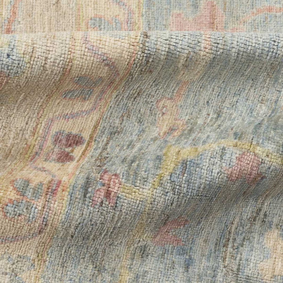 העיצוב מאופיין במוטיבים פרחוניים בסגנון עתיק על רקע תכלת בהיר, היוצרים שטיח שמעניק תחושת רכות, אלגנטיות וטבעיות לכל חלל.