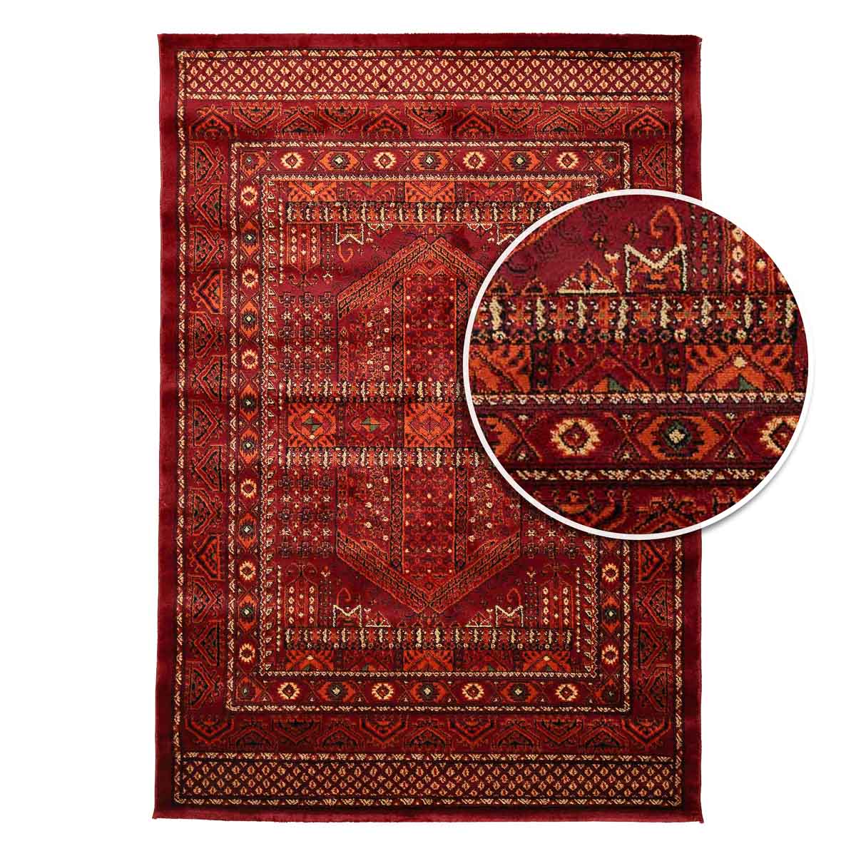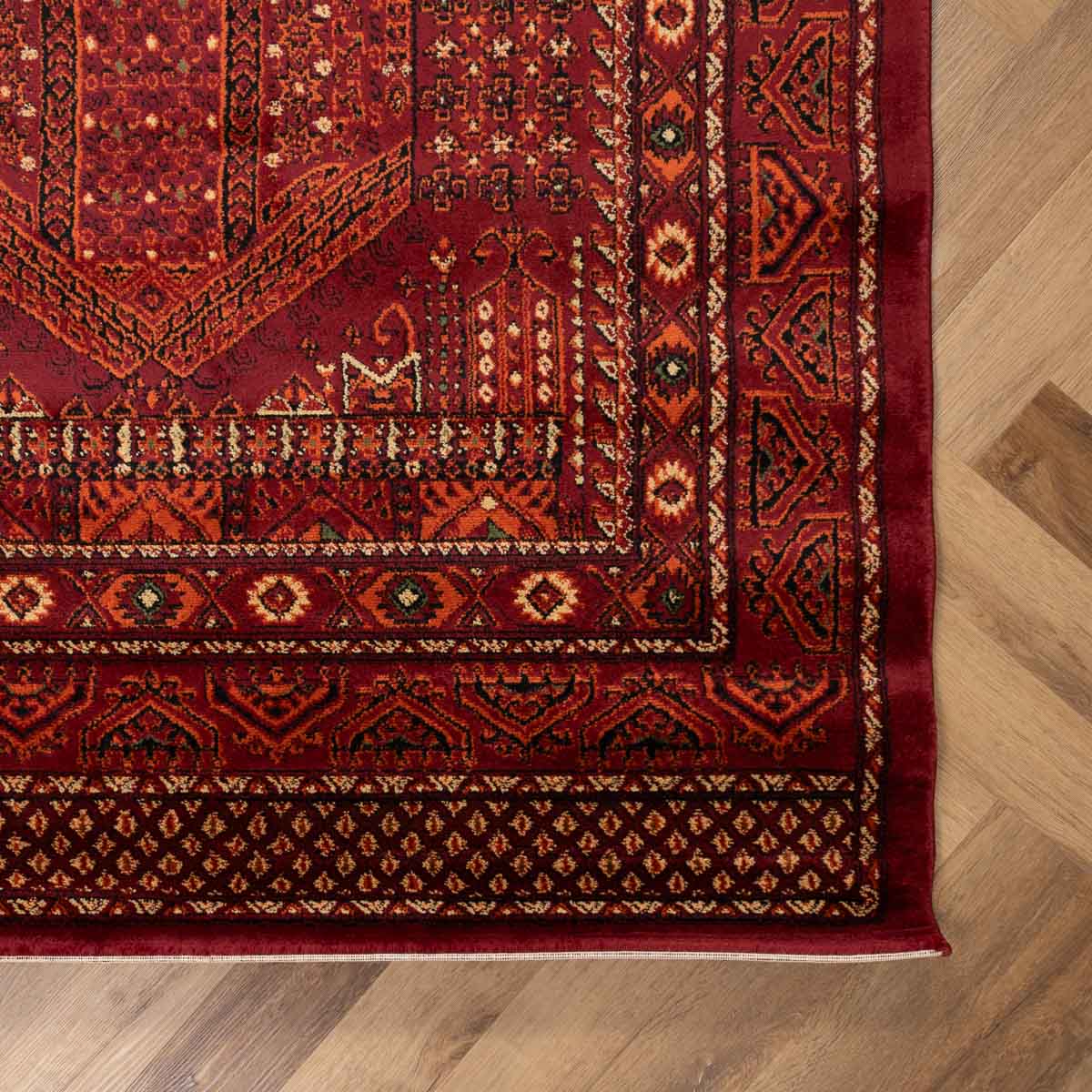 עיצוב אפגני קלאסי עם נוכחות עמוקה. שטיח אדום עשיר שמכניס לחלל חום, אופי ומראה מסורתי מלא עומק.