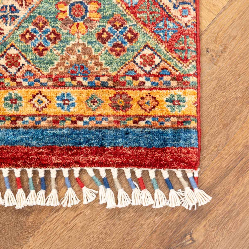 שטיח "אריאנה" בצבעוניות ססגונית המשלבת דוגמאות גיאומטריות מרהיבות בסגנון אתני ייחודי.