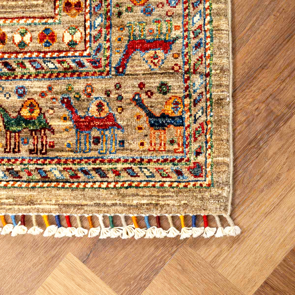 חמימות וסטייל ייחודי: שטיח אריאנה צבעוני מביא עמו נגיעה מסורתית בעבודת יד, המשלבת צבעוניות עשירה עם דוגמאות אתניות ייחודיות. השטיח מוסיף חמימות, אופי ותחושת יוקרה לכל חלל שבו הוא נמצא, בין אם מדובר בסלון, חדר שינה או משרד.