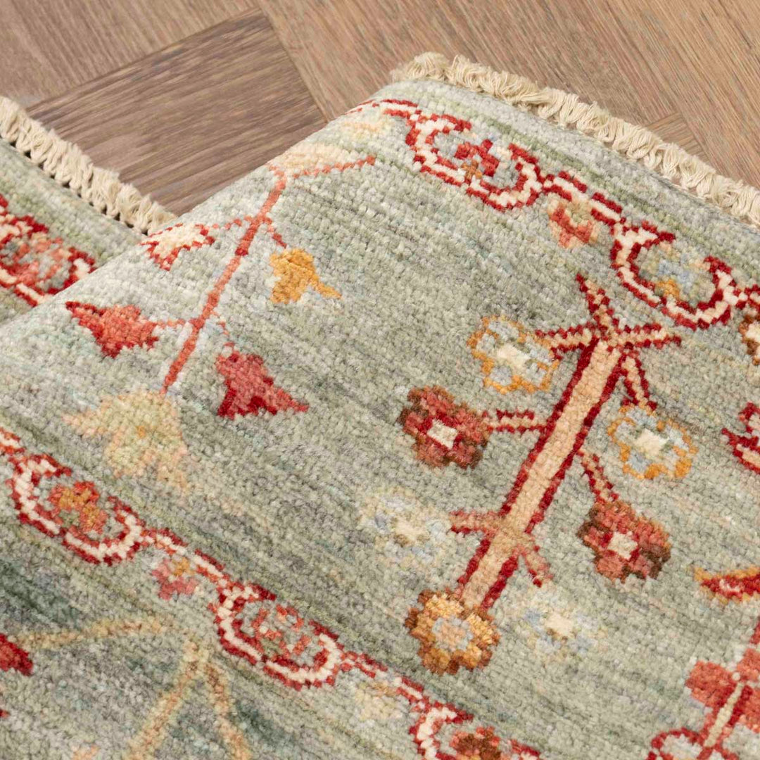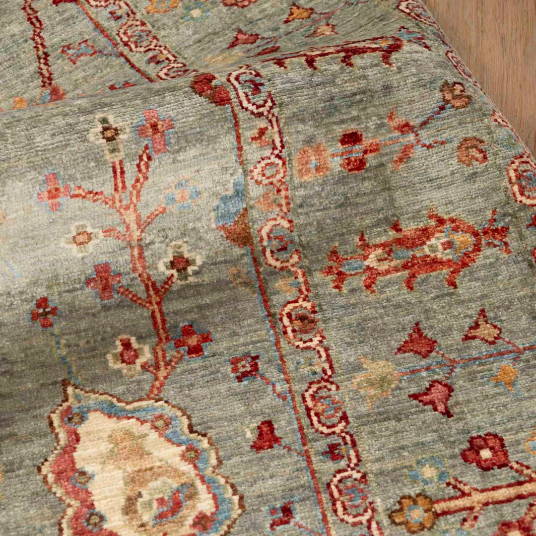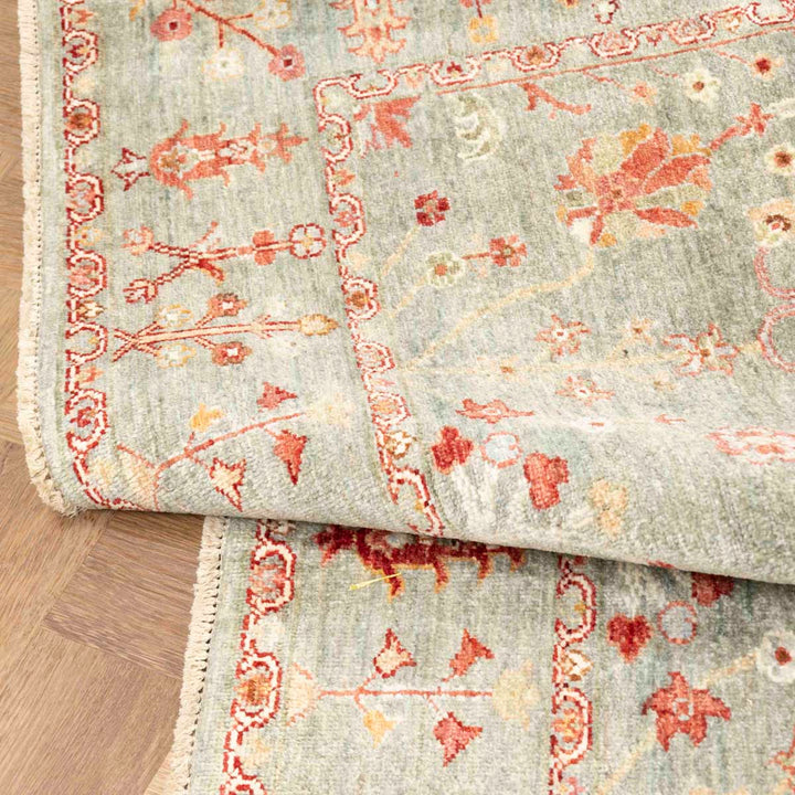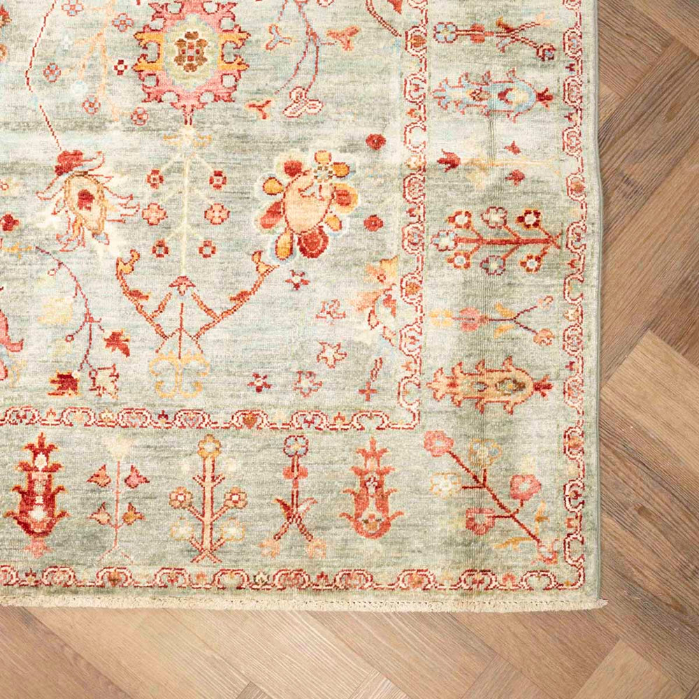 שטיח אריאנה בעבודת יד, בעל עיצוב פרחוני עדין ואצילי, שמשלב אומנות מסורתית עם מראה רך ואוורירי. שילוב הצבעים הפסטליים והפרטים העדינים יוצר שטיח מלא קסם שמכניס תחושת רוגע ואור לחלל.