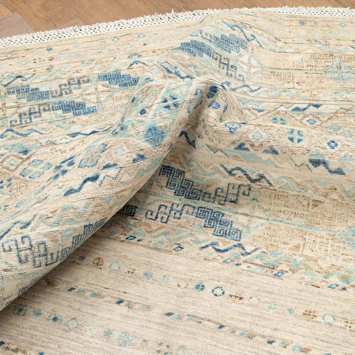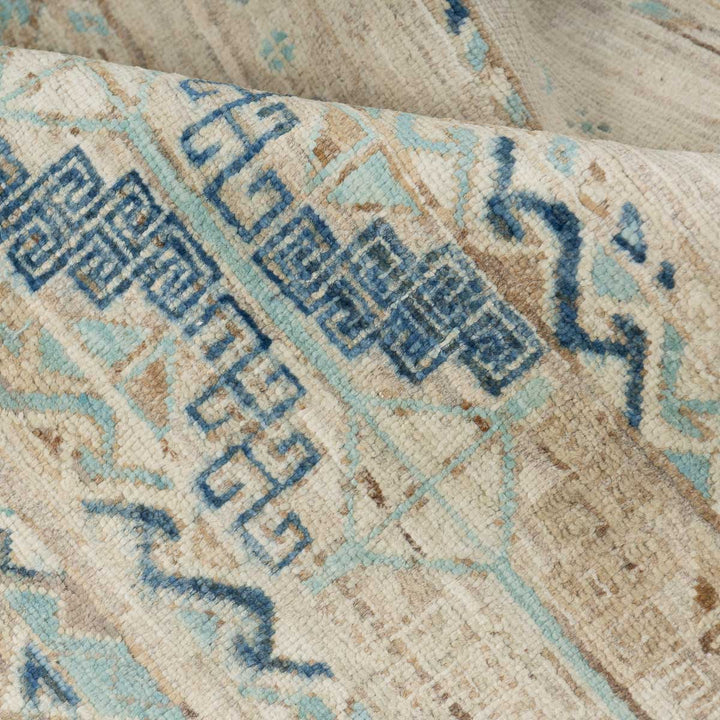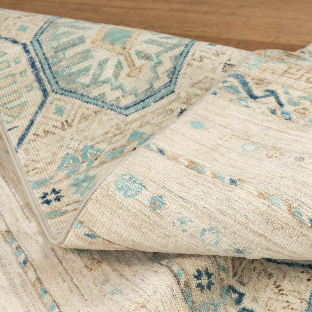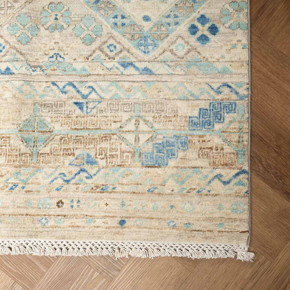 שטיח אריאנה זה מציע פרשנות מודרנית לרוח השבטים המסורתית, בגוונים בהירים ומרגיעים שמכניסים אור ורכות לכל חלל. הדוגמה הגאומטרית העדינה מתפרשת באלגנטיות על רקע בז’ טבעי עם נגיעות תכלת, כחול וצהוב מעושן.