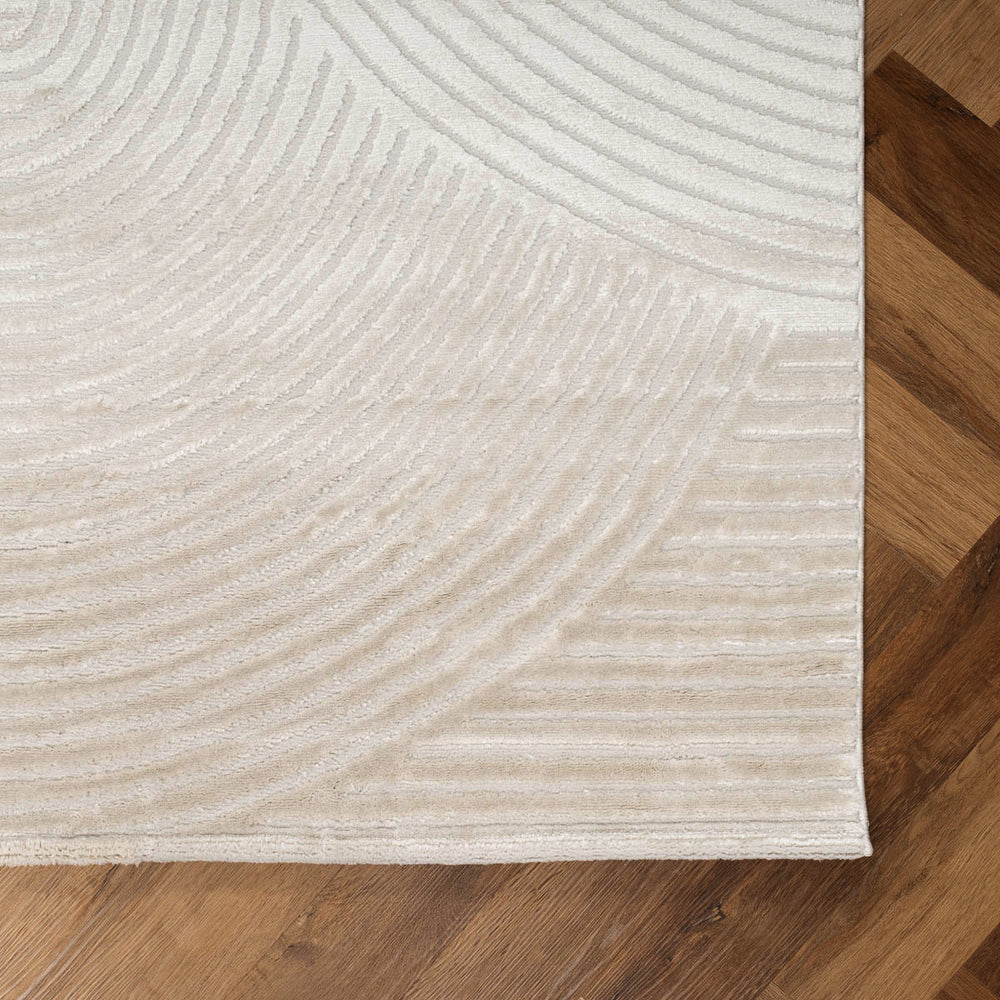 שטיח מודרני במראה על-זמני, עם דוגמת קשתות טקסטורליות שמעניקה תחושת תנועה, איזון ורכות עיצובית. הגוונים הקרמיים והבז’יים משתלבים בהרמוניה בכל חלל – מהסלון ועד חדר השינה.