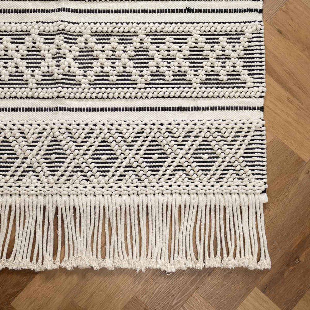 שטיח מודרני עם טוויסט בוהמייני – משלב טקסטורות עשירות, דוגמאות גיאומטריות ושילוב צבעים מונוכרומטי ליצירת מראה אלגנטי, נעים ומזמין.