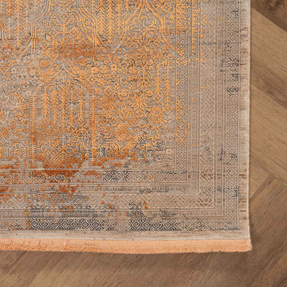שטיח מסדרת היסטוריה, בעיצוב עוצמתי המשלב בין גווני אפור רגועים לכתום עז ודומיננטי. הדוגמה המיוחדת מעניקה לשטיח אופי ייחודי של וינטג' מודרני. השטיח נארג בצפיפות גבוהה במיוחד של 2 מיליון קשר, ועבר תהליך עישון סטון וואש שמעניק לו מראה עתיק ותחושת יוקרה אמיתית.