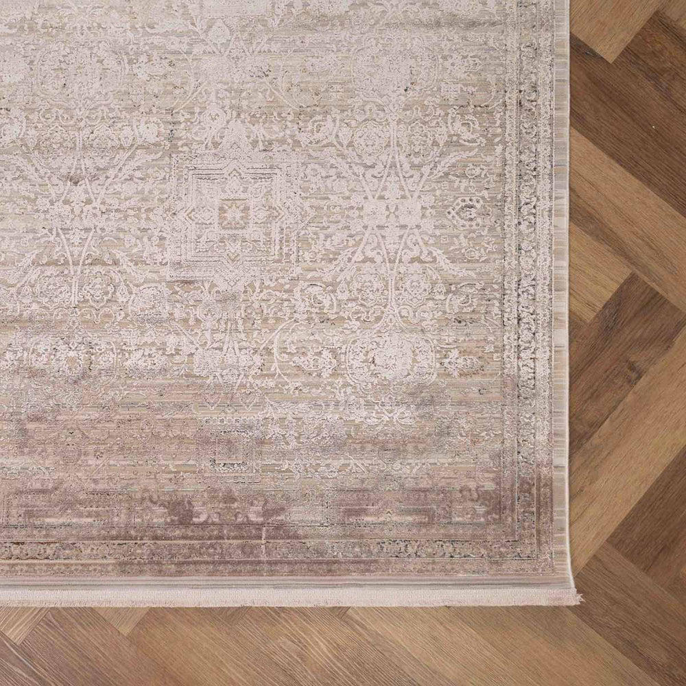 שטיח מסדרת היסטוריה, בעיצוב קלאסי־אלגנטי בגווני אפור ורדרד עדין המשתלבים בהרמוניה בכל חלל. העיטורים המעודנים מעניקים לשטיח תחושת יוקרה לצד חמימות רכה. השטיח נארג בצפיפות גבוהה במיוחד של 2 מיליון קשר, ועבר תהליך עישון סטון וואש, המעניק לו מראה וינטג' ייחודי ועומק טקסטורלי עשיר.