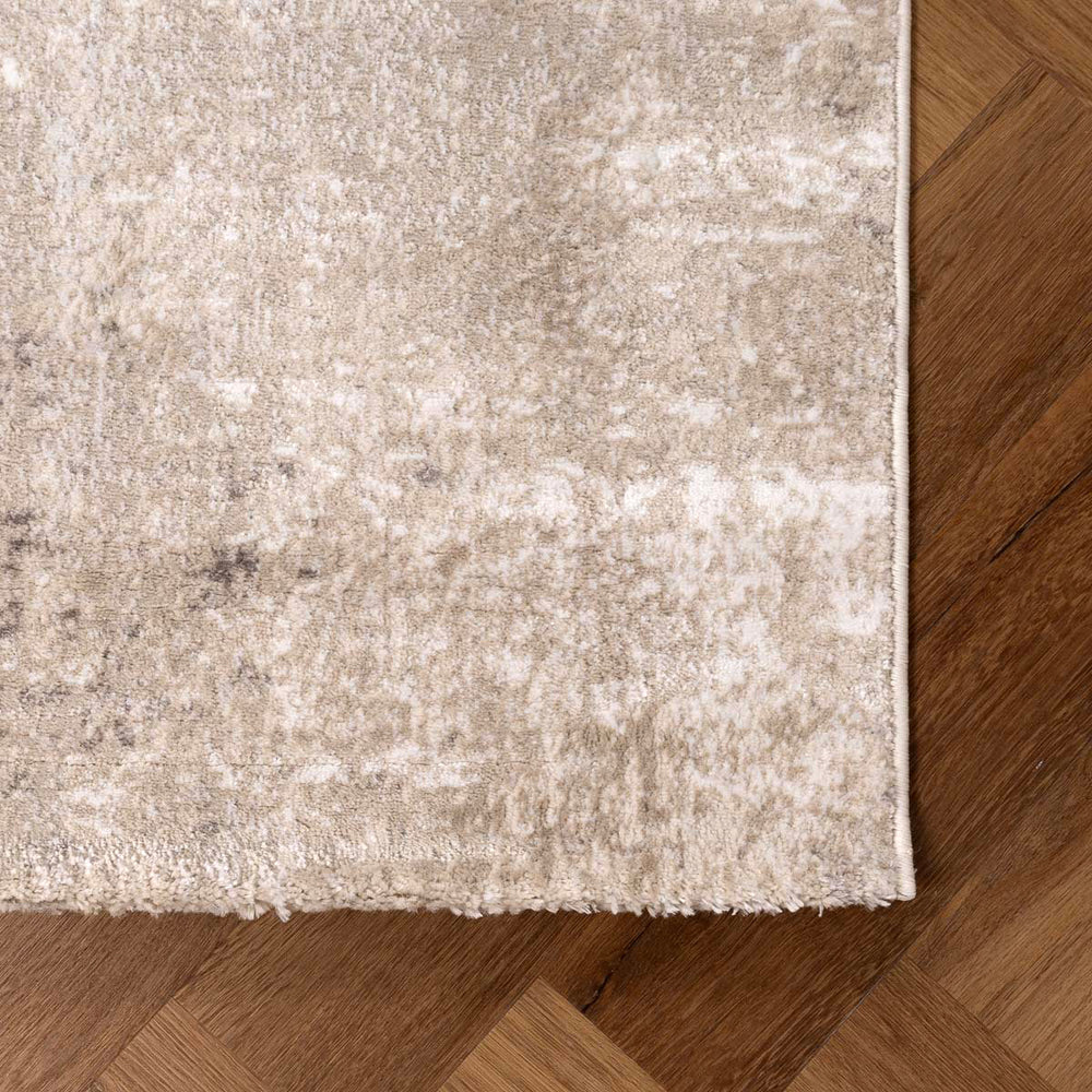 - עיצוב: דוגמה מופשטת ועדינה בגוון בז', שמאפשרת לשלב את השטיח במגוון חללים וסגנונות, ומתאימה במיוחד לעיצוב מודרני.