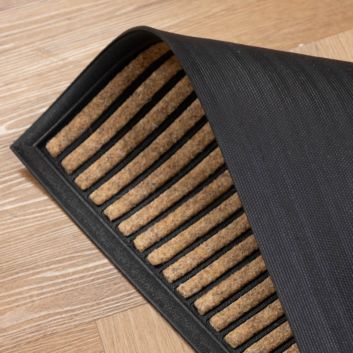 מרקם הקוקוס הגס מנקה ביעילות לכלוך ואבק מהנעליים, בעוד שהבסיס מגומי מספק אחיזה טובה ברצפה ושומר על השטיח יציב בשימוש יומיומי.
