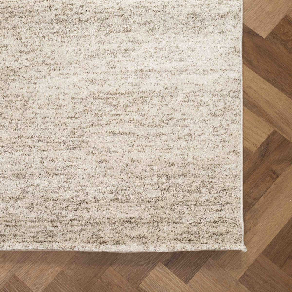 שטיח מינימליסטי בגוון בז' בהיר, שמכניס אור, ניקיון ורוגע לחלל.