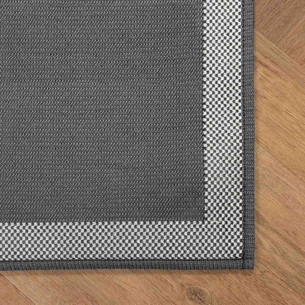 שטיח מסדרת דומו, מעוצב במיוחד עבור שימוש יומיומי במטבח. השטיח מגיע בגוון אפור כהה אלגנטי עם מסגרת בהירה היוצרת מראה מודרני ונקי. הוא פרקטי במיוחד, עמיד בפני לכלוך וקל לניקוי – פתרון אידיאלי לשימוש אינטנסיבי בחללים פעילים.