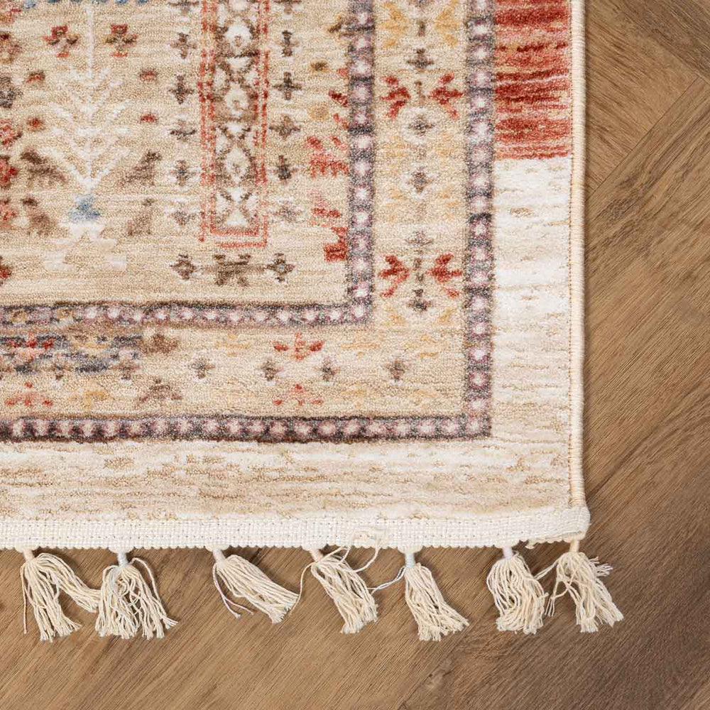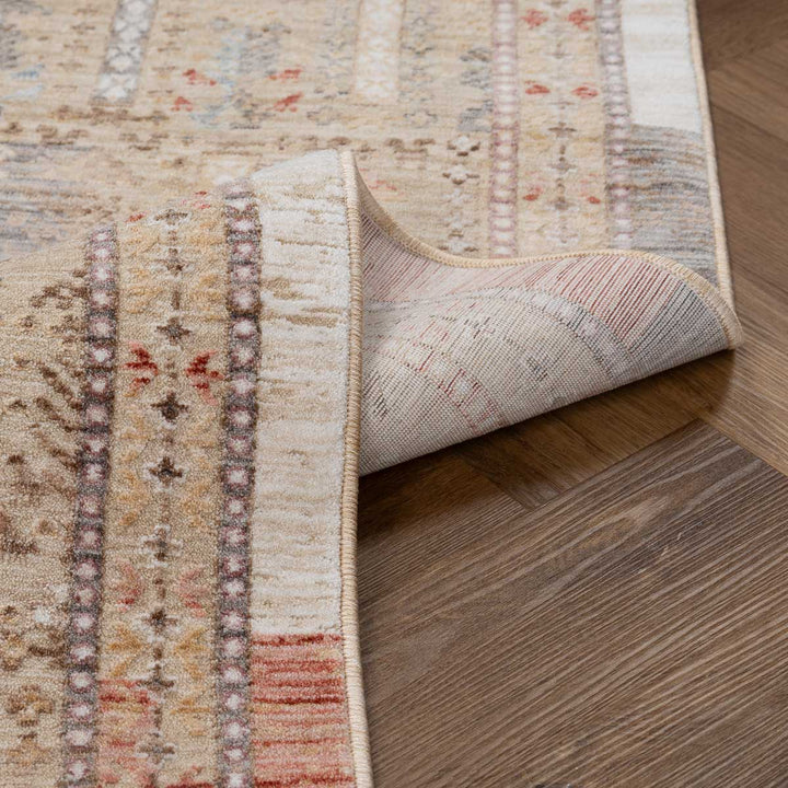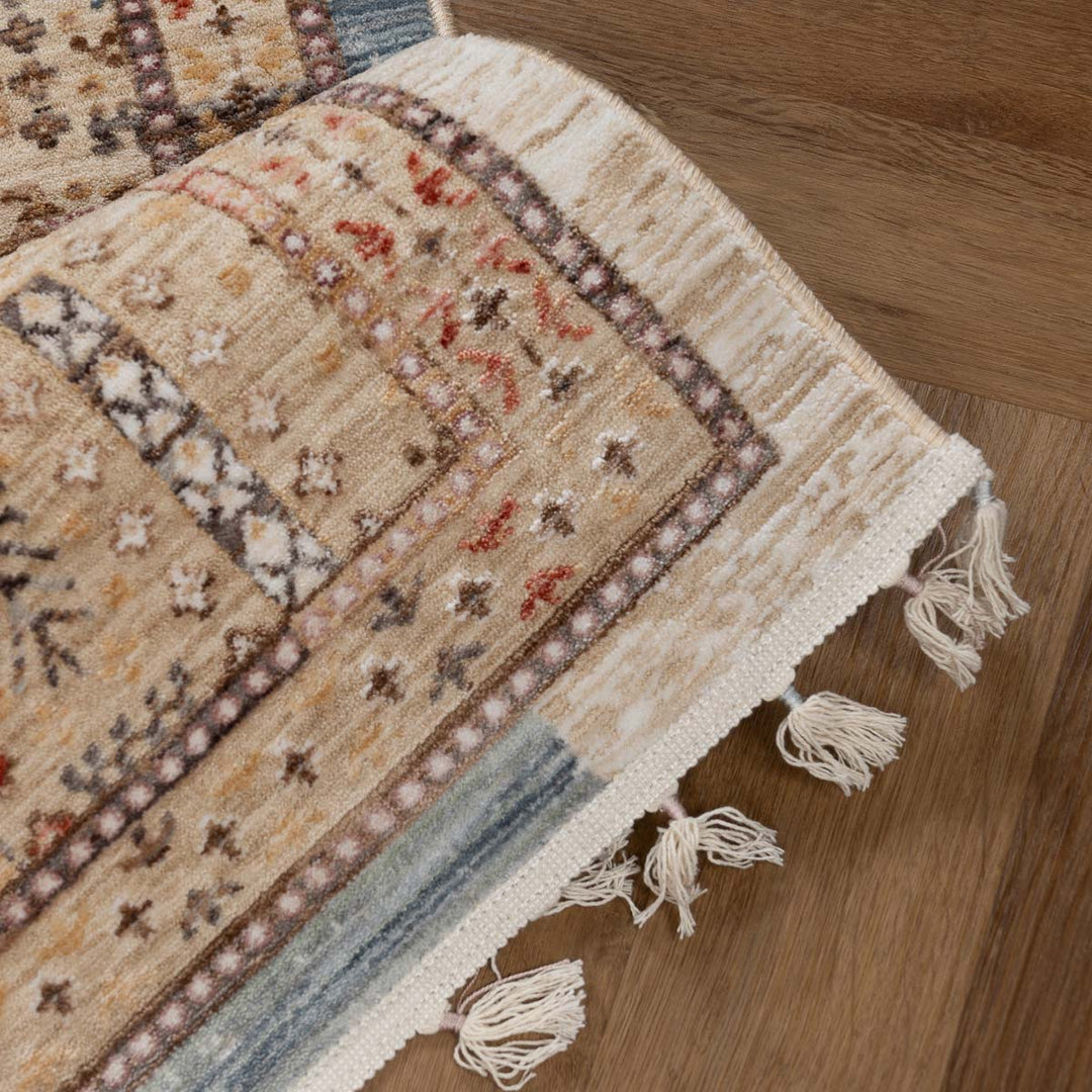 שטיח סהרה 01 שואב השראה מנופים מדבריים ומסגנונות נוודים מסורתיים, ומביא אל תוך הבית תחושת חום, נינוחות ונגיעה בוהמיינית. רקע בגווני בז' בהירים משולב בעיטורים גאומטריים עדינים בגווני אדמה, חמרה, אבן וענן, כשהטקסטורה הרכה מוסיפה עומק ונוכחות חמימה.