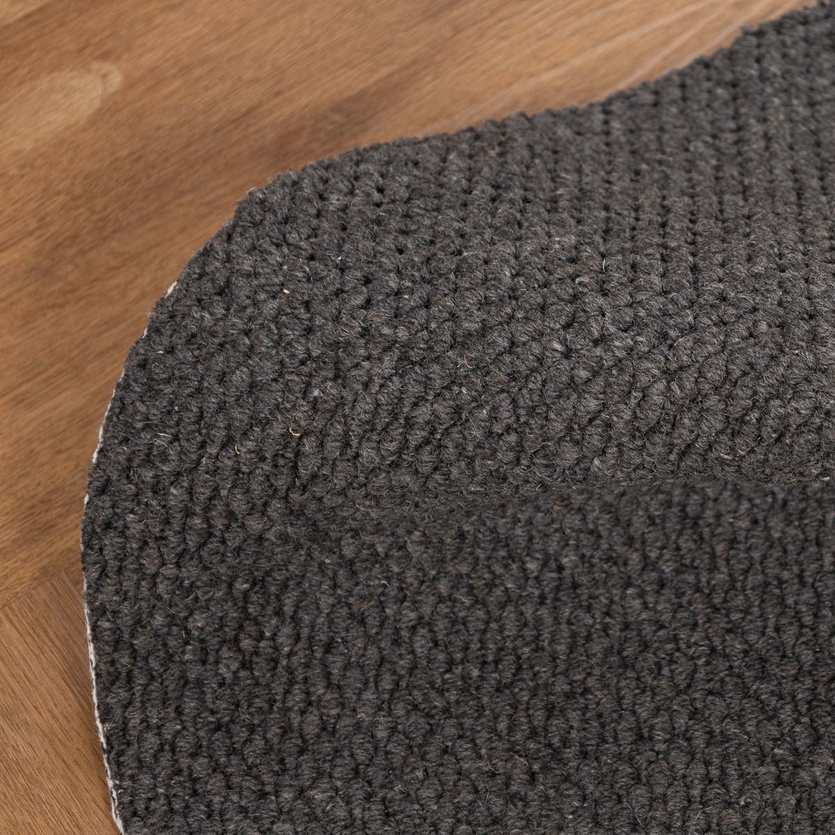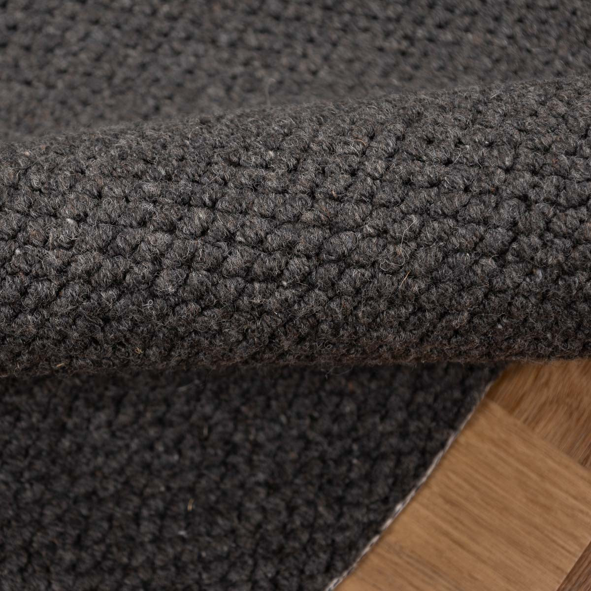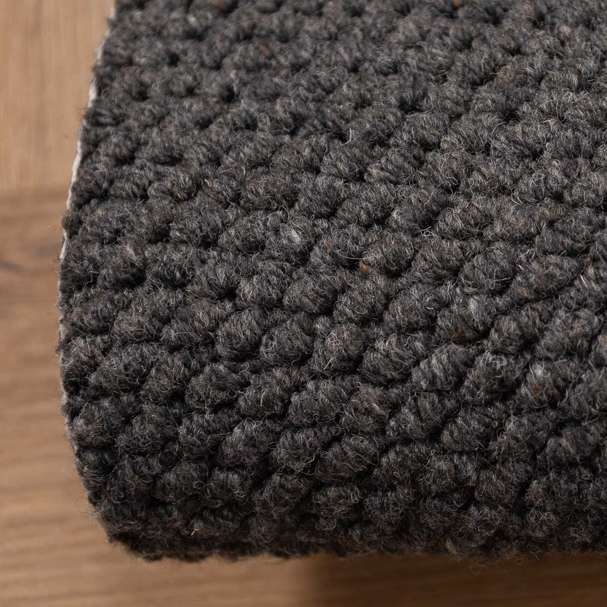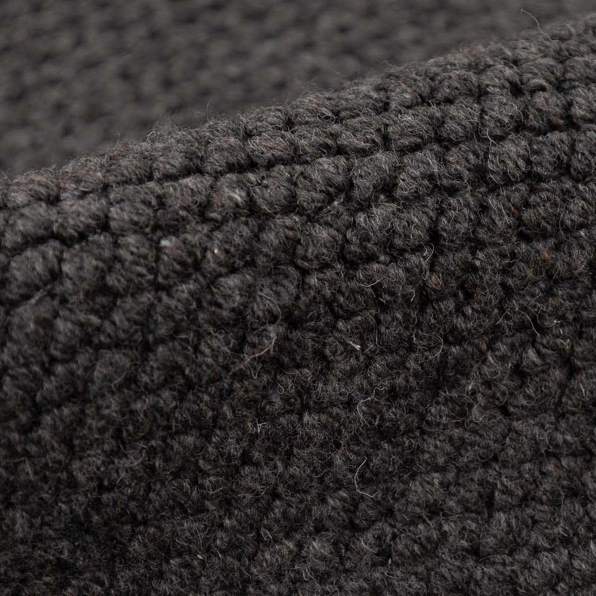 שטיח עגול בעבודת יד, עשוי 100% צמר טבעי בגוון אפור כהה עמוק. טקסטורה צפופה ונעימה למגע, עם מראה מודרני, נקי ועל זמני. הצורה העגולה מרככת את החלל ויוצרת איזון מושלם בין חומריות לעיצוב.