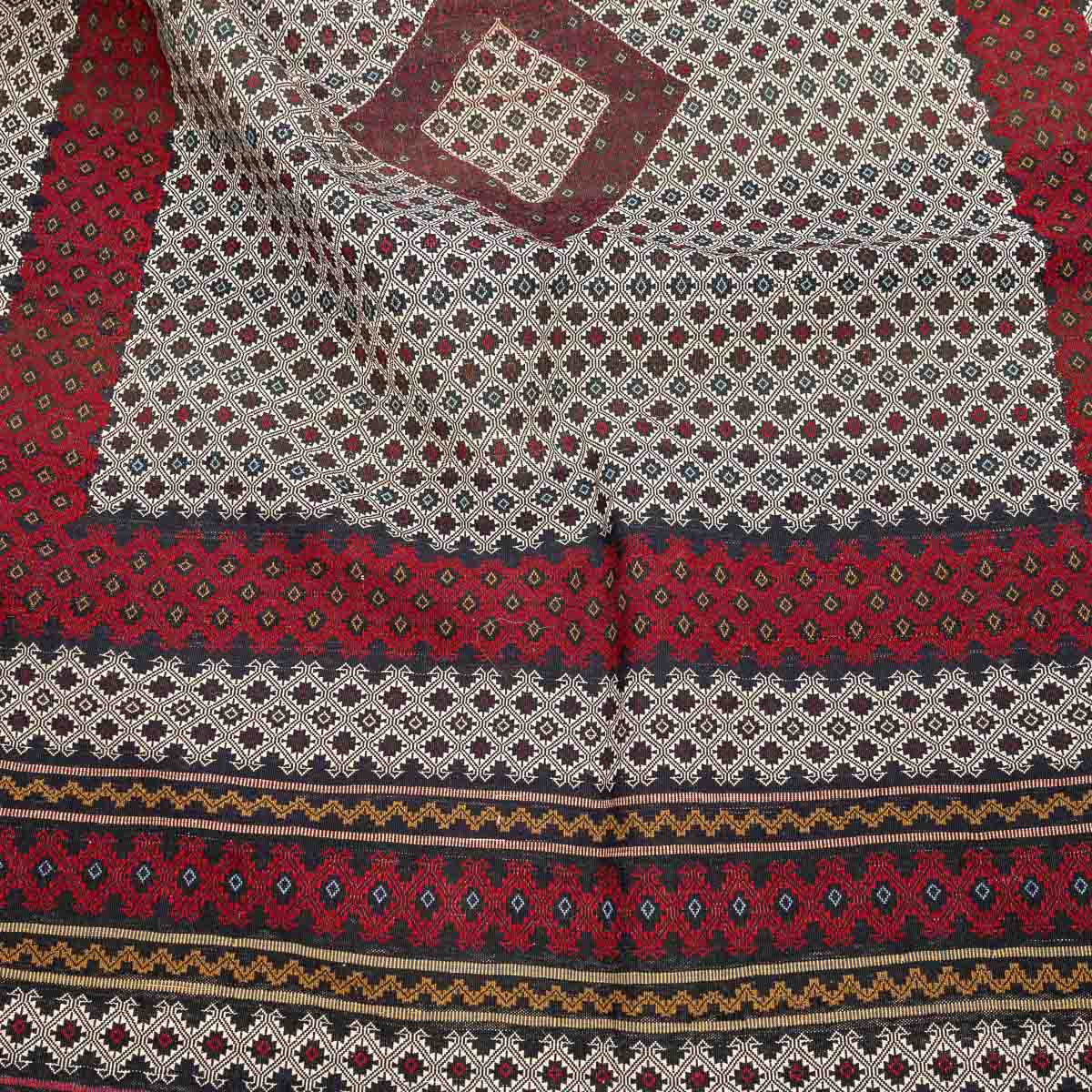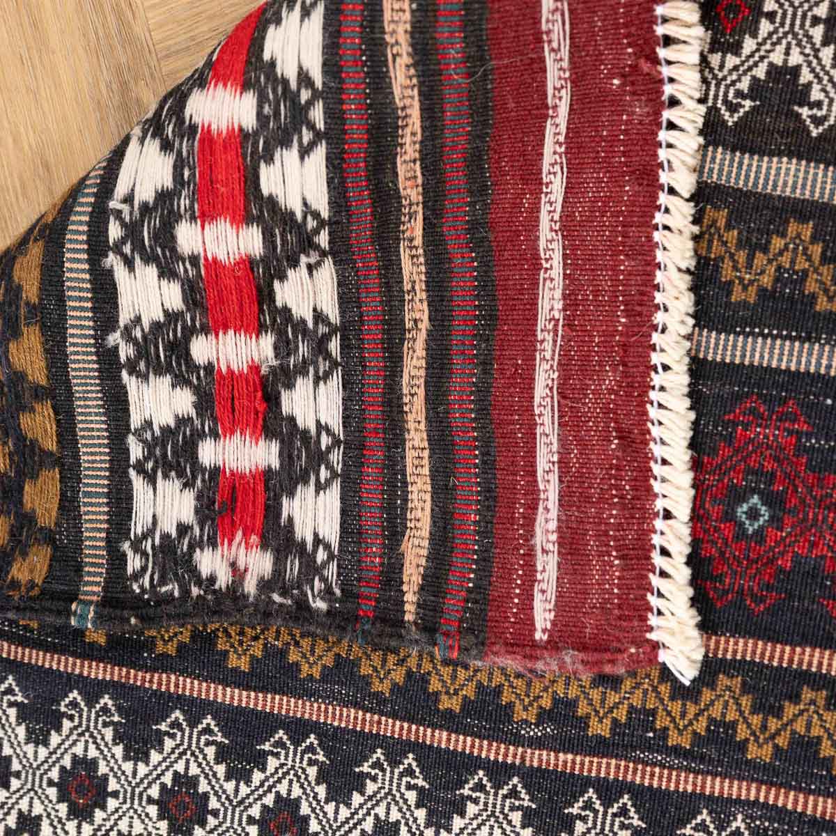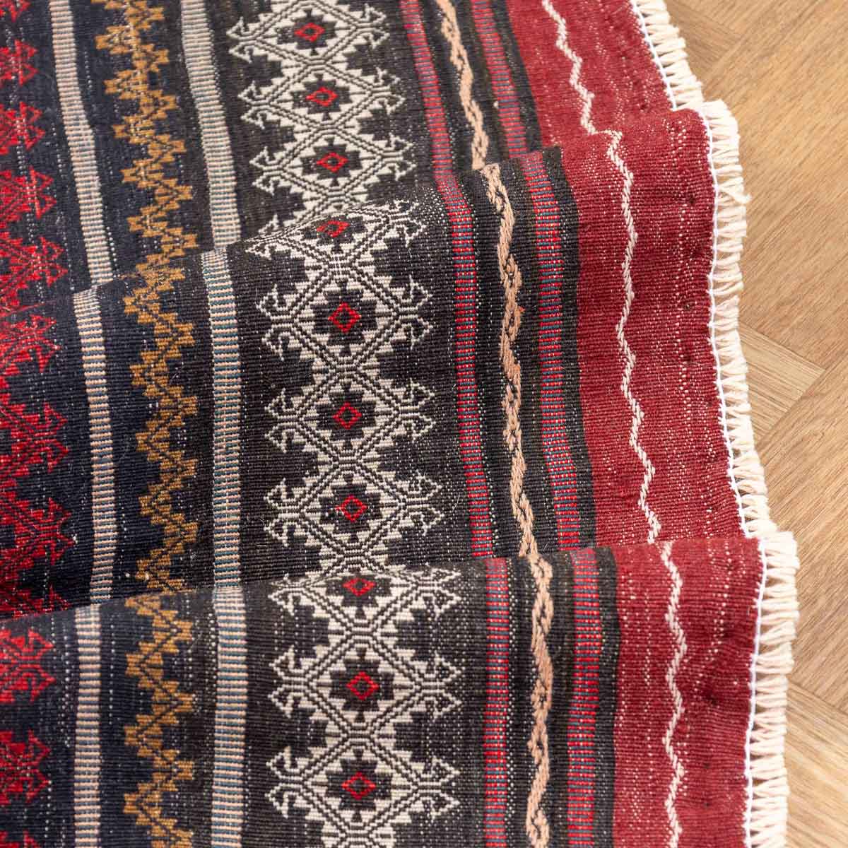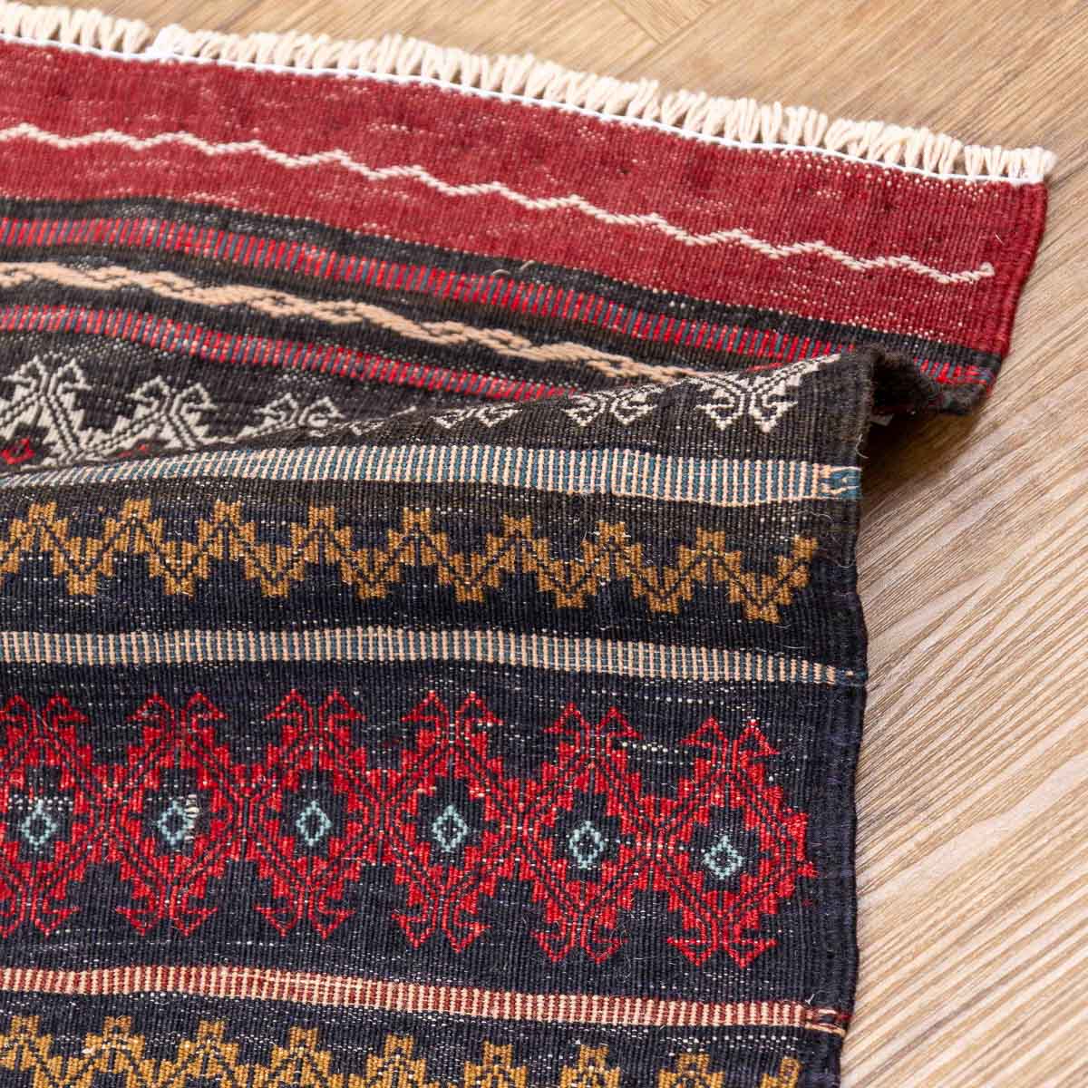 השטיח נארג בטכניקת סומק עשירה ומדויקת. זו מלאכת יד הדורשת זמן ומיומנות, ויוצרת משטח שטוח, עמיד ומלא פרטים.