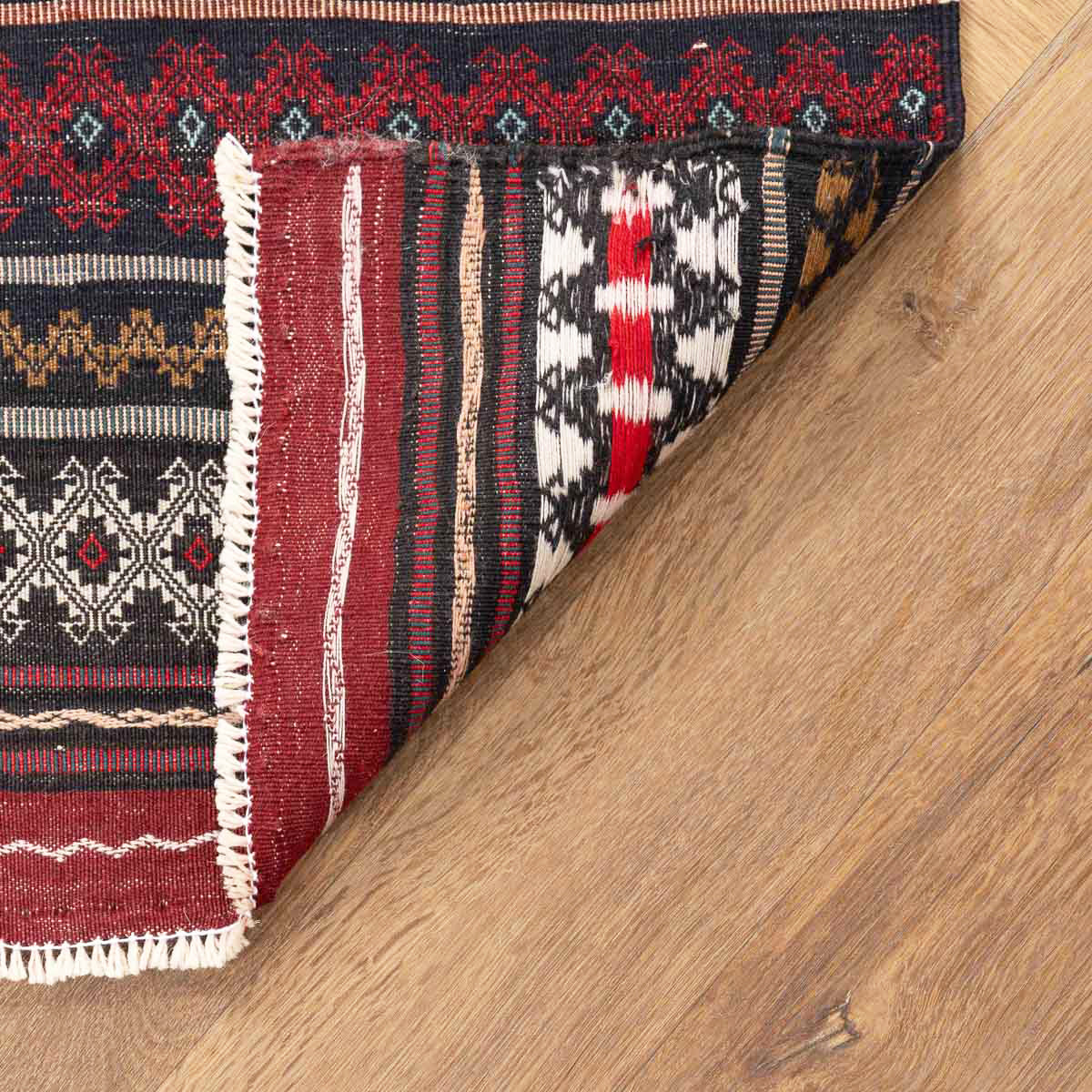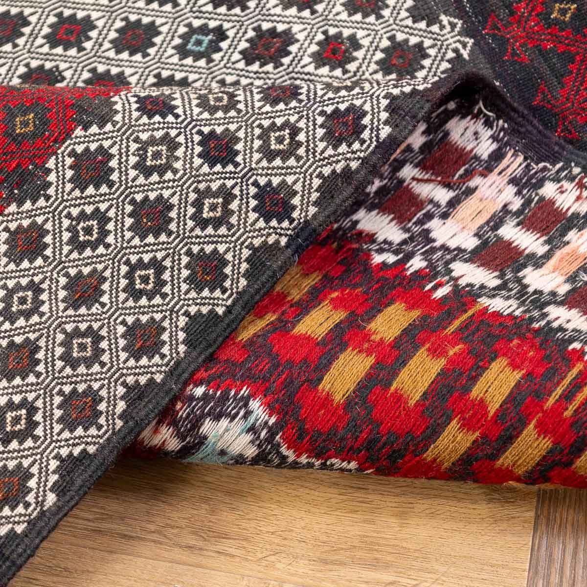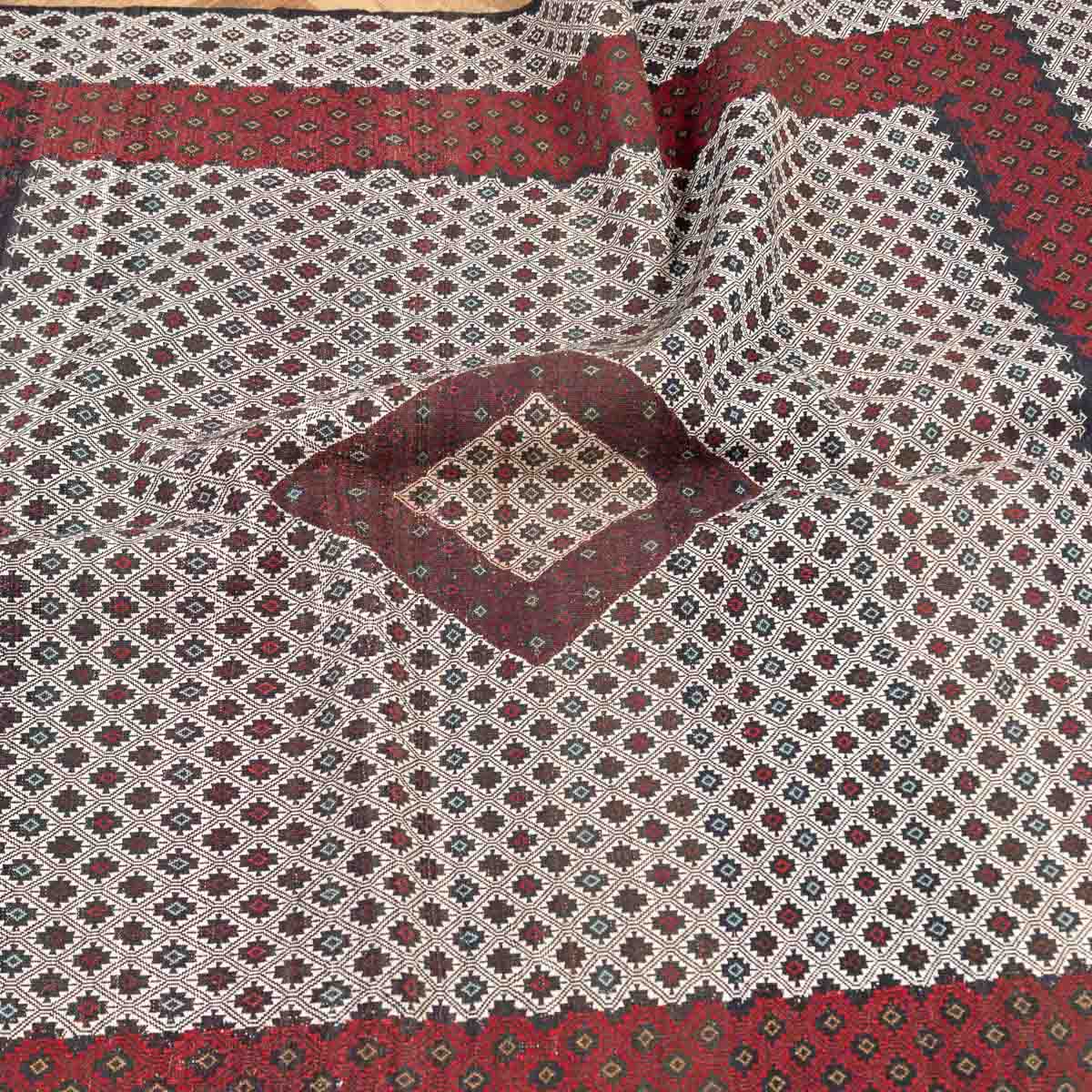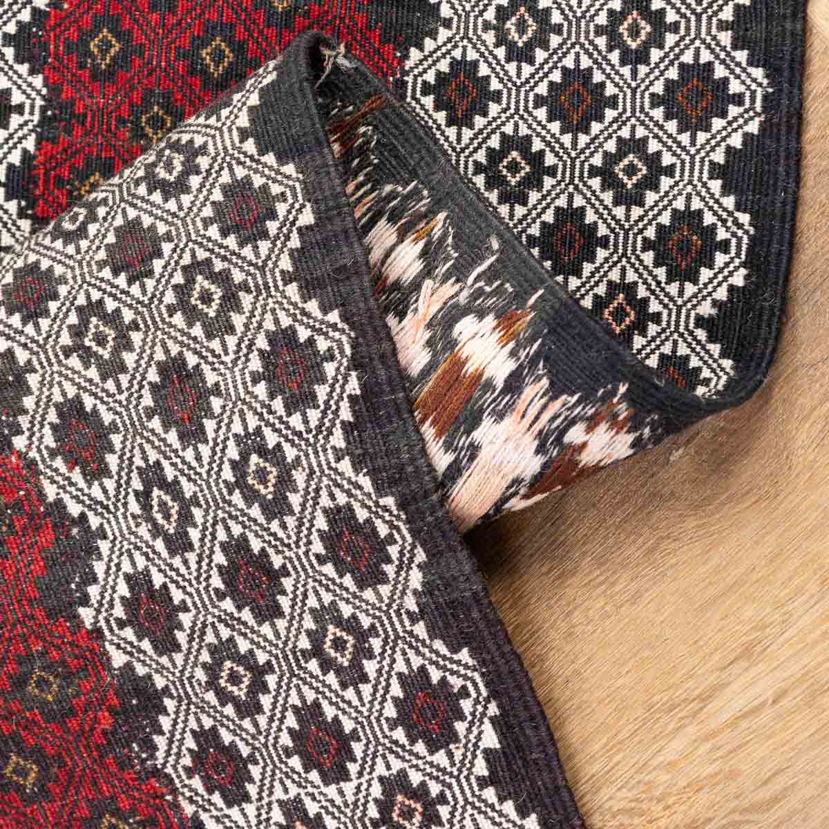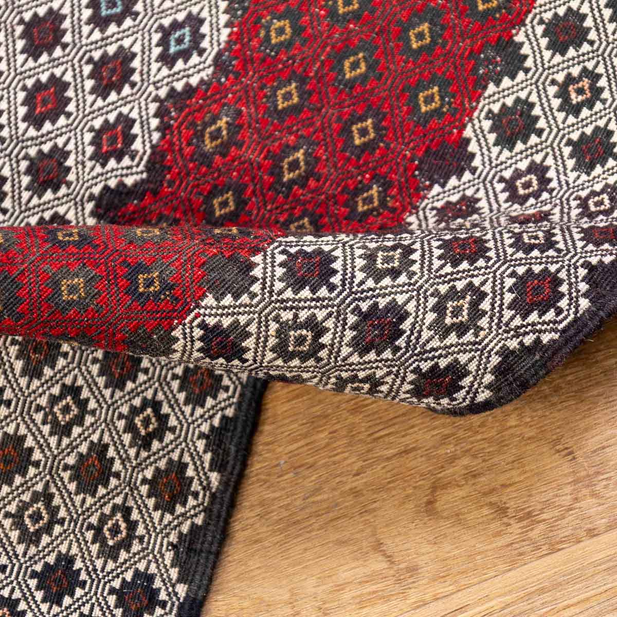 השטיח נארג בטכניקת סומק עשירה ומדויקת. זו מלאכת יד הדורשת זמן ומיומנות, ויוצרת משטח שטוח, עמיד ומלא פרטים.