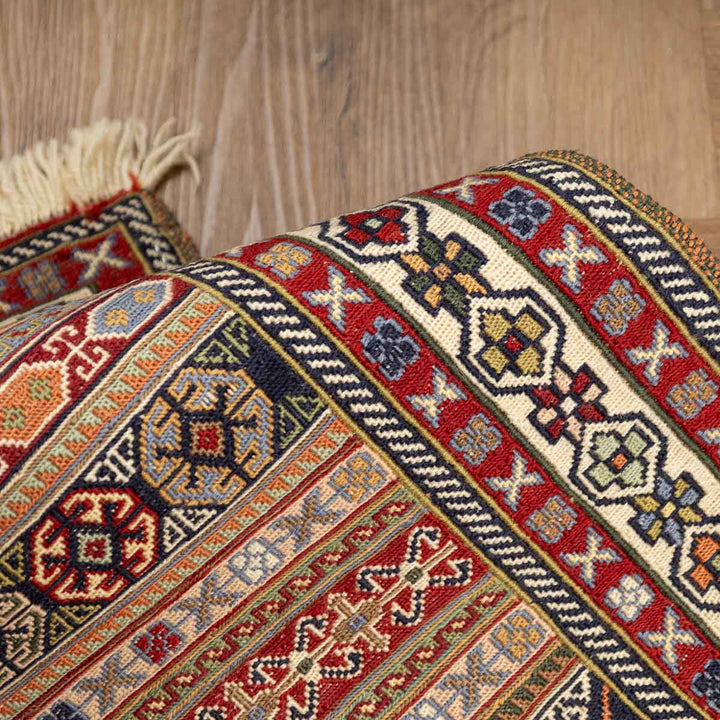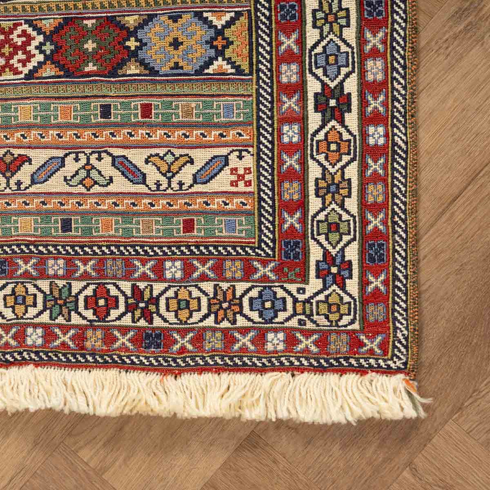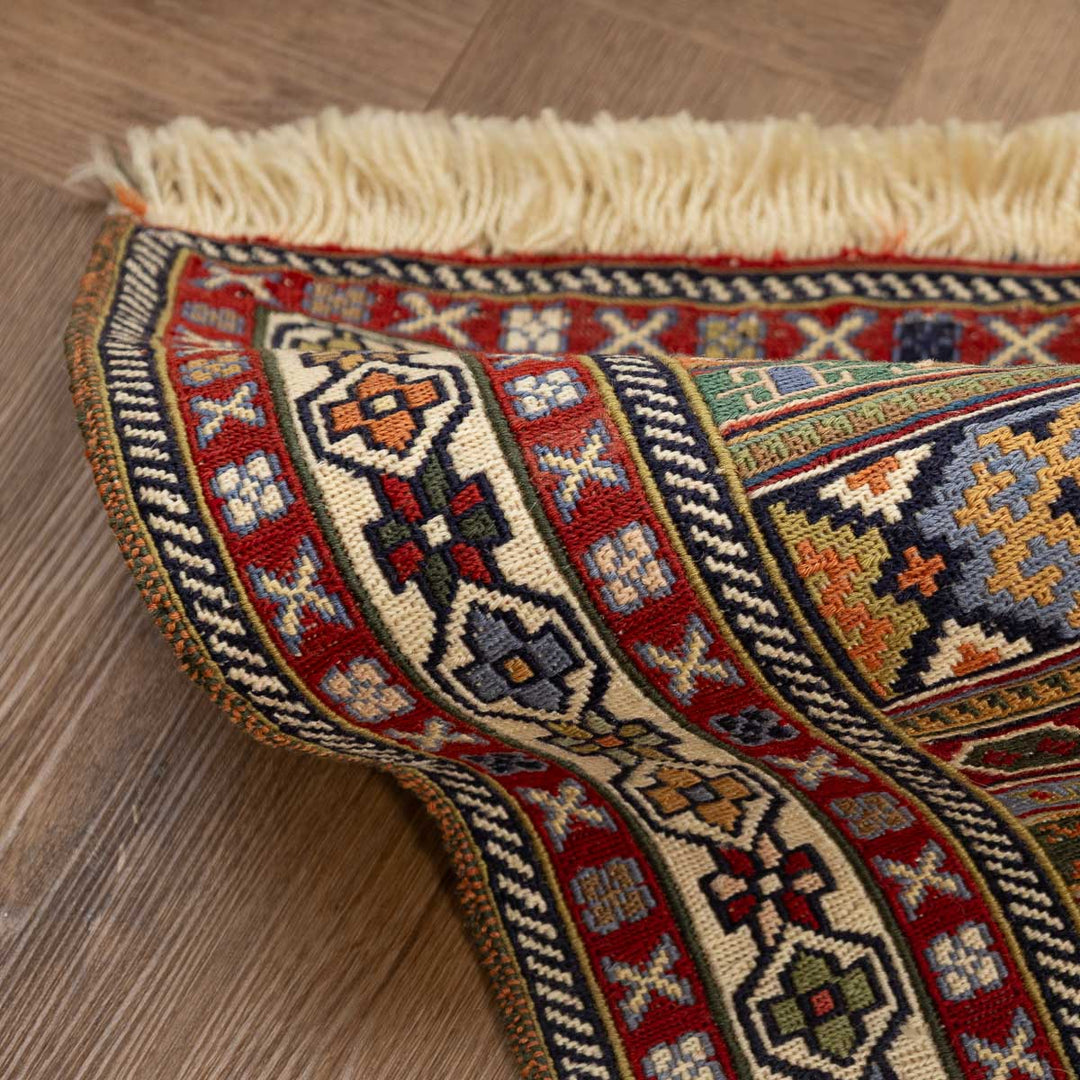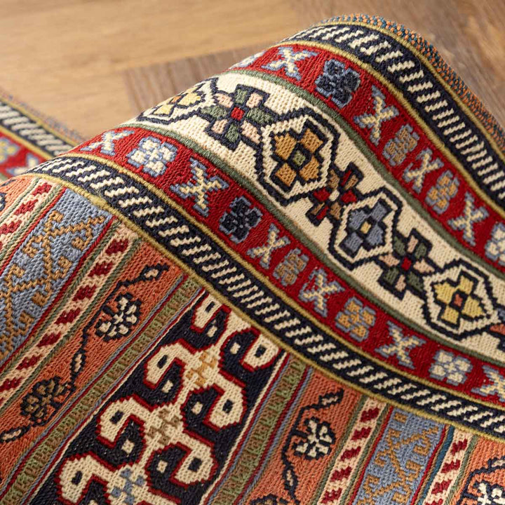 עבודת יד מסורתית: נארג בעבודת יד בטכניקת סומק שטוחה, הידועה בעמידותה ובטקסטורה המובחנת.