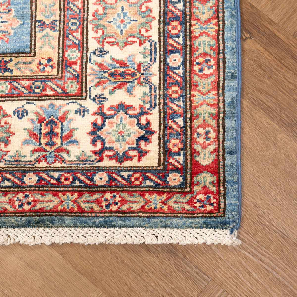 שטיח סופר קזאק כחול הוא יצירת אמנות בעבודת יד, המשלבת מסורת עתיקת יומין עם עיצוב מודרני ויוקרתי. עם גווני כחול עשירים ודוגמאות גיאומטריות ייחודיות, השטיח משדר אווירה חמה ומזמינה לכל חלל שבו הוא מונח.