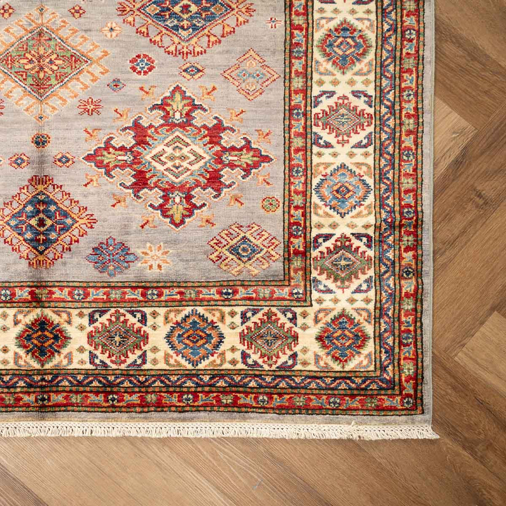 איכות סופר קזאק: נארג בעבודת יד בצפיפות גבוהה, עם גימור הדוק, תחושת יציבות, וברק טבעי של הצמר.
