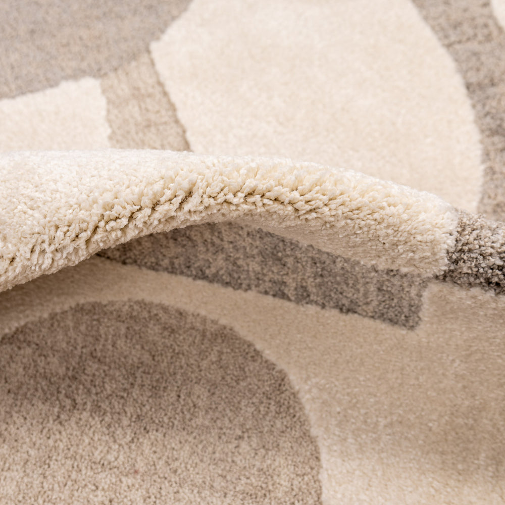 שטיח פנדורה 05 בגווני קרם ובז' משלב עיצוב גיאומטרי עכשווי עם מרקם מפנק, שיוצר תחושת חמימות ואלגנטיות ייחודית. הצורה העגולה מעניקה זרימה רכה למרחב ומתאימה במיוחד לפינות ישיבה, מתחת לשולחנות עגולים או כתוספת מעוצבת לפינות בבית.