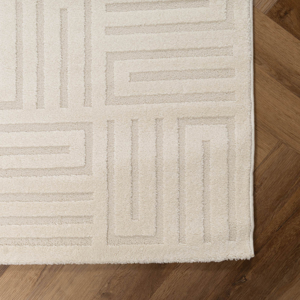 שטיח פנדורה 10 בגוון קרם משלב עיצוב גיאומטרי מינימליסטי עם מרקם עשיר, המעניק תחושת חמימות לצד סדר עיצובי. הגוון הקרמי הבהיר משתלב באלגנטיות כמעט בכל סגנון עיצובי – מחללים מודרניים ועד קלאסיים – ומאיר את החדר ברוך טבעי.