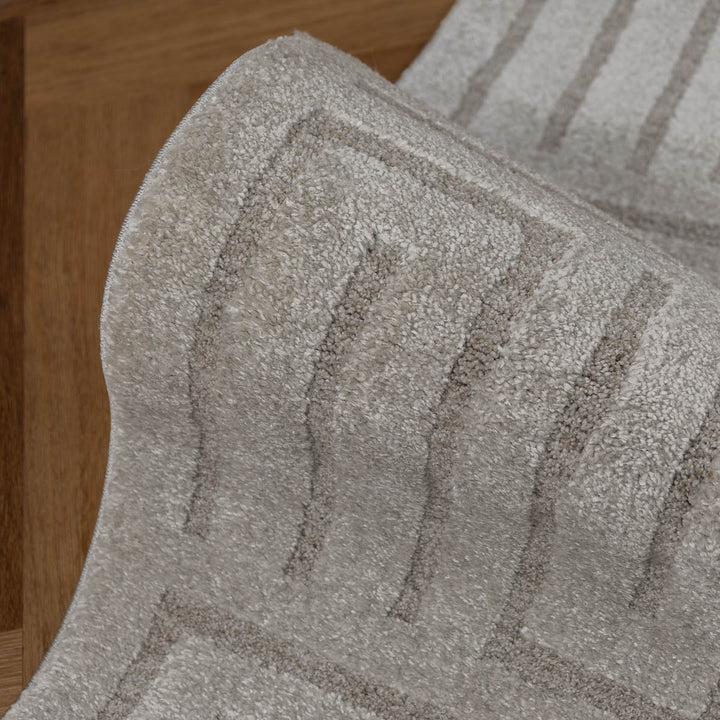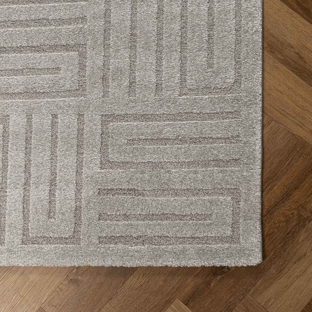 שטיח פנדורה 10 אפור בהיר משלב דפוס גיאומטרי מינימליסטי בגווני אפור רכים, ליצירת מראה מודרני, רגוע ואחיד. העיצוב הנקי יחד עם עומק הטקסטורה הופכים אותו לתוספת מושלמת לחללים שרוצים להישאר מאוזנים – עם נוכחות עיצובית אבל בלי עומס ויזואלי.