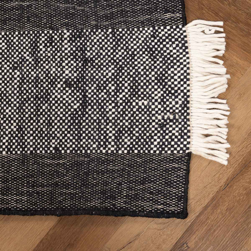 שטיח נובסה עשויה מצמר איכותי, מציע עיצוב מיוחד בהשראה סקנדינבית קלאסית. המראה הייחודי שלו משלב גווני אפור, שחור ולבן במרקם ארוג ובדפוסי ריבועים גיאומטריים שיוצרים תחושה של עומק ואלגנטיות.